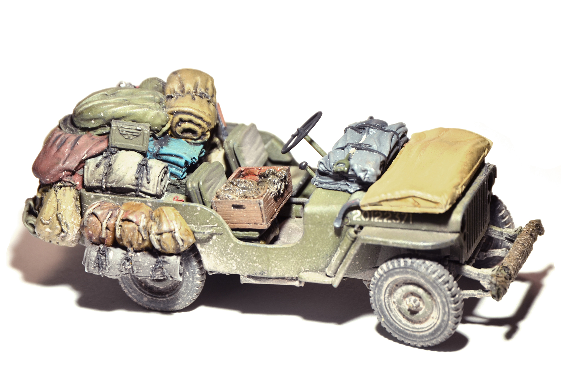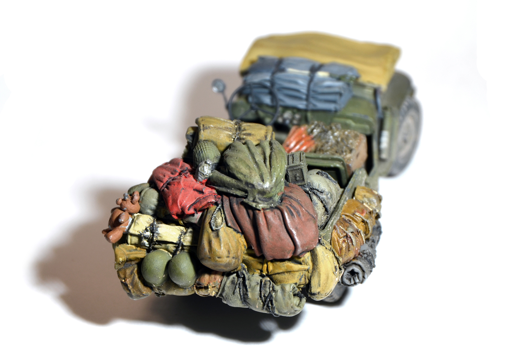 Как вы его по полной загрузили. Главное игрушечного мишку не забыли. Понравилась работа.Из придиризмов отмечу: по-моему на виллисах руль был в одном цвете с кузовом. С уважением.
