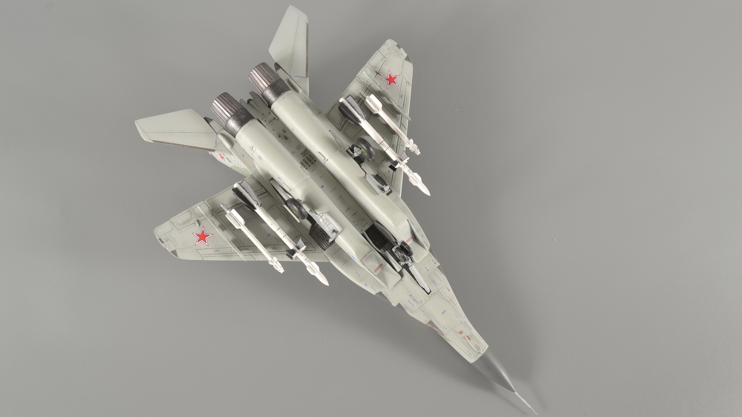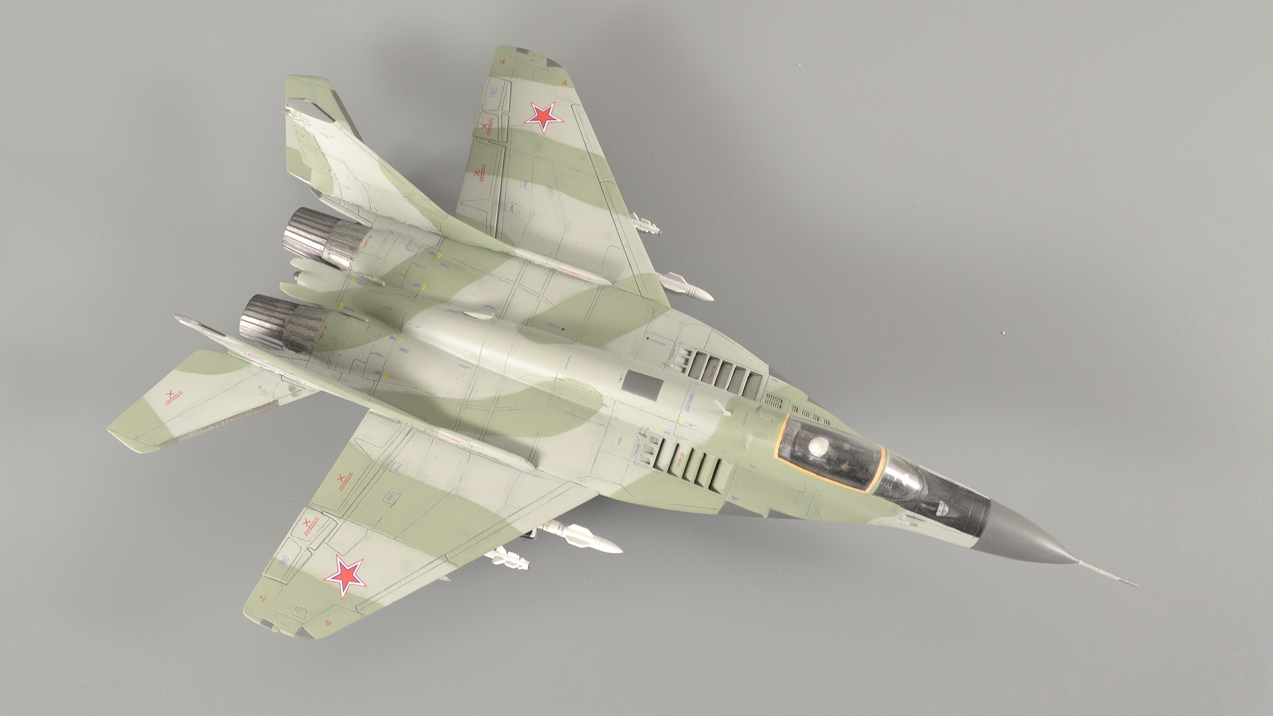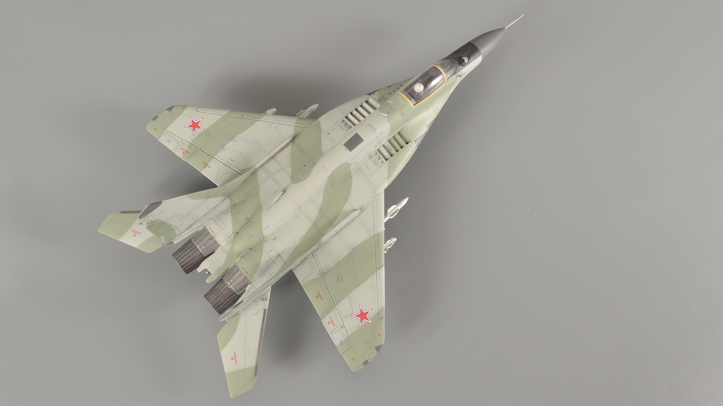 Понравилась работа. Придерусь только к толщине стабилизаторов ракет - можно было бы сточить, это недолго. И серый цвет отсутствует - получился какой то оттенок салатового - так задумано?