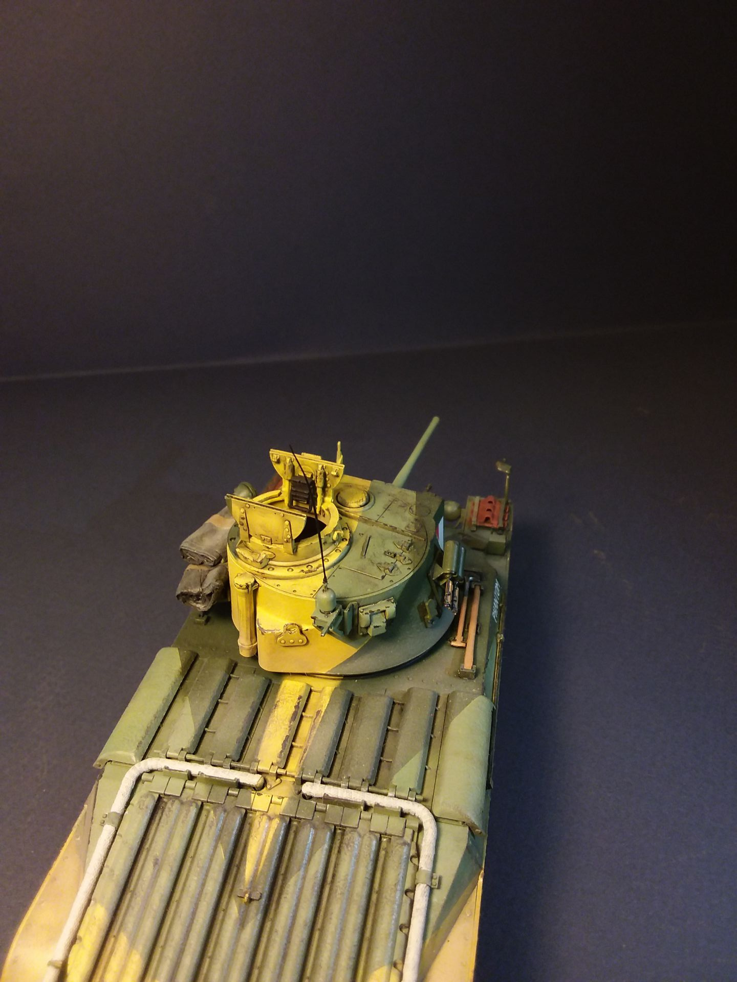 Всем здравствуйте! Модель Tamiya, думаю всем хорошо известна. Собирал из коробки, из дополнений только металлический ствол RB-model и металлические траки masterclub. Самостоятельно соорудил скатки, антенну из тянутого литника и топливный провод от внешнего бака на корме. Окрашивал красками Tamiya, по рецептам найденным на сайте britmodeller. Базовый цвет Light stone по этому рецепту меня очень удивил, но я решил поверить)))