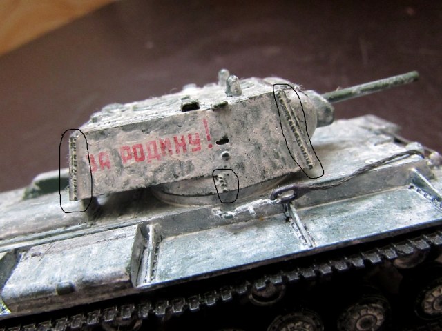 Я уже выкладывал обзор на набор 1/72. Не знаю почему, но в 1/48 проволока практически не отличается по размеру от проволоки из набора 1/72. Для сравнения положил башню КВ-1С с 1/72 проволокой, и башню Черчилля с проволокой 1/48. Также можете посмотреть на башню КВ-220-2 - на ней использована только проволока 1/48. В принципе, такой проволокой можно делать только САМЫЕ выдающиеся моменты.