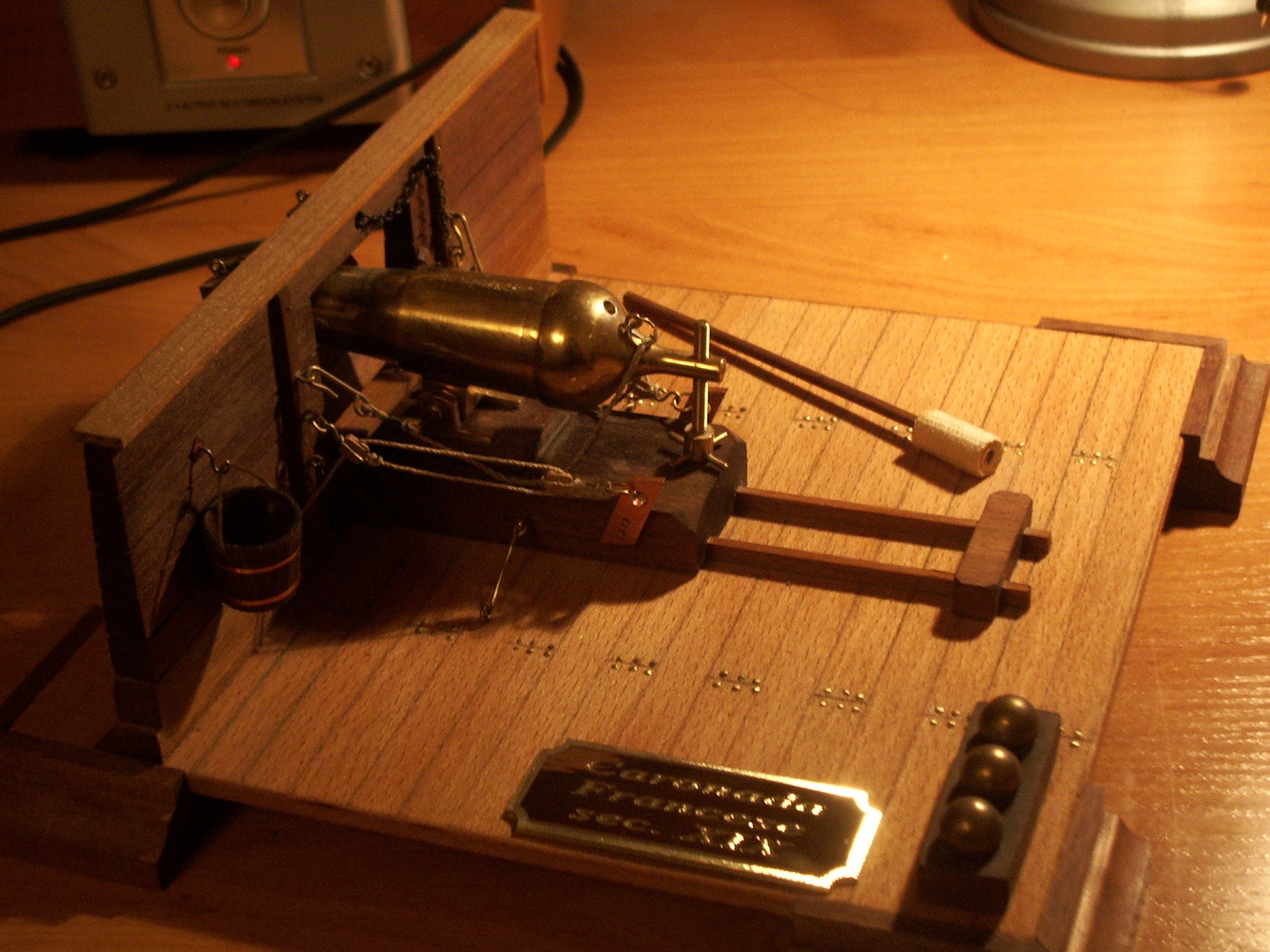 Материалы - дерево, бронза, медь, ткань.
