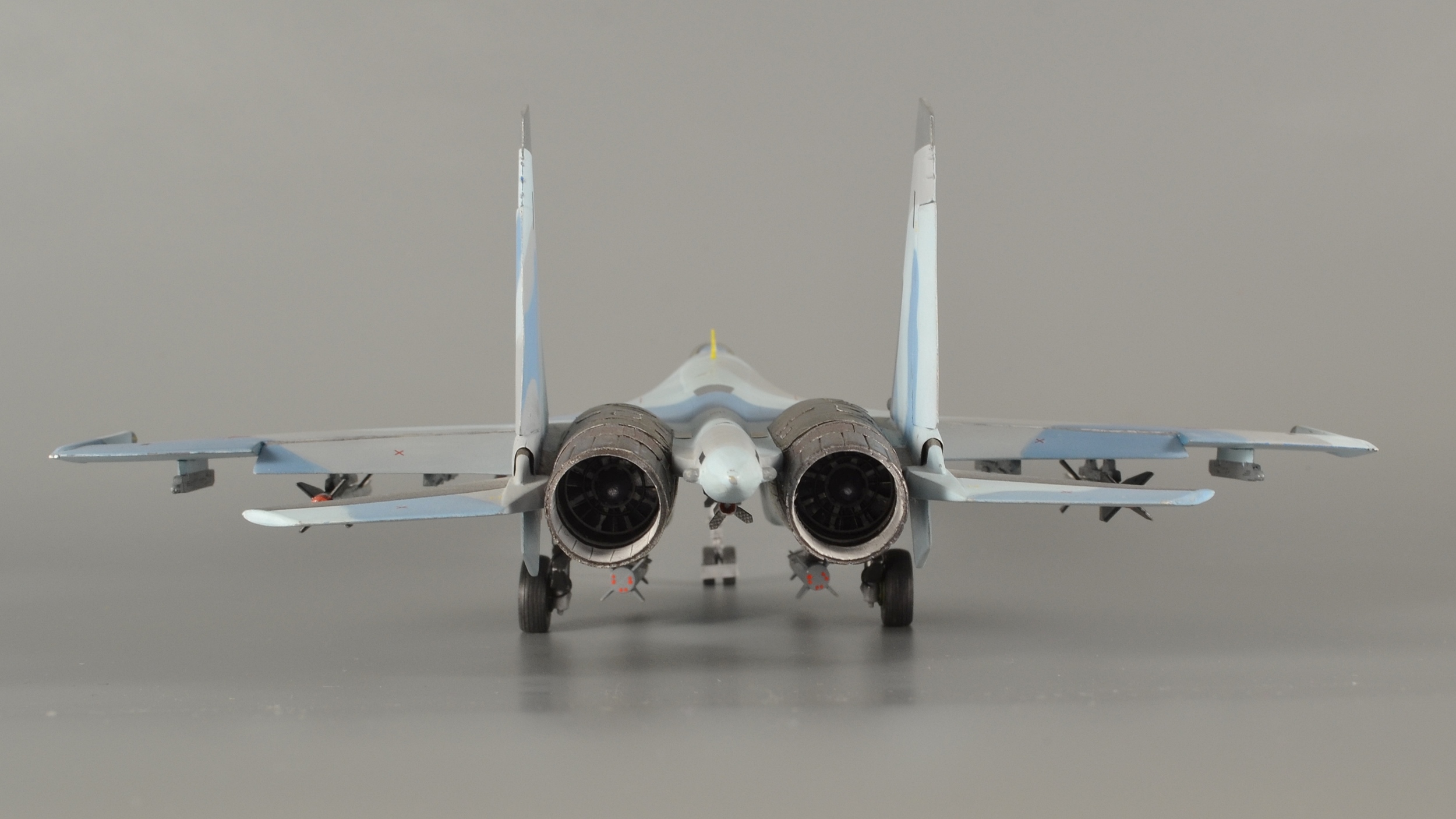 Не вдаваясь в нюансы матчасти и геометрии, очень приличная модель на выходе, окраска адекватная (как раз тот случай, когда правильная окраска способна скрыть некоторые огрехи) - короче, ничем не хуже модели МиГ-29. Странно, что ты ее засунул в песочницу. Единственное что хотелось бы отметить - на с-те с заглушками и защитными колпаками на АСП л-к в кабине - лишний))