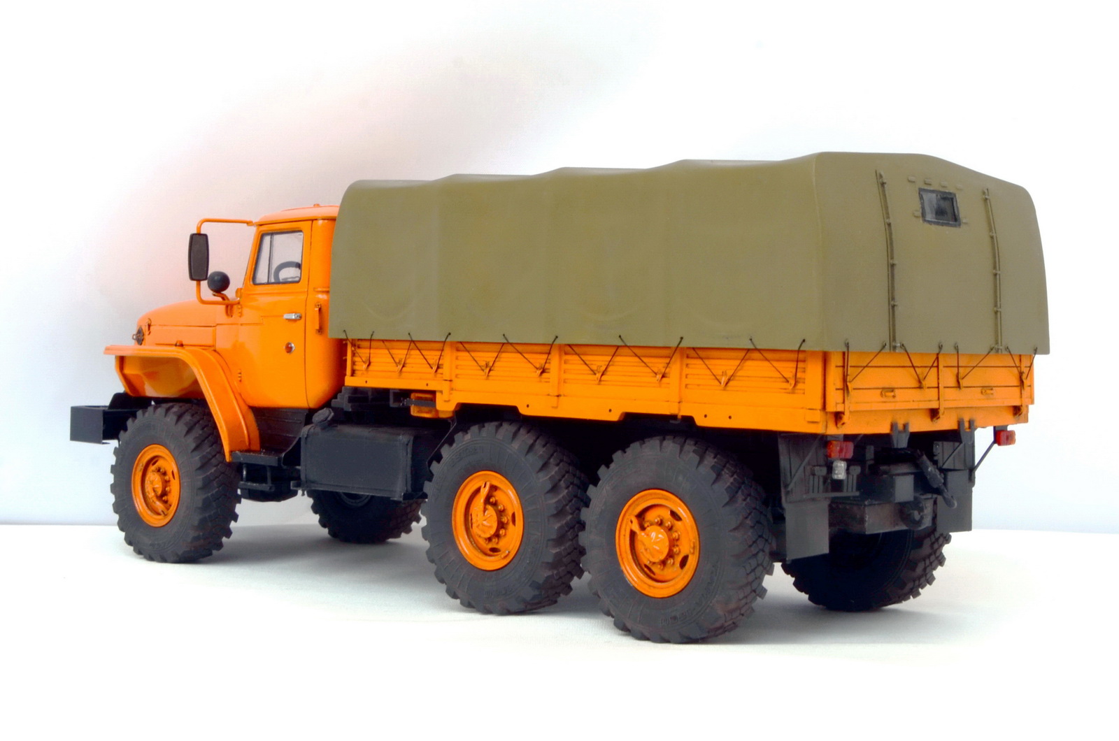 Что-то (лень-зачернуто) творческий кризис и выход с удаленки подкосили, полгода пилил. Но допилил, причем сам набор очень понравился за исключением пары моментов, Звезда растет на глазах. Из допов колеса от Miniarm'a, травло от Микродизайна, оптика Elf и катафоты из остатков SKP. Тент родной, хоть он и совсем не очень, но не захотел ничего придумывать, прошнуровал спандексом. И печаль - из того что явно видно - средний мост поднят, не удалось это победить. Красил Тамией, и чутка запылил.