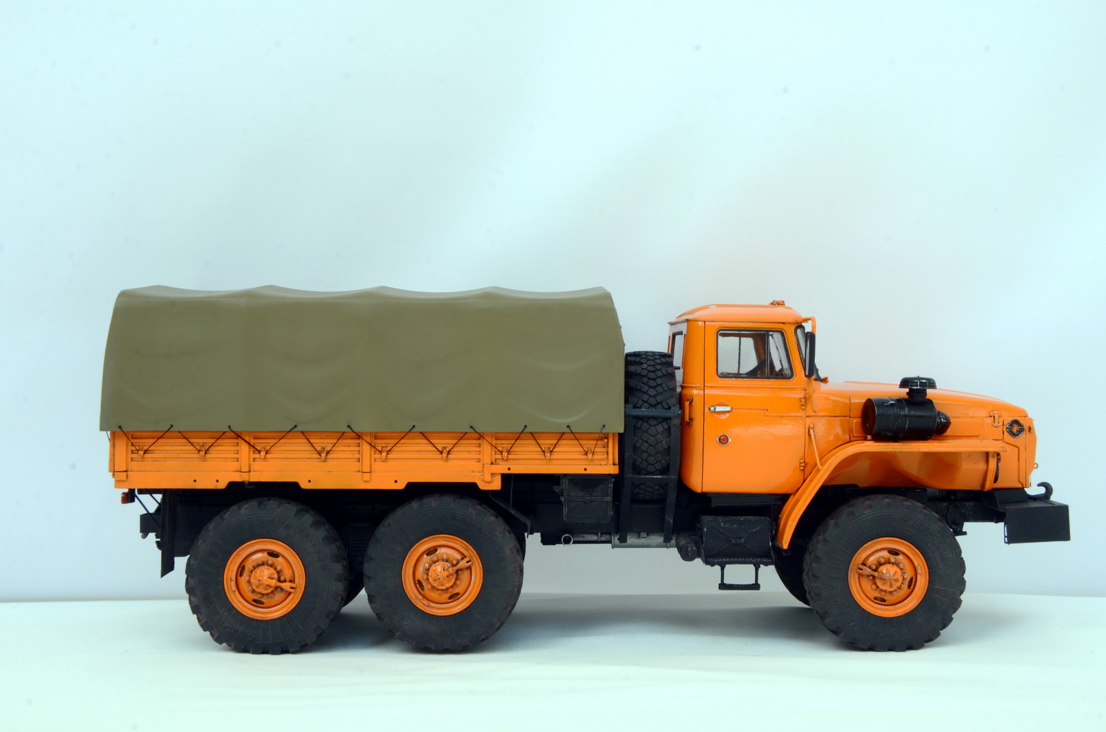 Тент лучше убрать и сильнее припылить покрышки, что бы выделить рисунок протектора, но это моё мнение