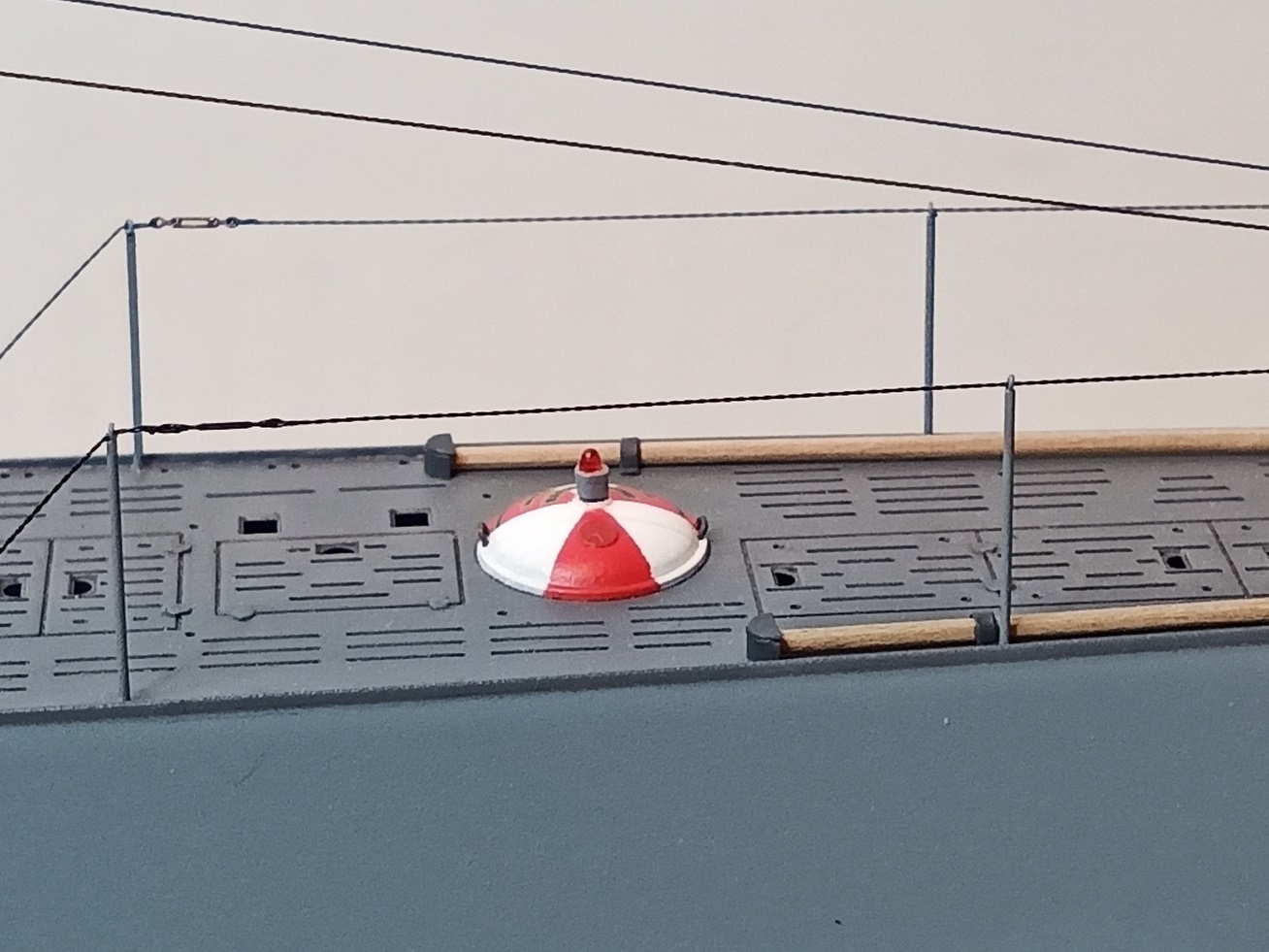 Очень красивая модель, мне особенно нравится окраска, ярко и чисто. Интересно, а что это за белые кружки в носовой части? Поздравляю с завершением.