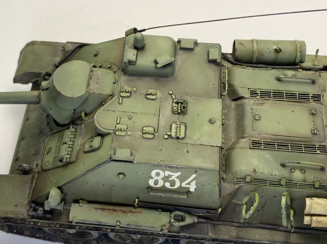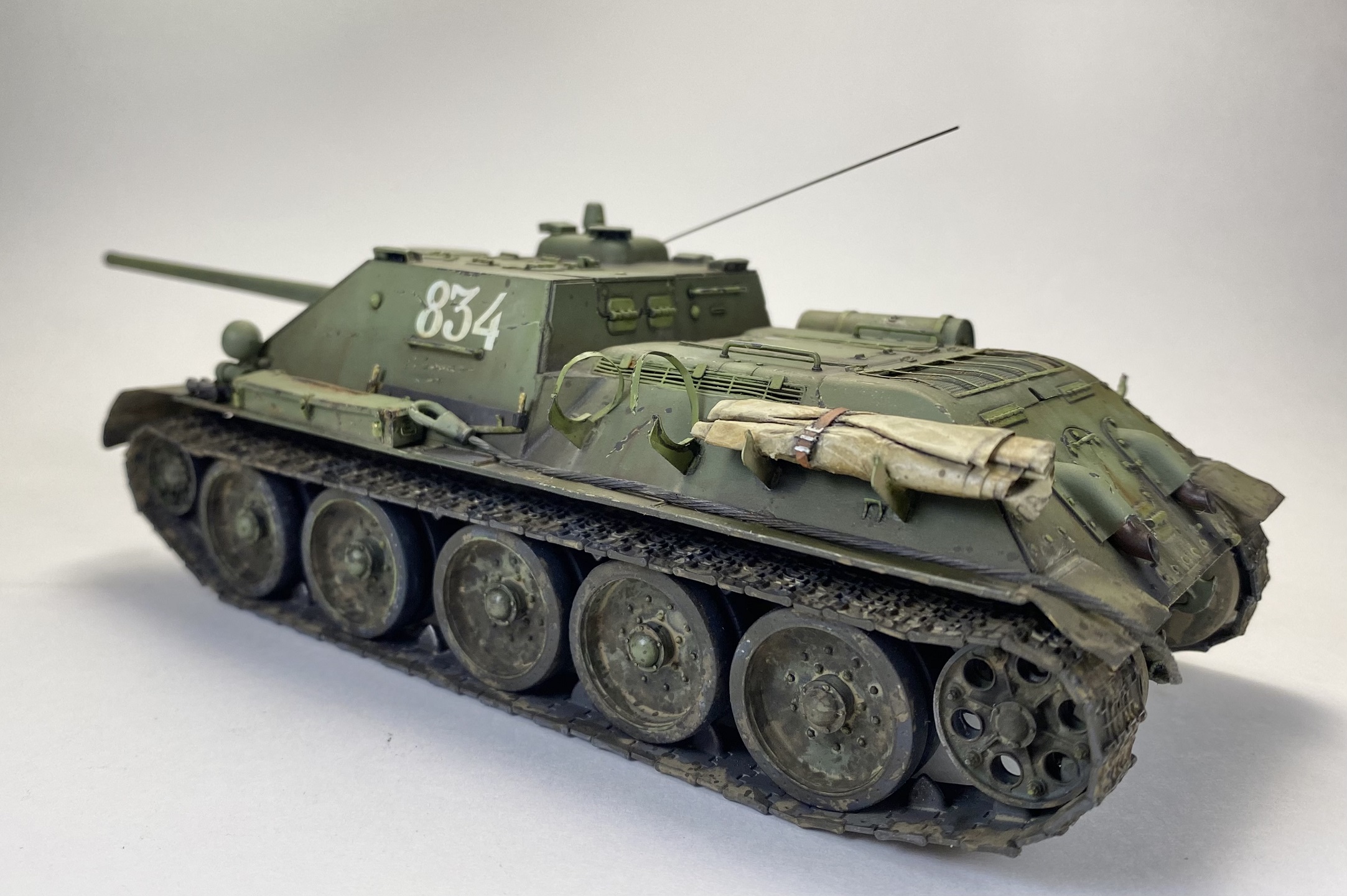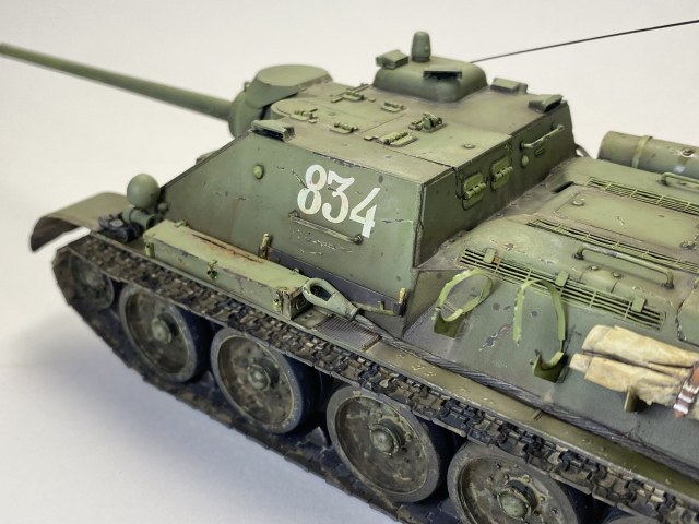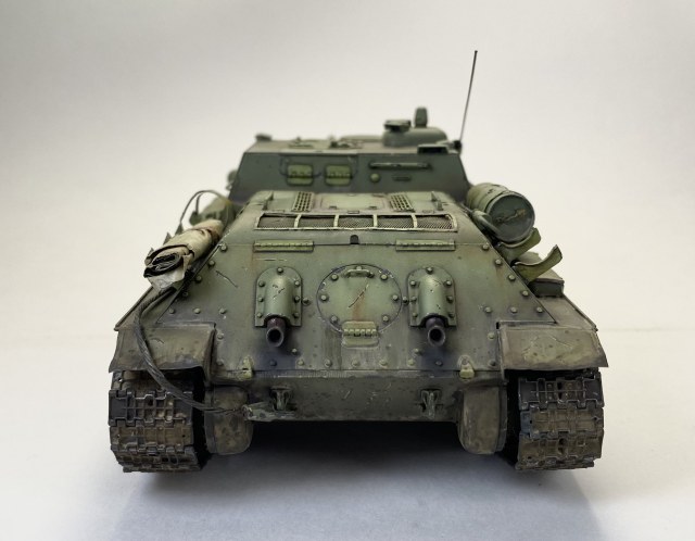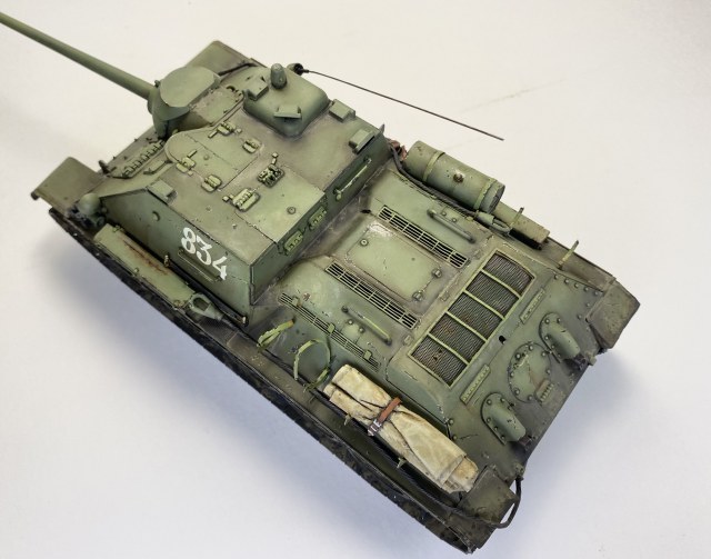 В целом красиво смотрится, к деталям есть замечания - про торсионы сказали, углы комбашни более сглаженные должны быть, выхлоп Вы поставили от т-34 - у звезды в коробке лежит и второй с более правильным срезом но в инструкции косяк. И с правой гуслей бардак - сверху натянута как доска, а на ведущем катке висит.