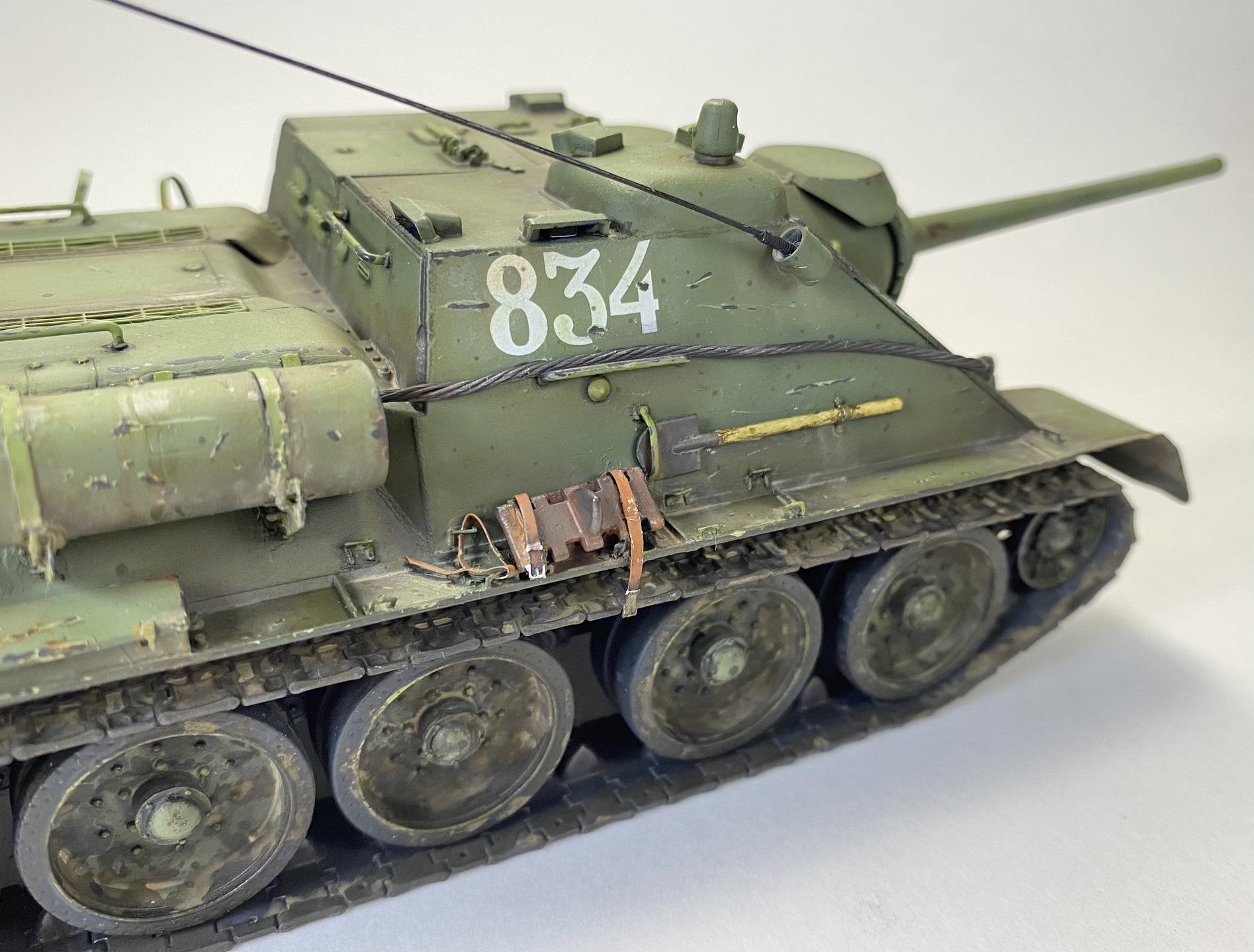 Это мой первый запил с использованием большого количества травления. Было приятно взять в руки паяльник и работать с металлом. Что-то получилось, что-то нет, но в целом, результат работы мне нравится. Надеюсь, он понравится и вам. Ящики ЗИП от фирмы Metallic Details не подошли по размеру к звездовским надгусеничным полкам, что меня сильно удивило, но работа была проделана, и решил оставить, как есть. Будьте внимательны при выборе этого набора к семейству тридцатьчетверок от Звезды.