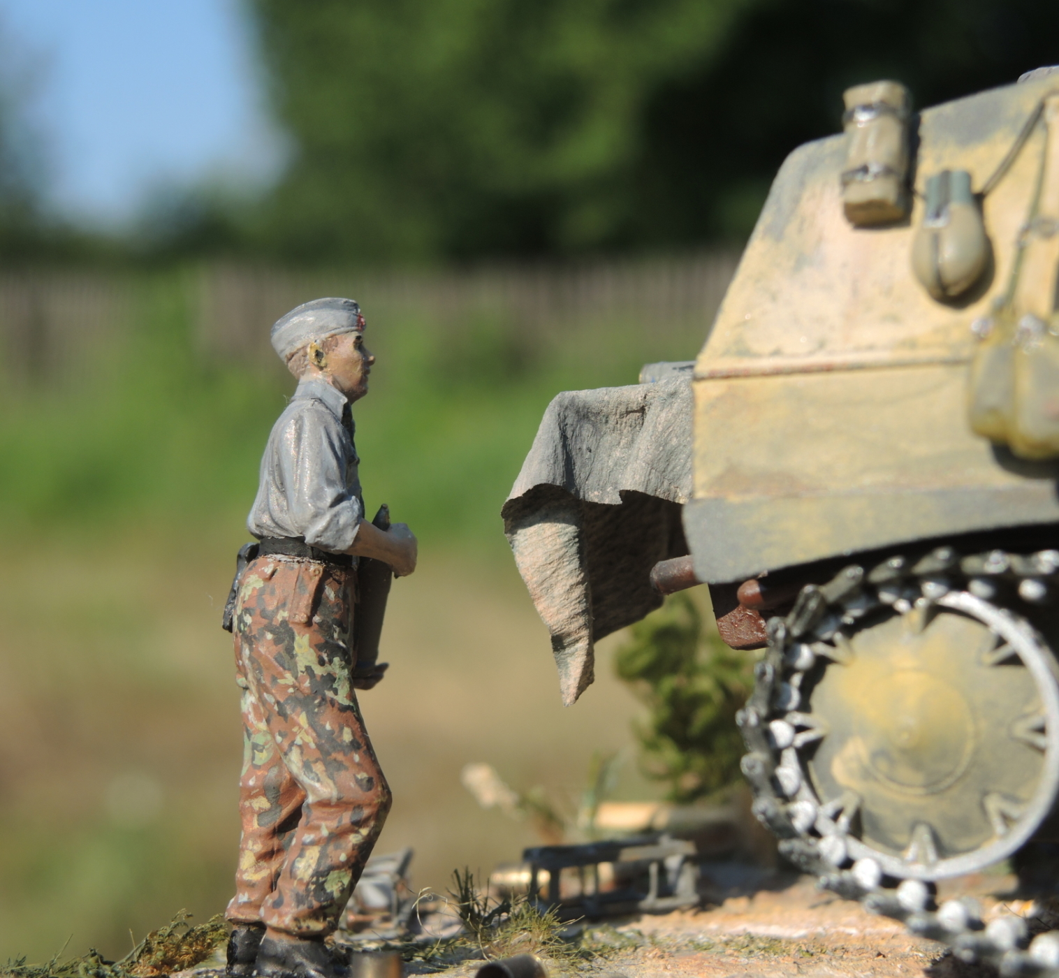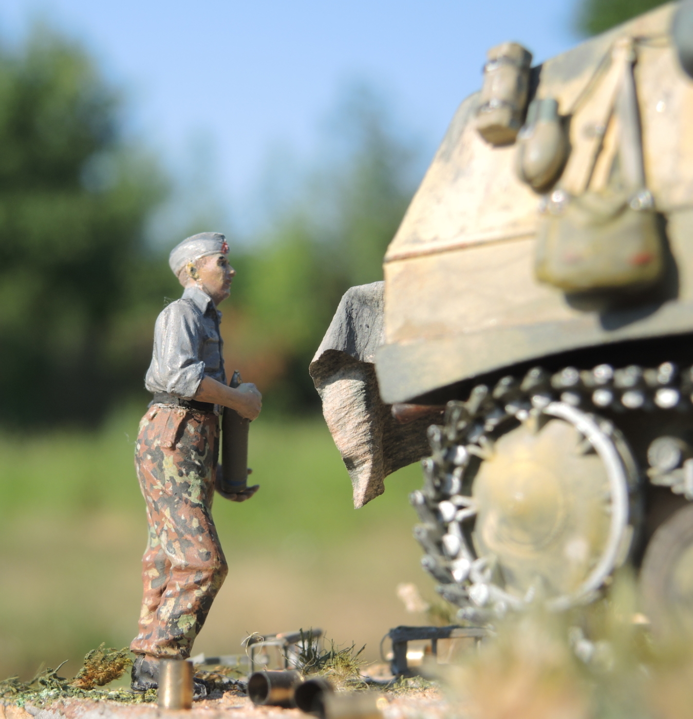 Красил нитрой в темный металл, потом супер звезда, которую размывал уйат-спиритом. Недавно реанимировал модель. Чуток самодельных смывок и пигментов. Фигурки темперой ладога.