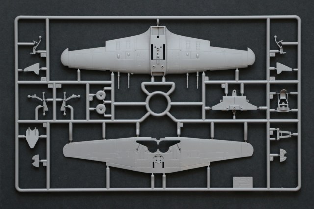В наборе две литьевые рамки из серого пластика и одна из прозрачного. Инструкция и схема окраски на отдельных листочках, при этом нет расшифровки оттенка зеленого цвета, обозначенного номером 35. Облой микроскопический, редкий, но в самых неудобных местах. Например, стволы 20-мм пушек обточить без потери рельефа пружин не получится (а точёные стоят дороже модели). По утверждению производителя, раскрой на плоскостях после замечаний моделистов углубили, но мне кажется, что недостаточно. Расшивка выглядит неглубокой, но при этом излишне широкой. То есть, если захочется углубить расшивку, то надо будет исхитриться попасть ровно по центру шва. Фонарь пилотской кабины тонкий, но на моделях от Platz в 144-м масштабе сейчас делают тоньше. Возможно, ограничение по толщине тоже связано со сборкой «на защелках», тонкий фонарь легче сломать при установке. Очень достойно выглядит интерьер кабины пилота, с учетом технологии «без клея». Прозрачными деталями даны крыльевые аэронавигационные огни (как тебе такое, «ARMA HOBBY»?). В нише шасси заметны следы толкателей пресс-форм. Для более-менее опытного моделиста не составит труда эти углубления убрать, новичок их просто проигнорирует, но всё же... Опять вспоминая «традиции», по закрылку проходит стык верхних и нижних плоскостей (я такое уже встречал у «Звезды» на модели ТУ-204 в 144-м масштабе). Тут или шпаклевать, или сделать закрылки отдельными деталями. Надеюсь, «Микродизайн» и другие производители афтемаркета обратят на это место внимание при разработке фототравления. Отдельно стоит сказать про фигурки пилотов. Они тоже собираются без клея, они классные, и они разные. Для английских вариантов джентельменистый летчик в очках, наш пилот – суровый североморец.