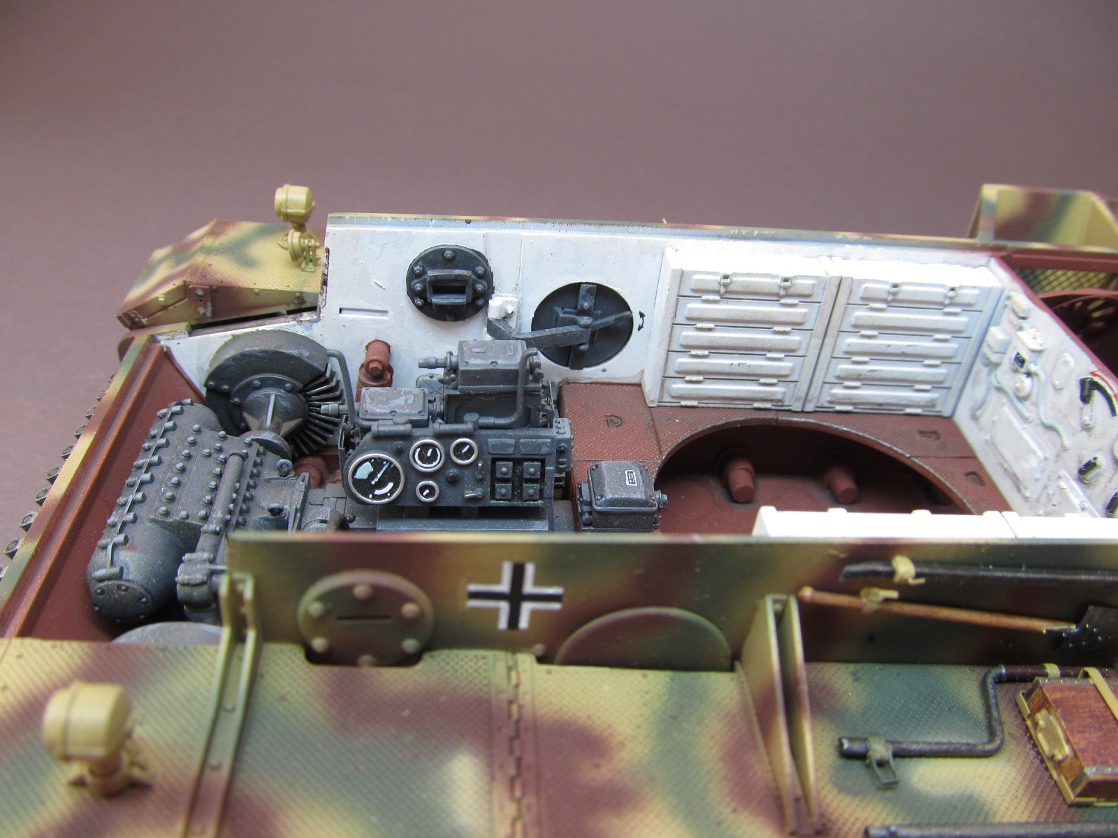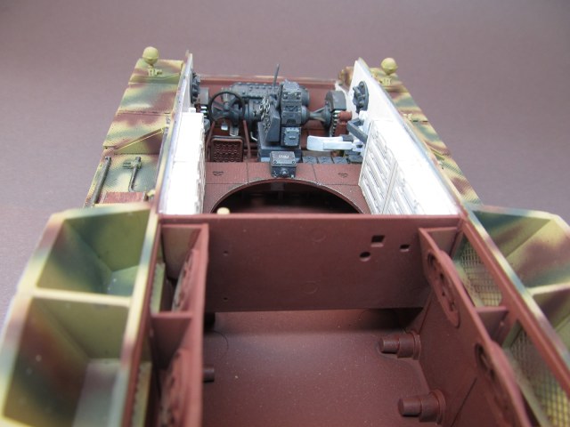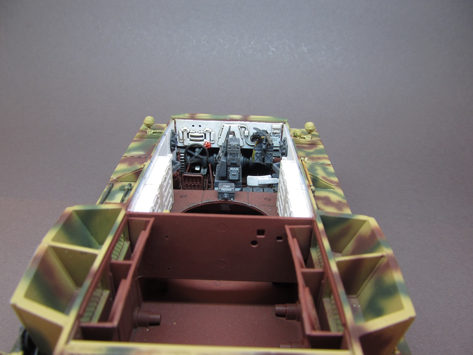 Как я уже говорил выше, сборка довольно сложна от обилия мелких деталей и фототравления, но оттого и увлекательна! Шпатлевка, а зачастую и клей не нужны. Верхнюю крышку корпуса можно сделать съемной для доступа к просмотру интерьера (что я и сделал). Отсебятины сборка практически не требует в виду отличного качества и полноты набора, но все же я добавил несколько доработок: