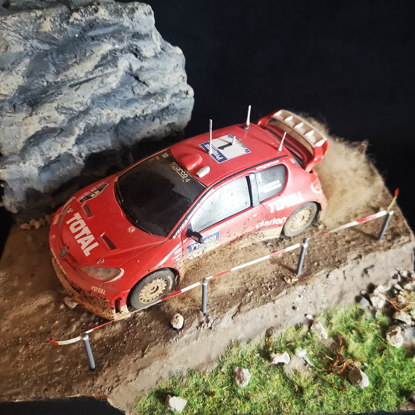 Доброго всем дня!!!Решил попробовать собрать модельку на типу автогонок.Делал первый раз.Модель машинки от Heller,та придельно все просто,минимум краски максимум декалей) .Подставка гипс,скала гипс,столбики проволока лента бумага,трава флок.