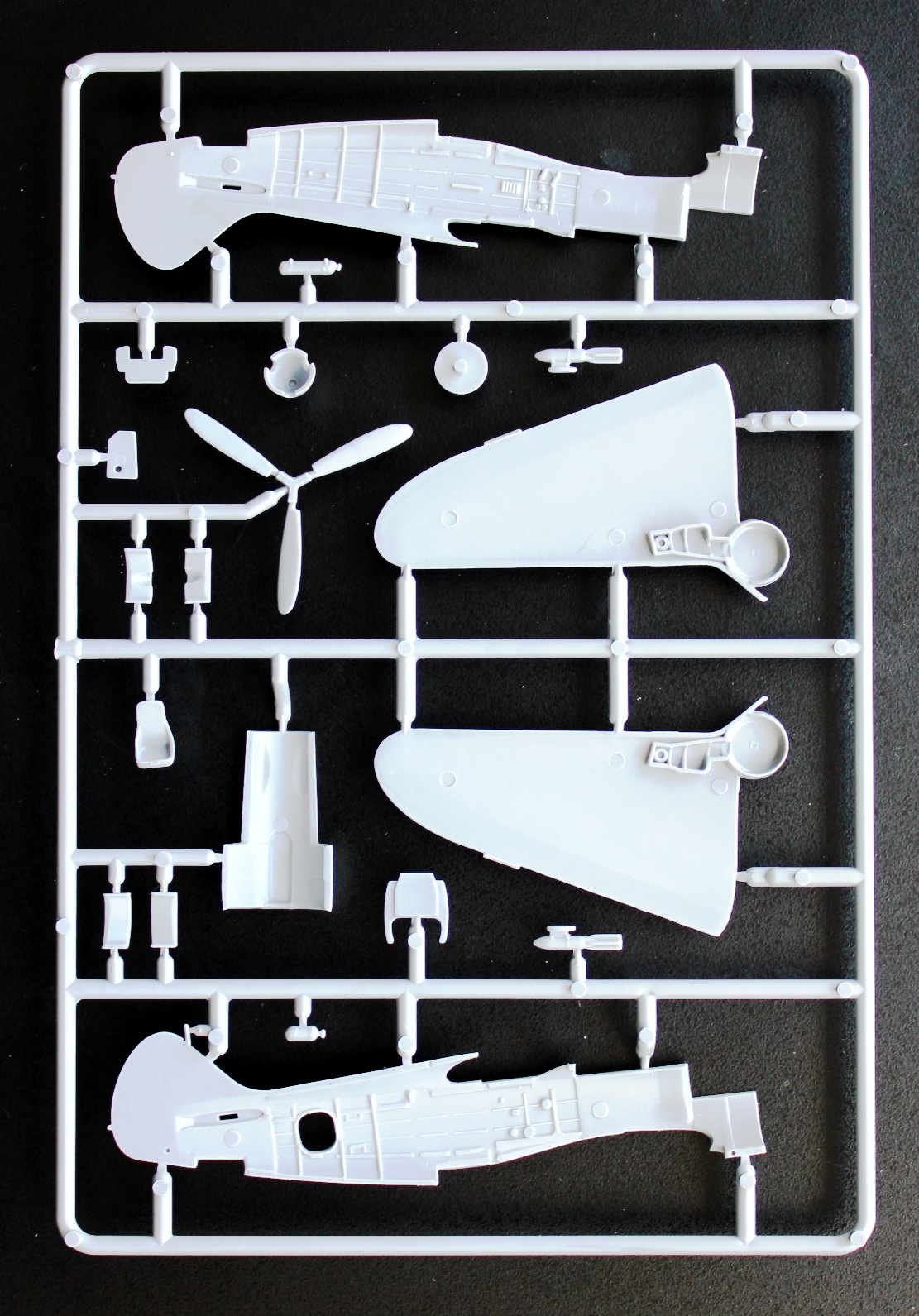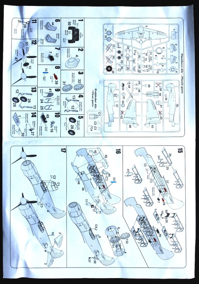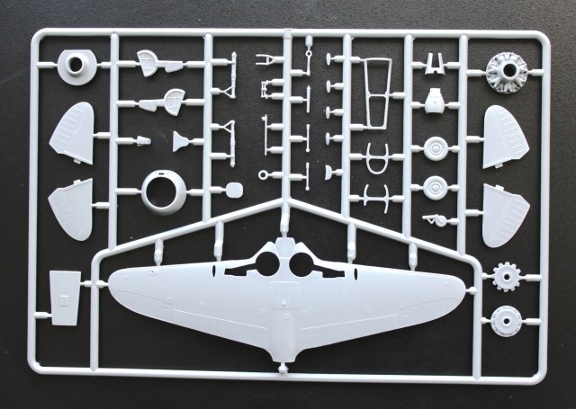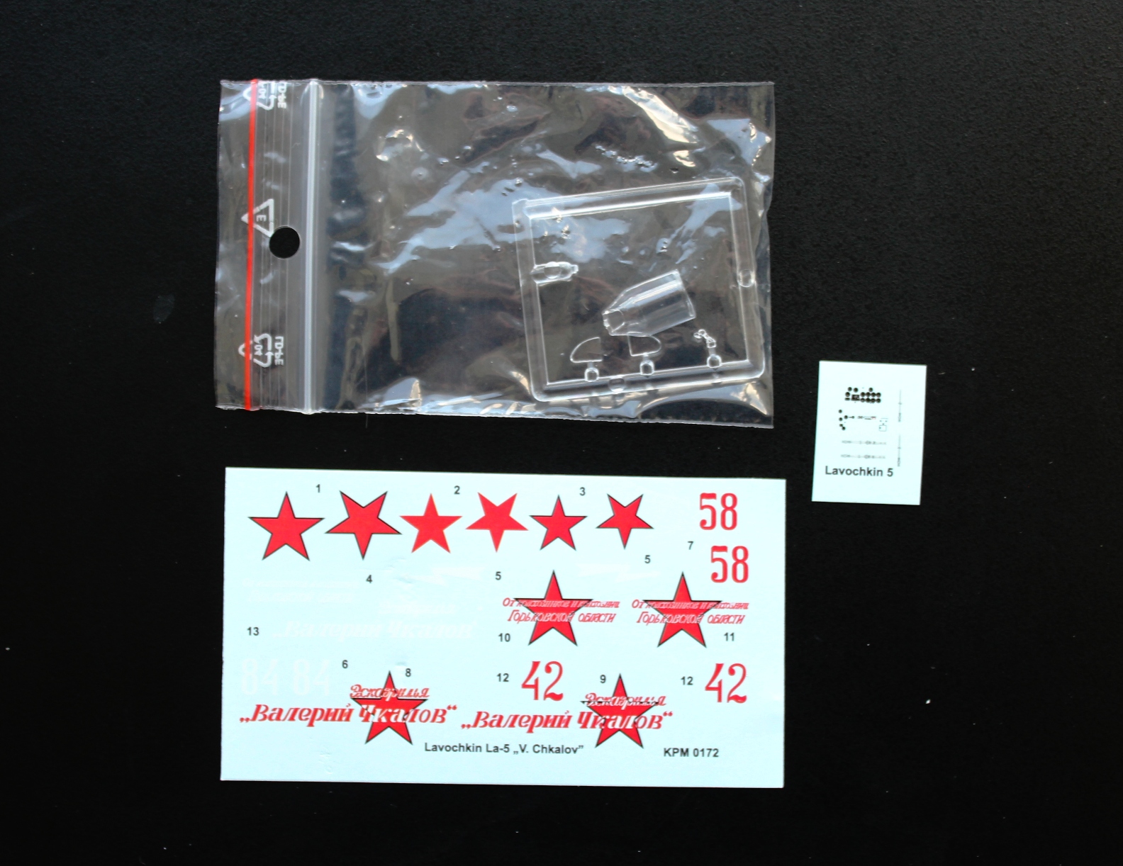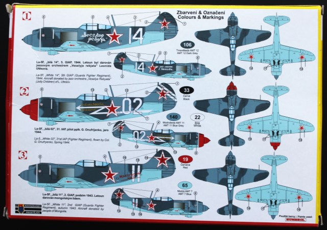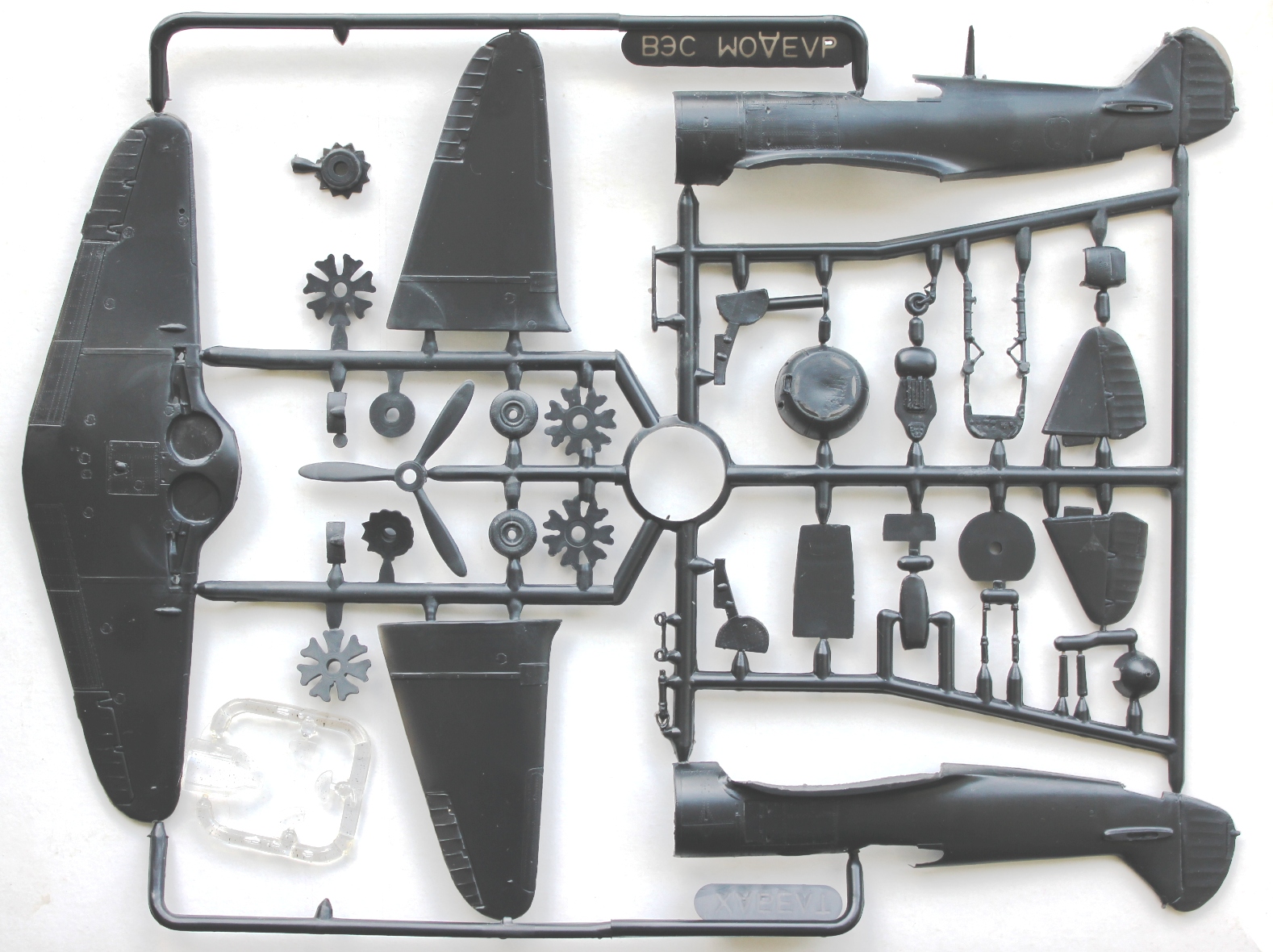 Пластик Ла-5Ф отличается наличием еще одного литника с фюзеляжем, фонарем (а вот здесь можно сделать и закрытую, и открытую кабину, фонарь дан в двух видах). Соответственно, своя коробка, инструкция и декаль, тоже на три варианта.