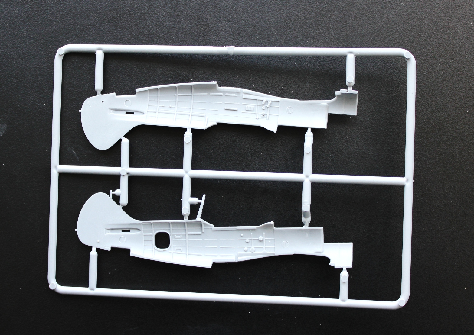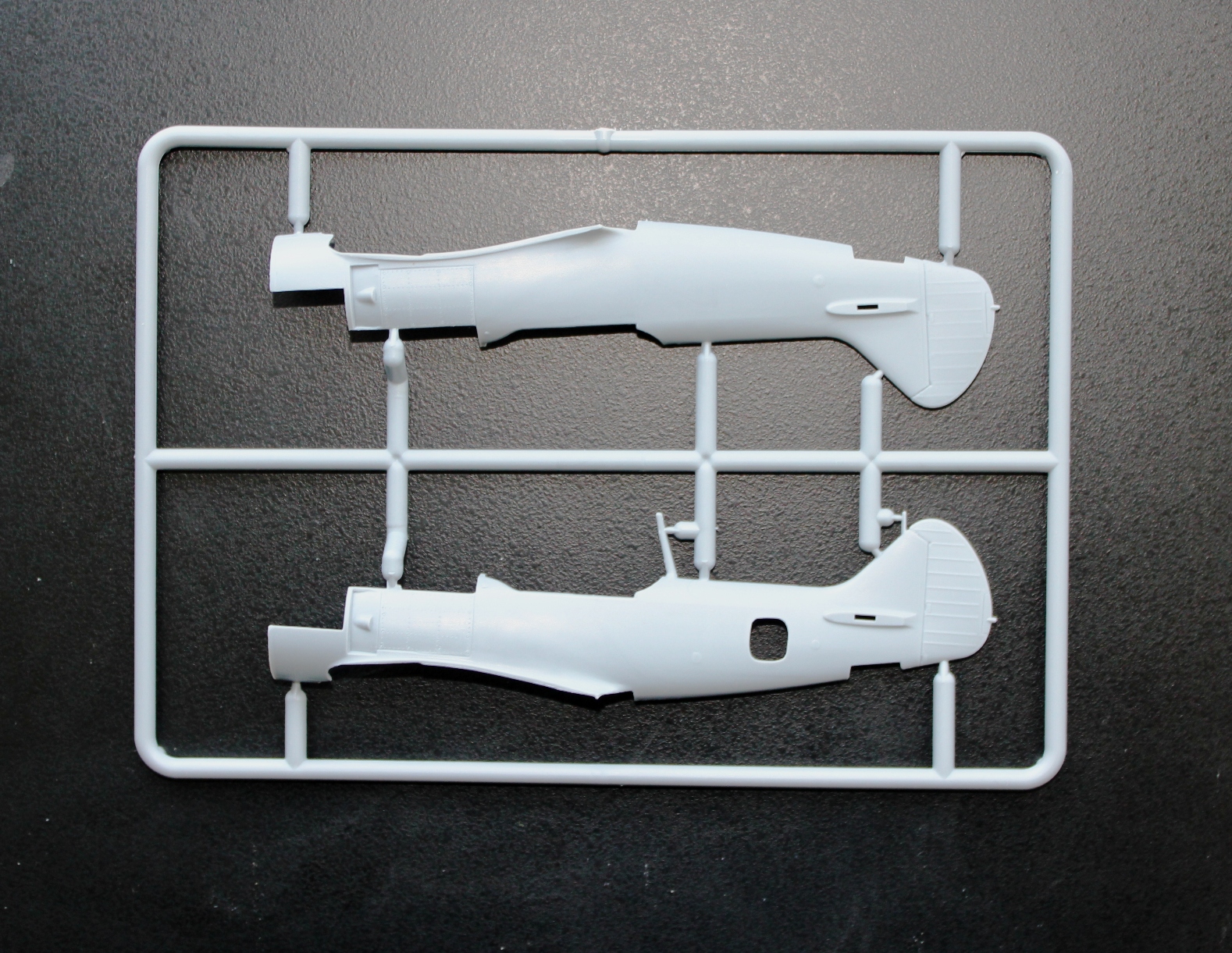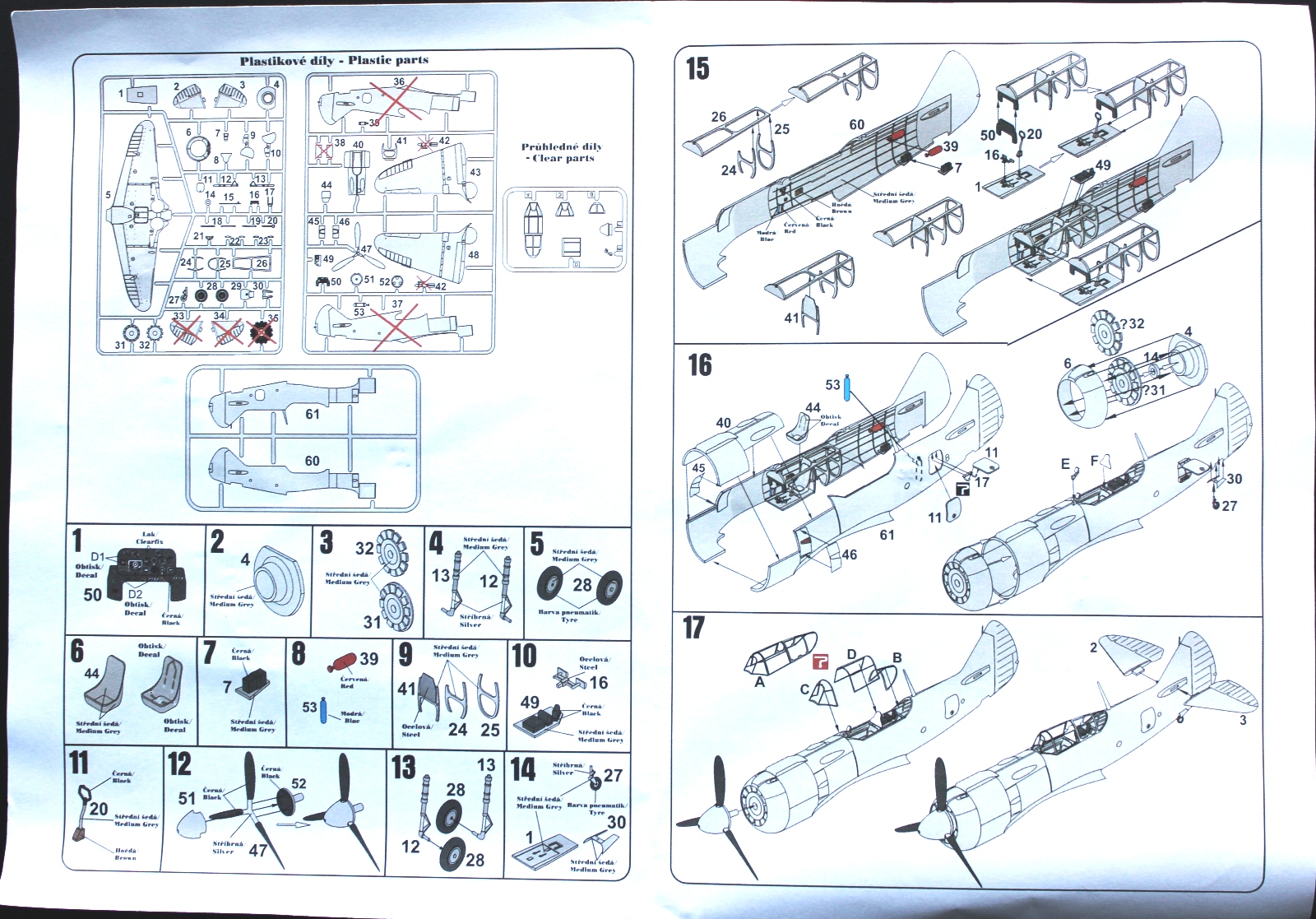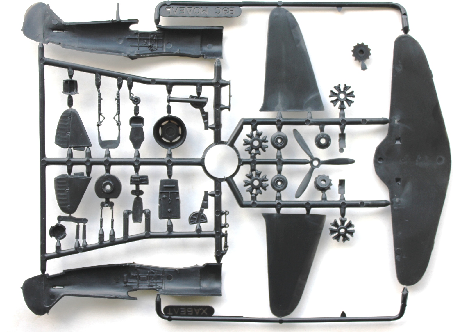 Пластик Ла-5Ф отличается наличием еще одного литника с фюзеляжем, фонарем (а вот здесь можно сделать и закрытую, и открытую кабину, фонарь дан в двух видах). Соответственно, своя коробка, инструкция и декаль, тоже на три варианта.