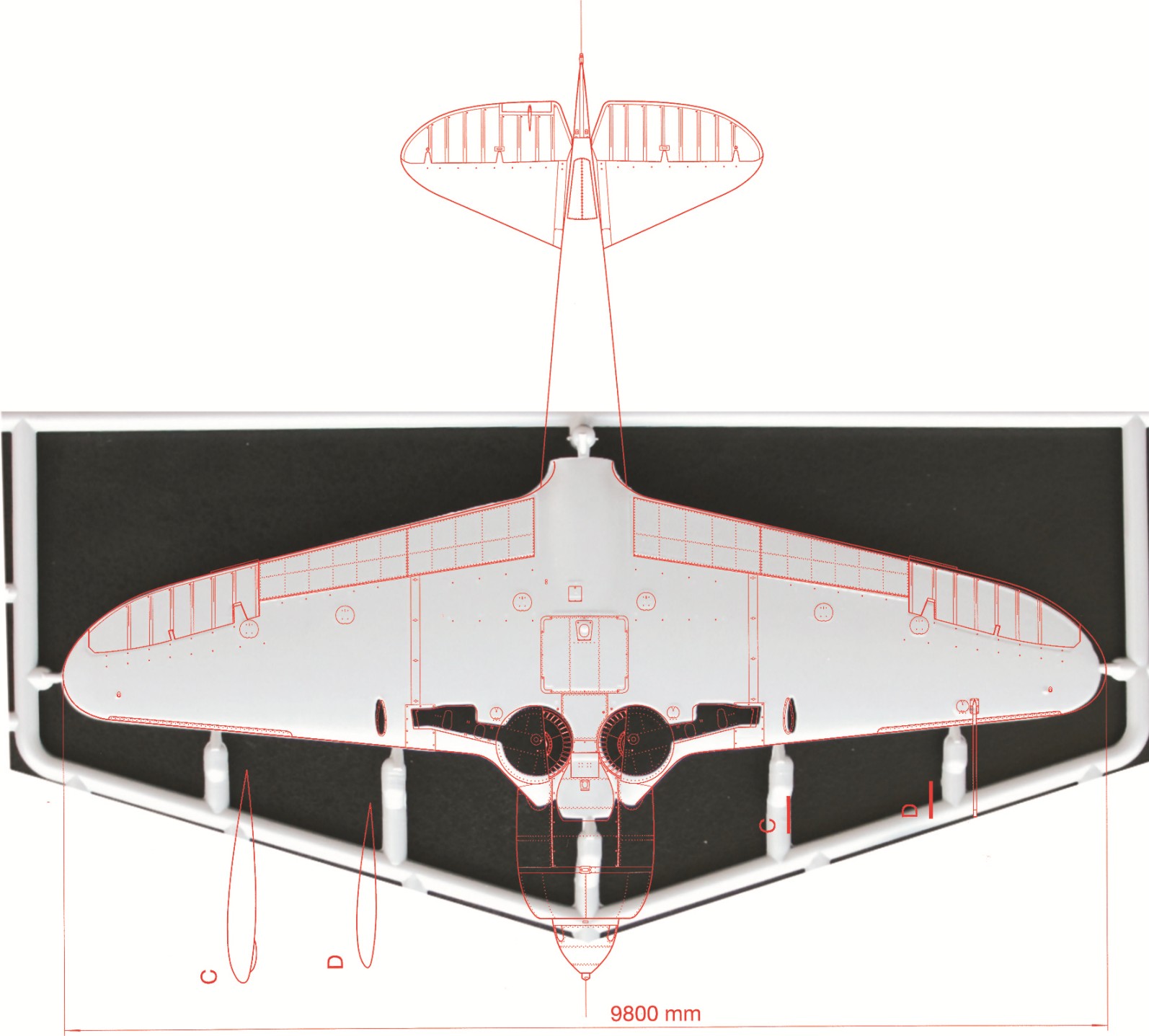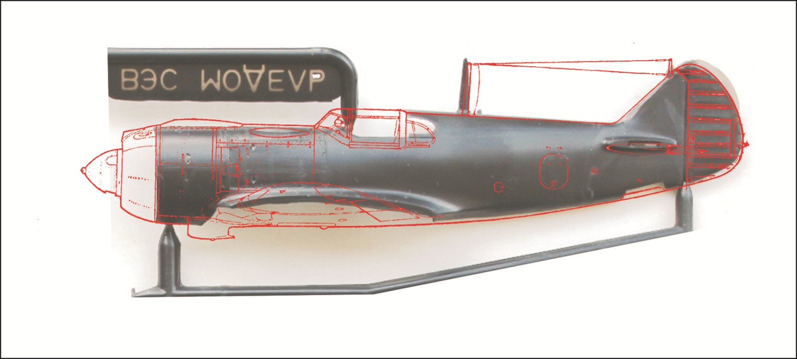 В общем, все красиво, гладко и умильно. Было, до того момента, как я приложил пластик к чертежам. Тут мое хорошее впечатление от модели сразу испарилась, подумал, что надо было брать модели другой фирмы. С крылом более - менее прилично, размах составляет 135мм, должен - 136,1мм. Не критично. Немного малы ниши шасси. А с фюзеляжем беда, особенно у Ла-5. Линия гаргрота странная, фюзеляж в районе киля короткий на 2мм. У Ла-5Ф немного поприличнее, но фюзеляж все равно короткий.