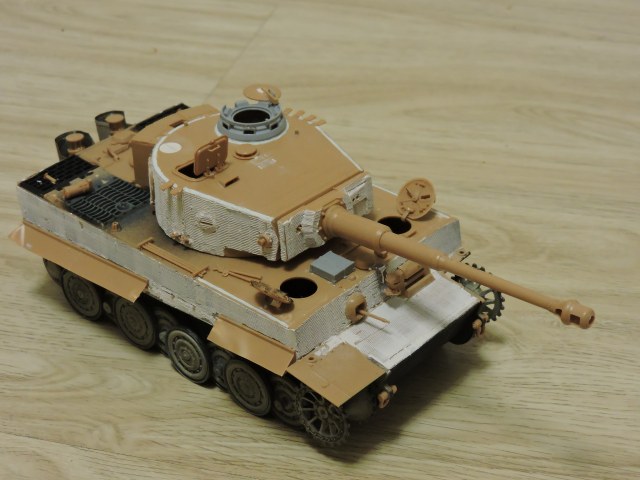 Просто в моих запасах накопилось достаточное количество "тигровых" катков позднего образца, оставшихся от нескольких наборов "королевских тигров" той же "Звезды". "Поздние" траки любезно предоставлены нашими коллегами-"каропчанами". Замена комбашни, несколько мелких доработок и "тигруля" уже "поздний"... Циммерит из автомобильной двухкомпонентной шпаклёвки.