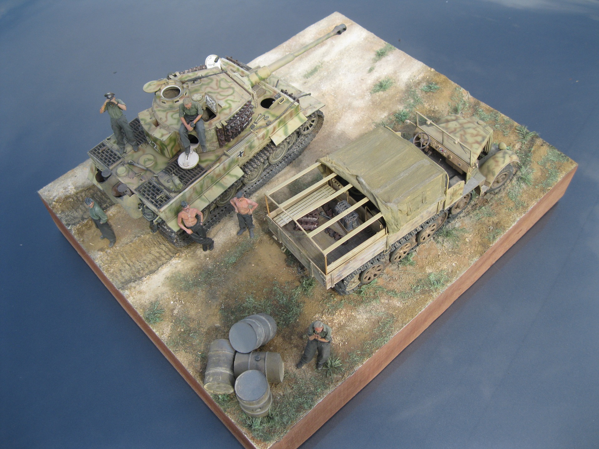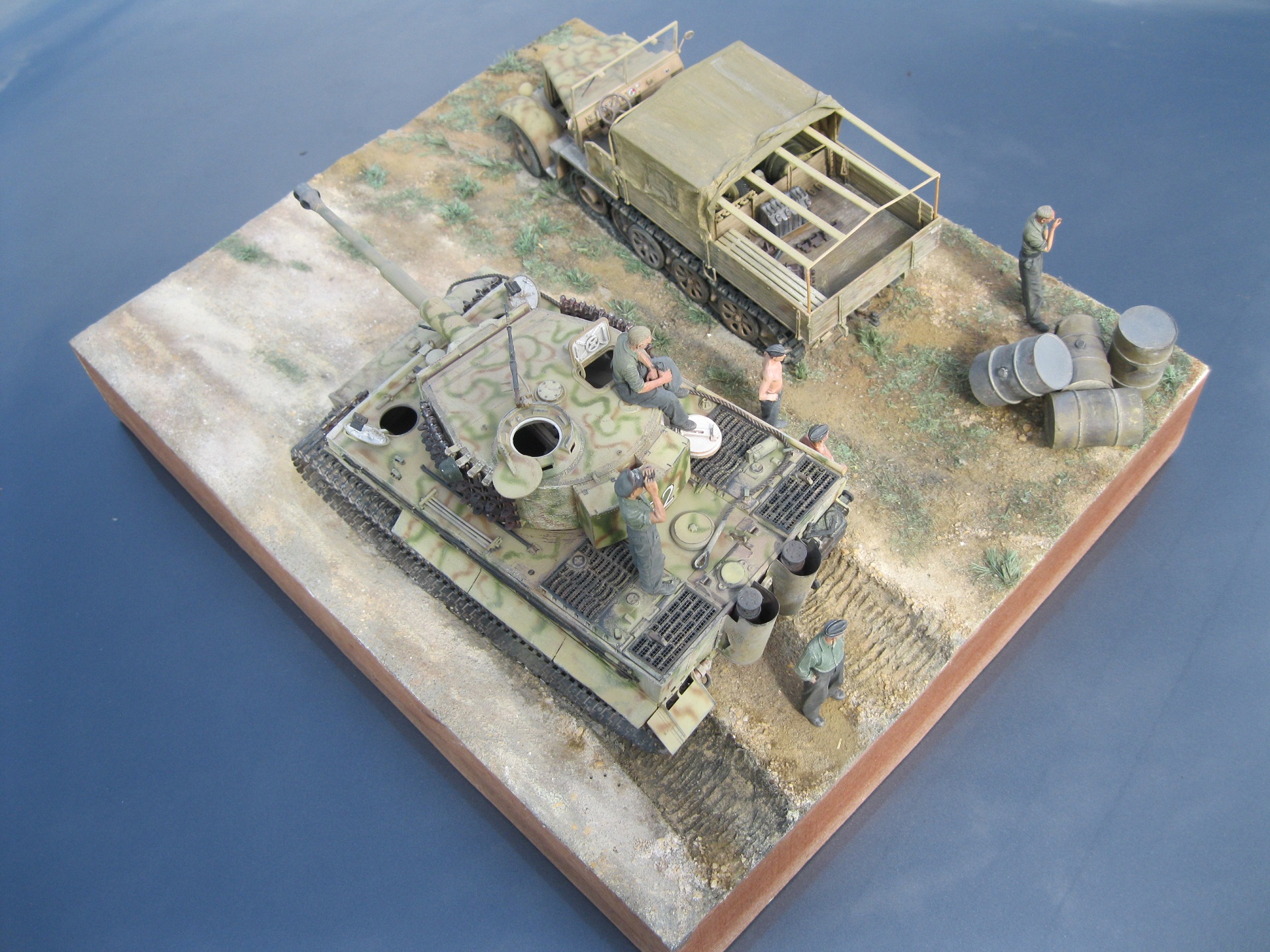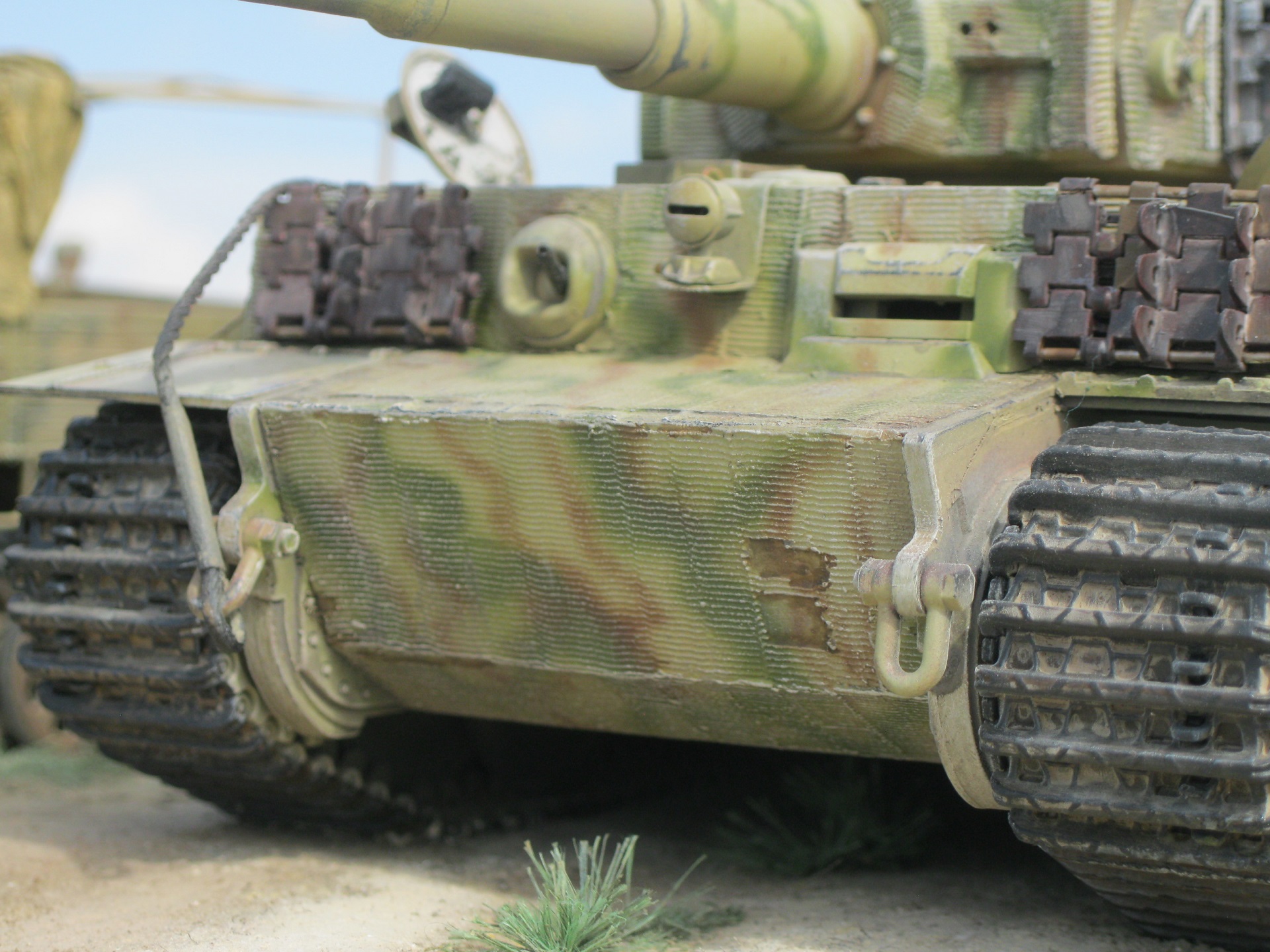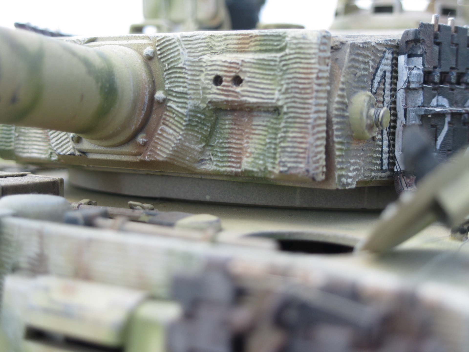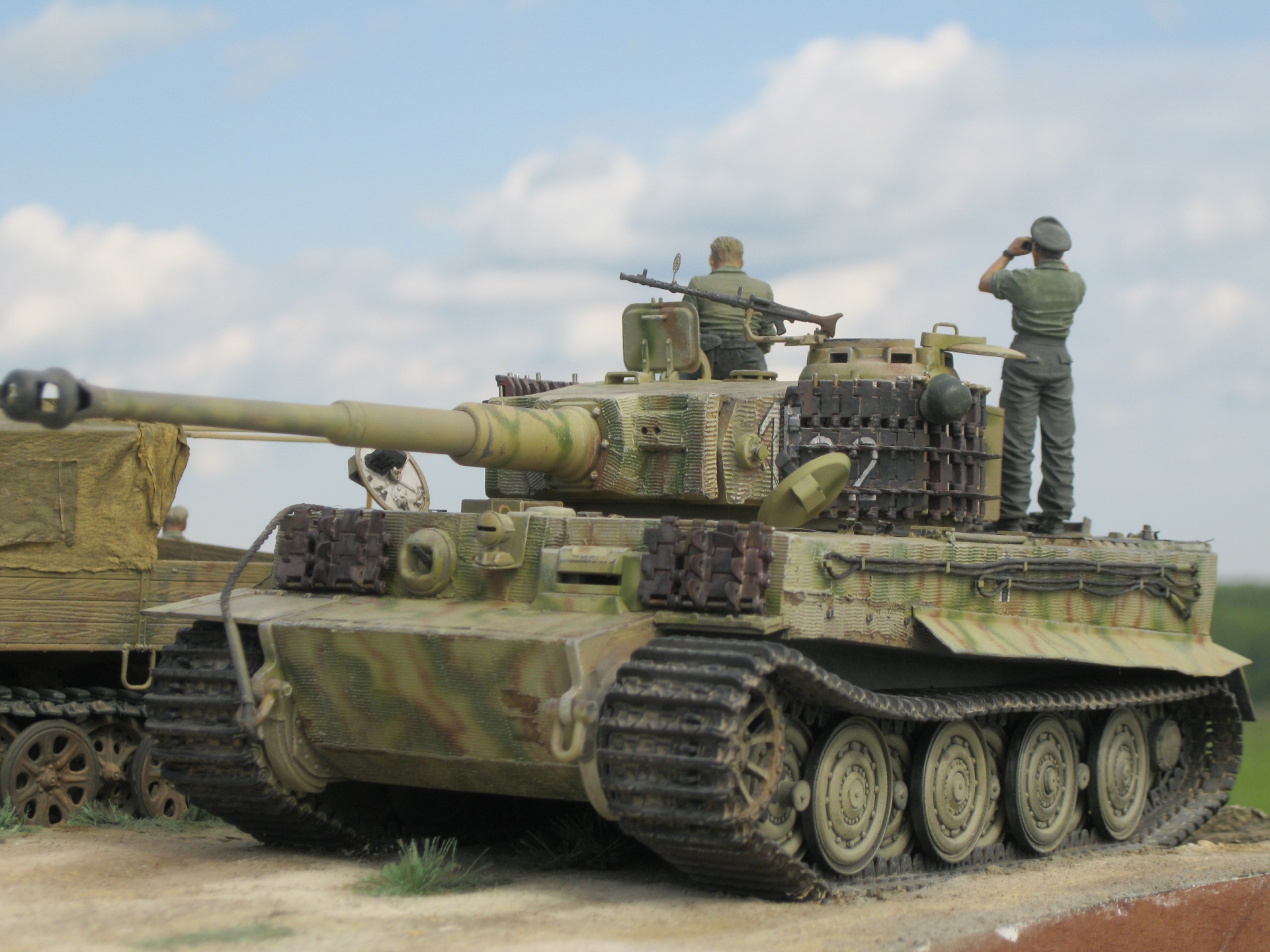 Достойная работа, посмотрел с удовольствием! По самому Тигру немного добавлю, цифры нанесены действительно как наносили в 507 батальоне, только в описании окраски 507 пишется, что камуфляж был двухцветный, на темно-желтом фоне коричневые пятна и еще на корме с левой стороны наносился батальонный знак в в виде фигуры кузнеца.