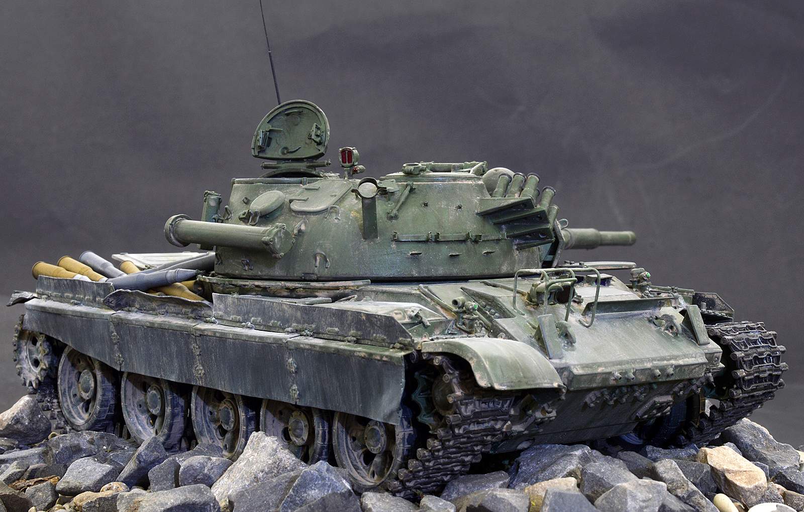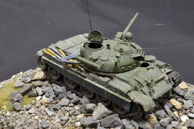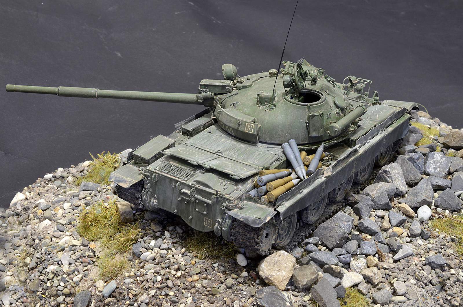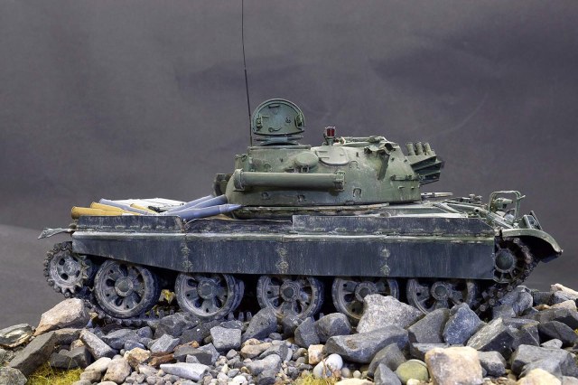 Всё как всегда на высоте, по модели. Но вот общая экспозиция вызывает вопросы. Снаряды, насыпанные как попало, на надгусеничную полку говорят о том, что танк ехать никуда не собирается и его основная задача - неподвижная огневая точка. Тогда где капониры или иные защитные сооружения, что бы в прицеле у духовского гранатометчика была только башня?