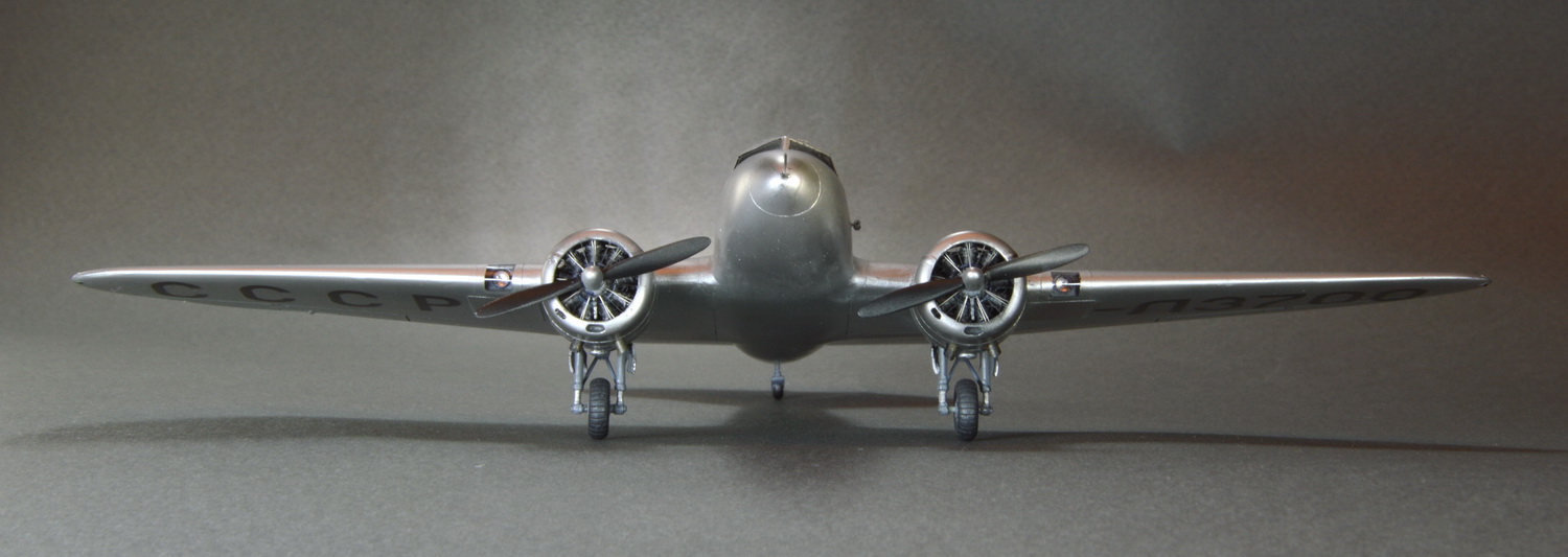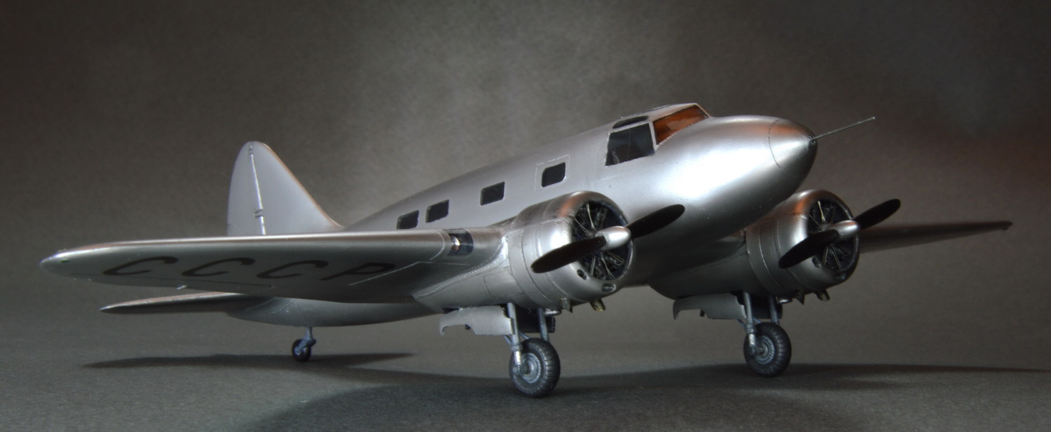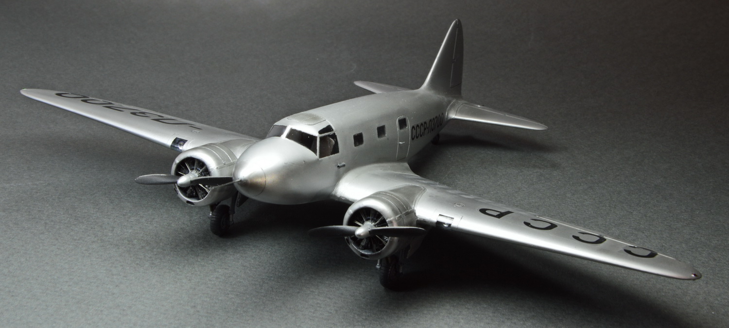 Хороший набор.уникальный набор. Огромная благодарность за него и всё остальное светлой памяти Александру Николаевичу. Модель была доработана различной мелочёвкой,видимой на фото. Моторы снадартно оснастил проводкой к свечам,тягами толкателей,креплением капотов. По фото сделал что-то ,похожее на подогрев воздуха от выхлопа для обогрева салона. Окошки вырезал каждое отдельно их коробок дисков. Колёса посавил от Ла-5.Подошли по размеру.Покрашено акановским полуматовым алюминием.,поверх задуто матовым лакгом.