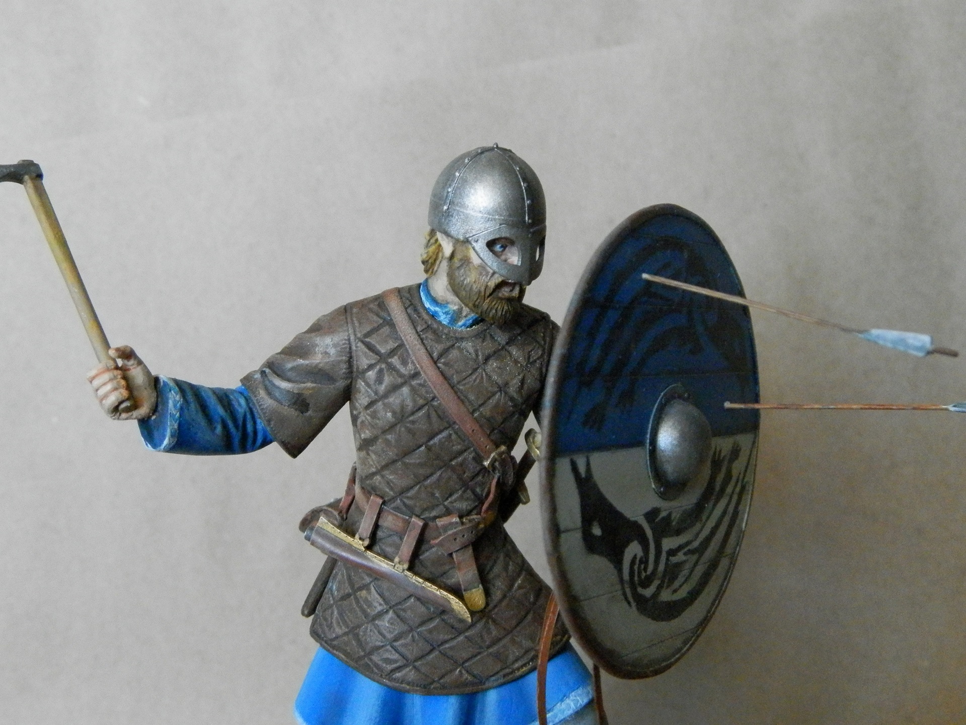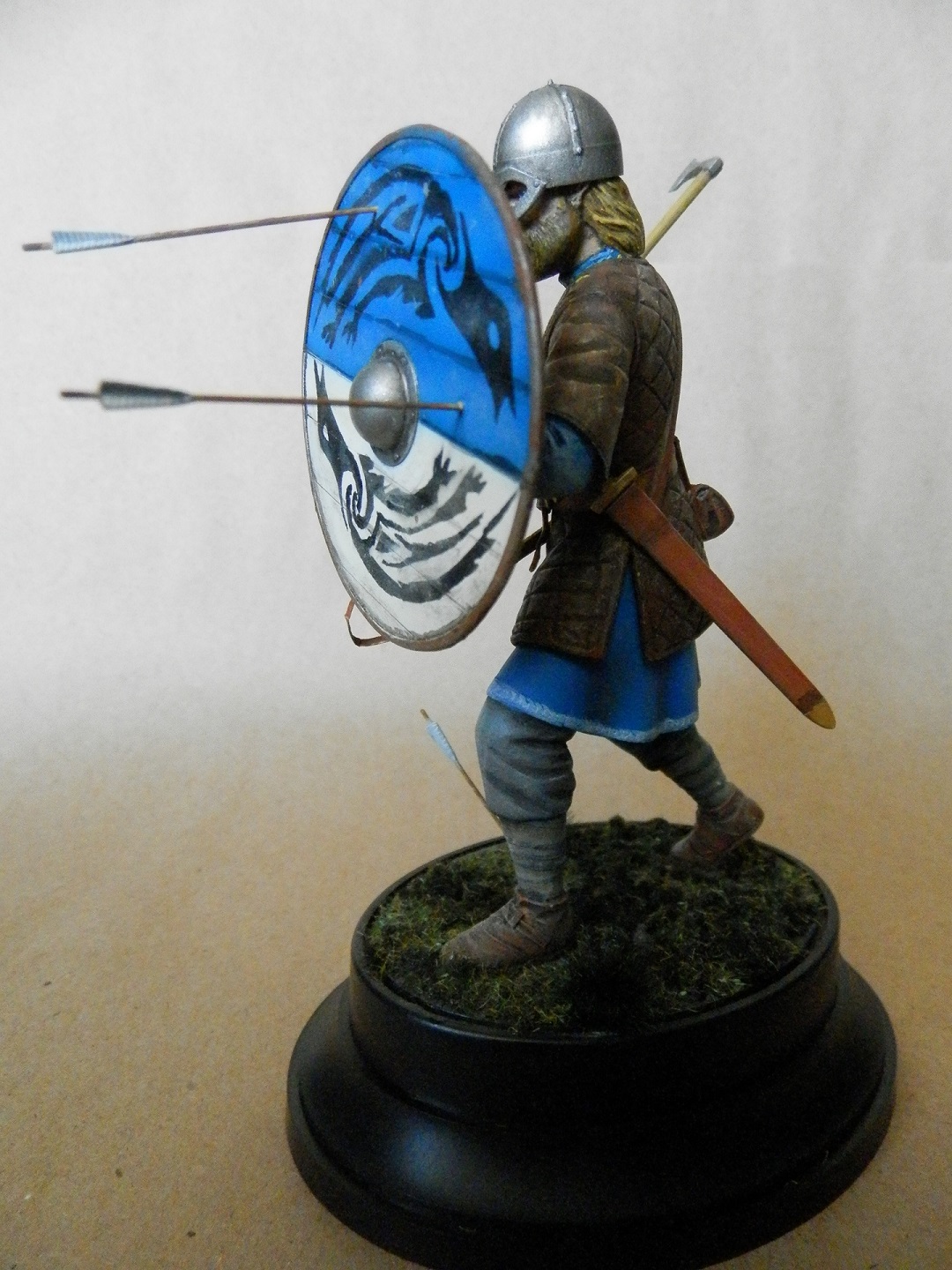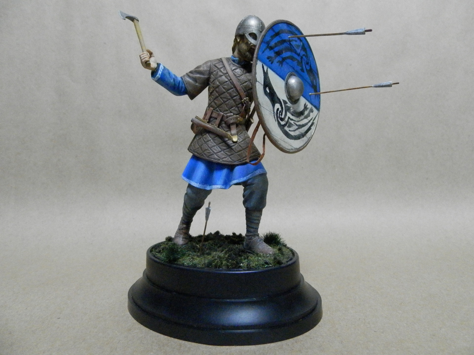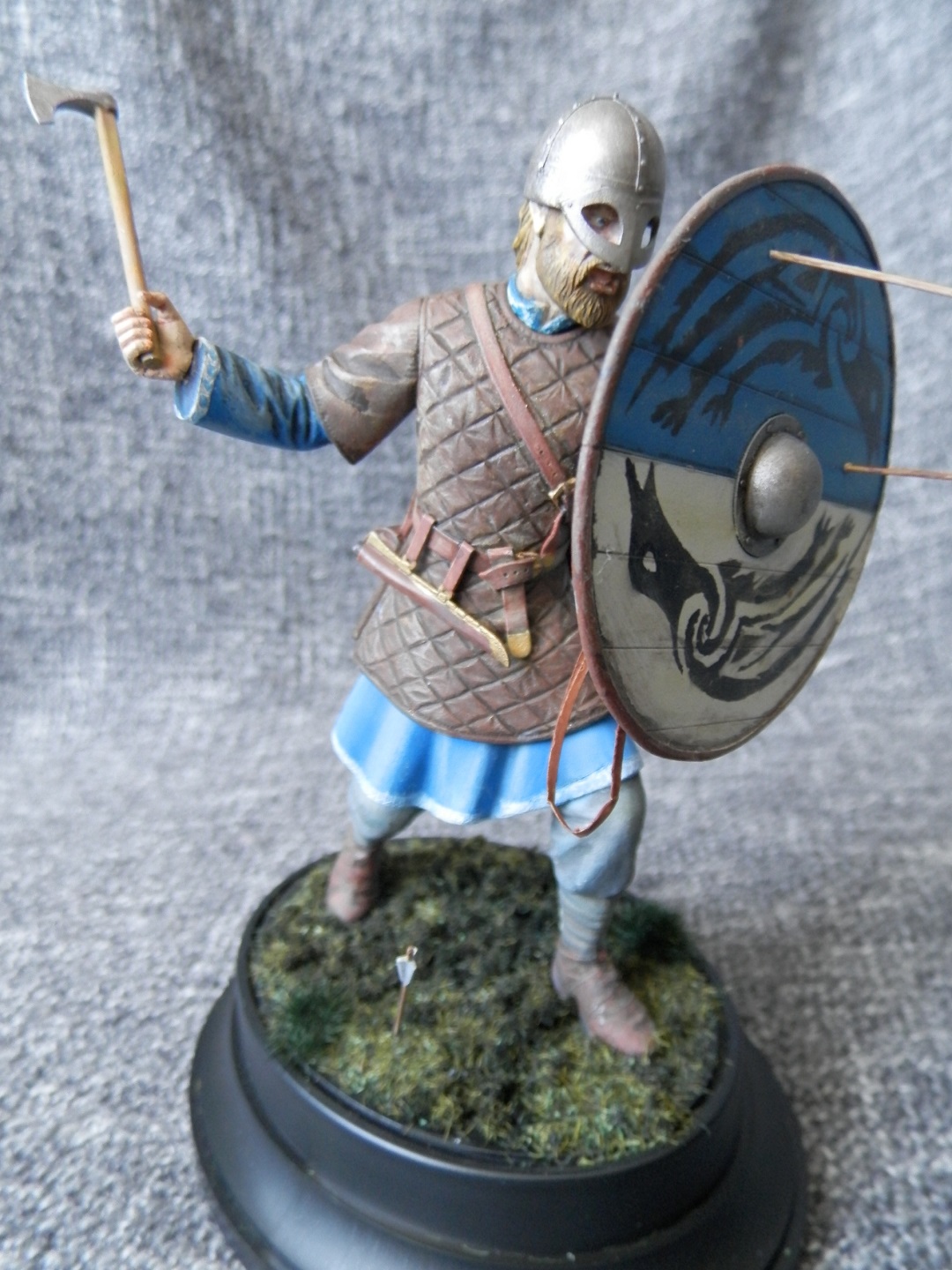 Модель Викинг компании ISM. Масштаб 1/16. Собирал из коробки. От себя добавил ремень на щит и травку под ноги. Окраска темпера, акрил (Звезда, Тамия), проливка и пигменты Тамия. Советы и замечания приветствуются.
