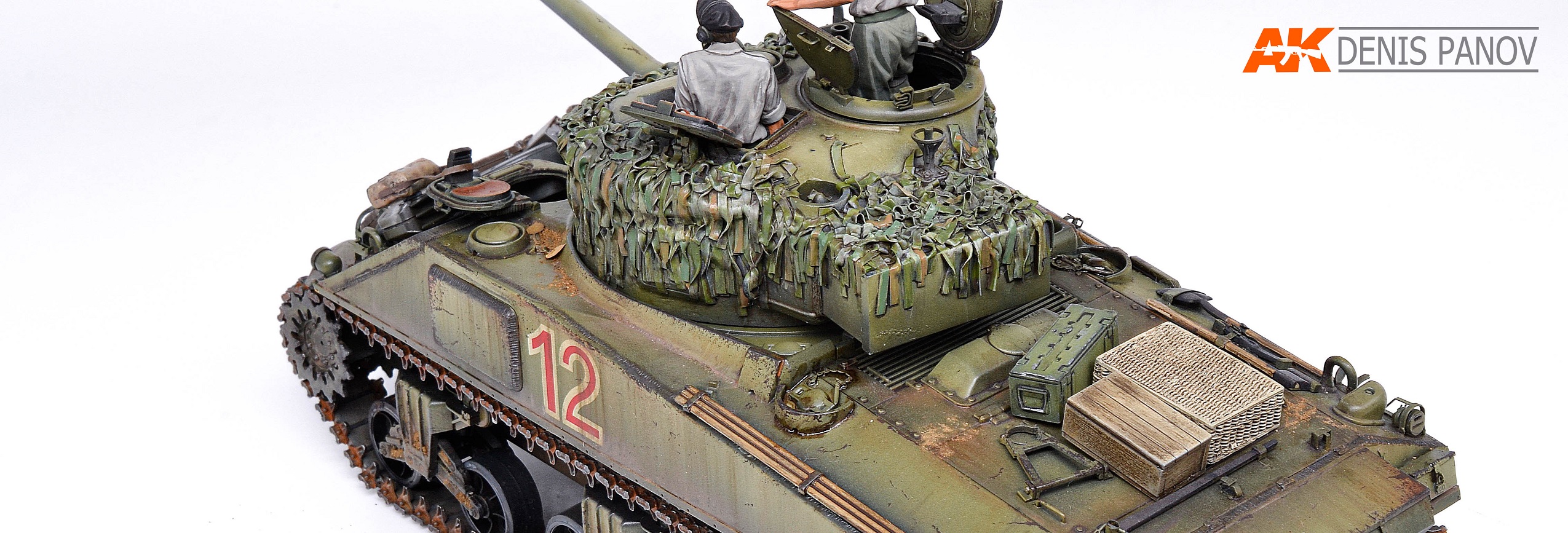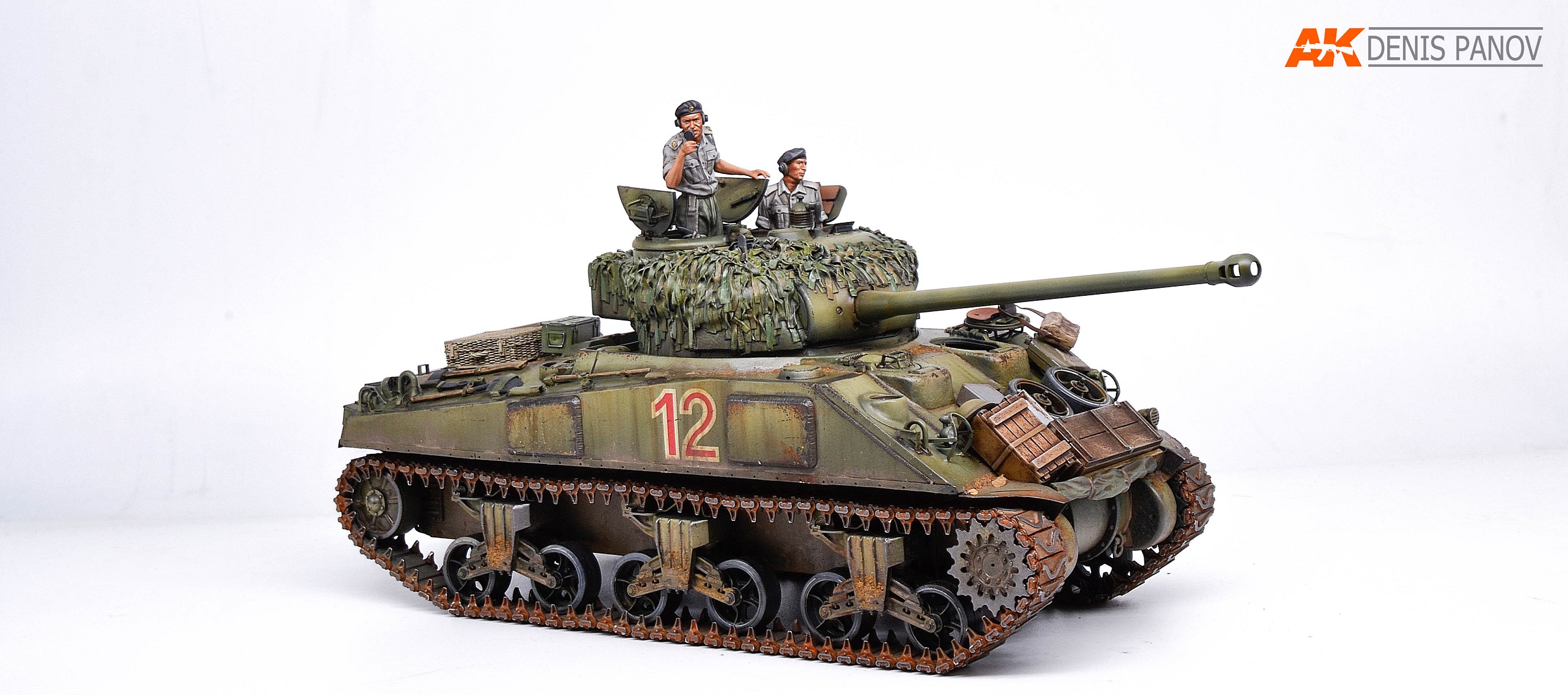 Доброго времени суток, уважаемые каропчане! На этот раз вашему вниманию представляется модель танка Шерман Файерфлай Vc. Это очередной совместный проект Олега Антонова, г. Омск (сборка, описание сборки), Дениса Панова, г. Москва (окраска, везеринг и фотопрезентация) и Романа Новикова-Охонского, г. Санкт-Петербург (роспись фигур от Тамии).