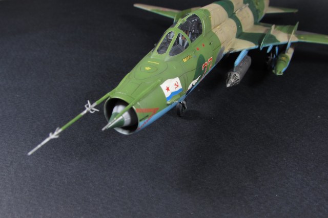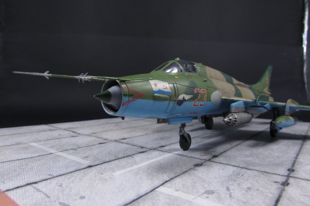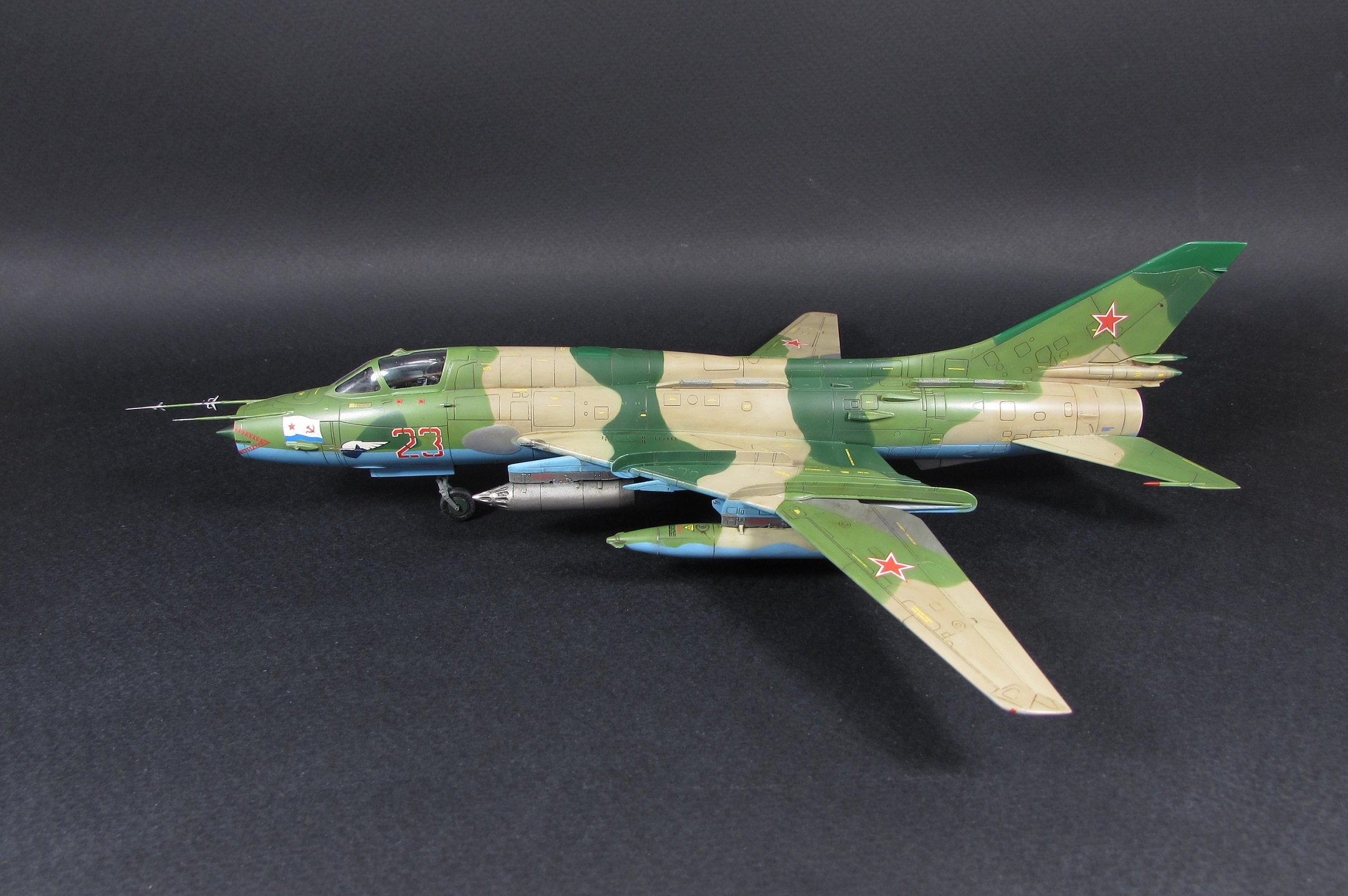 Отличная модель!!! 7 штук собрал таких. в основном под заказ. С соплом согласен, не встречал такого, чтоб полностью окрашено на СУ-17 было, хотя.....