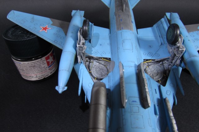 Декали. Подложка тонкая, привариваются отлично. С номером пришлось немного повозиться, там должны были быть линии от трафарета. Технички не везде совпадают с инструкцией, такое впечатление что декаль от другого Су-17.