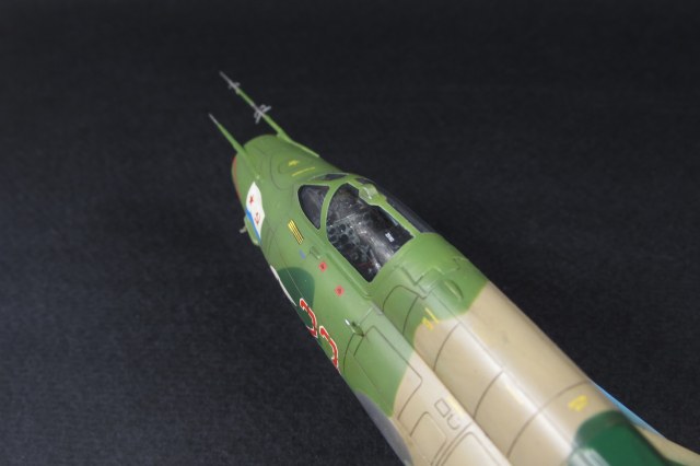 Во многом у меня схожие впечатления от набора, но в общем довольно положительные, только я заканчиваю Су-17УМ3. Родные приемники воздушного давления только выкинуть. У себя я их изначально установил, попытался довести до ума, но не смог, поэтому спилил оставив только основание и докупил ПВД Master Models. Собственно мелочовка это и есть слабое место набора, но частично это решается травлением, которое шло в комплекте. Кроме того, как и на Су-17М так и на УМ3 у меня вдоль стыка половинок фюзеляжа после склейки появляются трещины, словно сам пластик не очень то хорошо поддается модельному клею. Оба раза проблему пришлось решать обработкой швов суперклеем. Дополнительным расстройством стал пузырь воздуха на откидной части фонаря кабины для открытого варианта (изначально фонарь планировал открывать), но пришлось использовать альтернативный закрытый фонарь без дефектов.