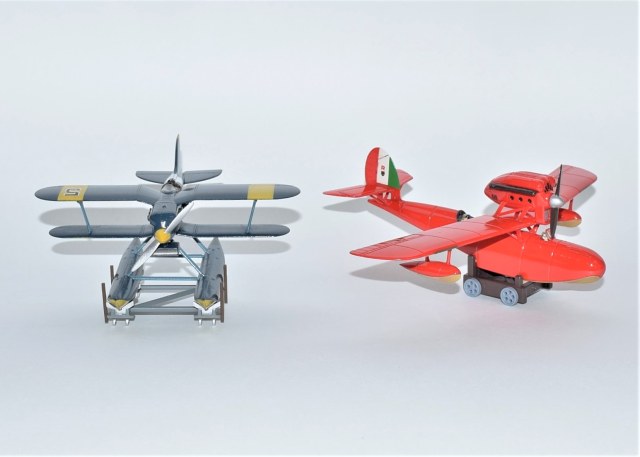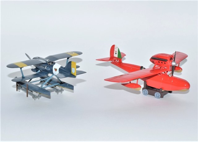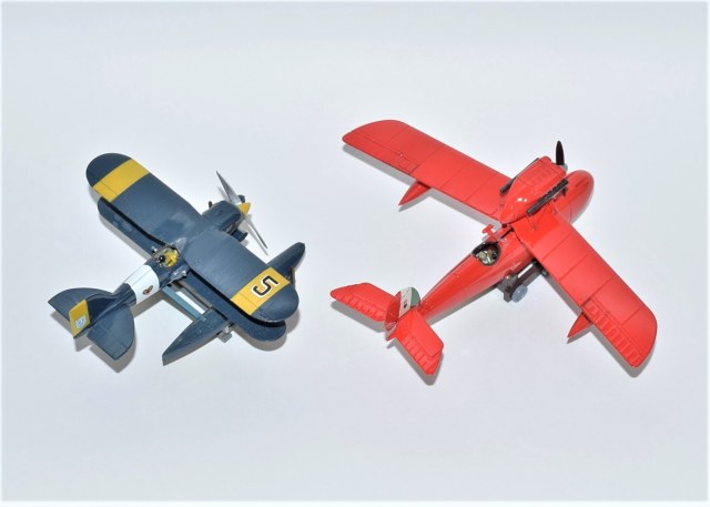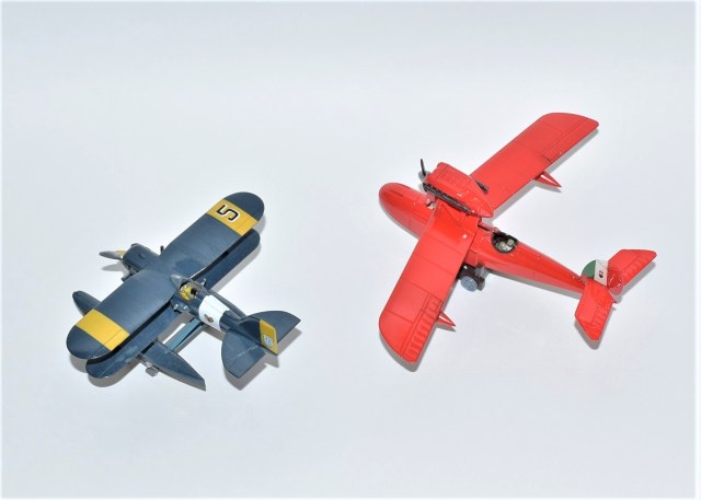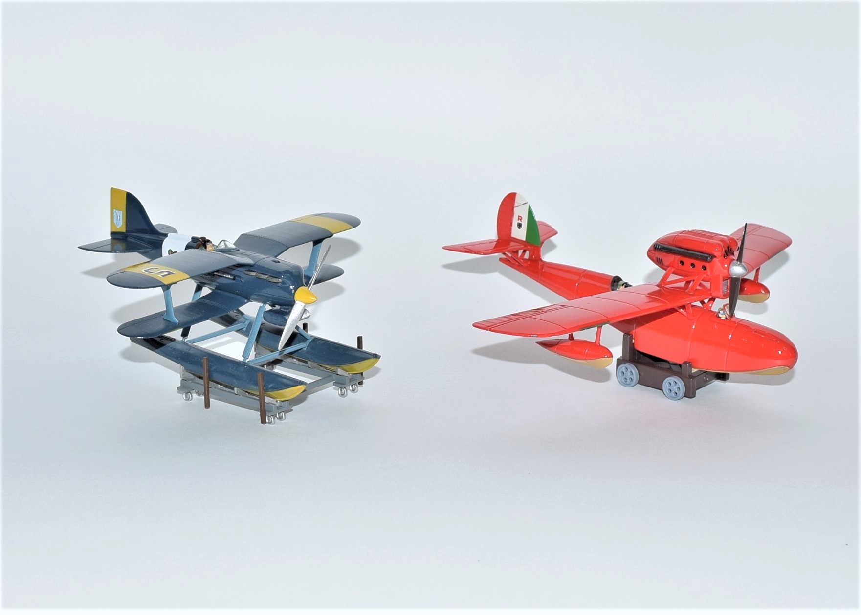 Получил в подарок от друга давным давно полностью собранные и окрашенные модели сладкой авиационной анимешной парочки - Савойи и Кертисса. Не удержался и перекрасил самолеты как правильно "по мультику". Добавил, правда, чуть отсебятины - эмблема морского конька на киле и номер на Кертиссе были нанесены уже после того, как мультфильм был снят ,) Ну, а раз это подарок, то и ушла парочка в подарок на день рождения японке - фанатке этого дуэта. Надо ли говорить, что дама была в анимешном экстазе..