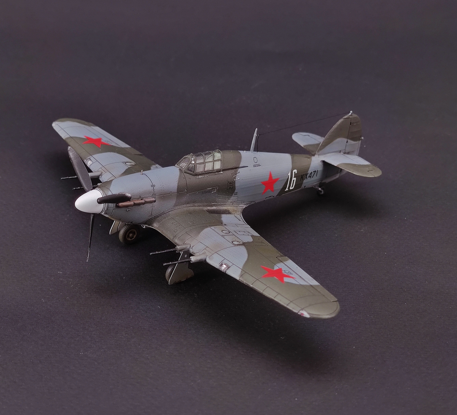 Построил новинку от "Звезды" - "Харрикейн" IIC в масштабе 1:72. Модель в целом понравилась: приятный пластик, глубокая расшивка, хорошее прозрачное остекление, неплохая для искоробочной детализация кокпита, хорошо проработаны ниши. В чертежи вкладывать желания не было - не люблю это. Немного доработал кокпит ремнями и прицелом, искупал фонарь в футуре, расклепал модель, установил точёные стволы и добавил посадочные фары и строевой сигнал от Elf. Окраска акрилами от "Тамии", вариант окраски из коробки, декали также из коробки. Пачкал модель обильно, сколов также жалеть не стал.