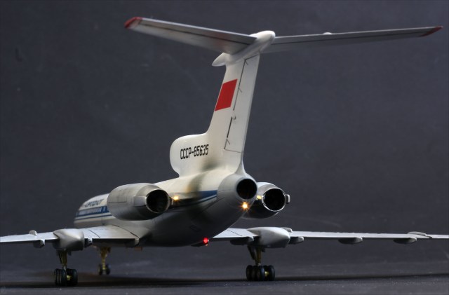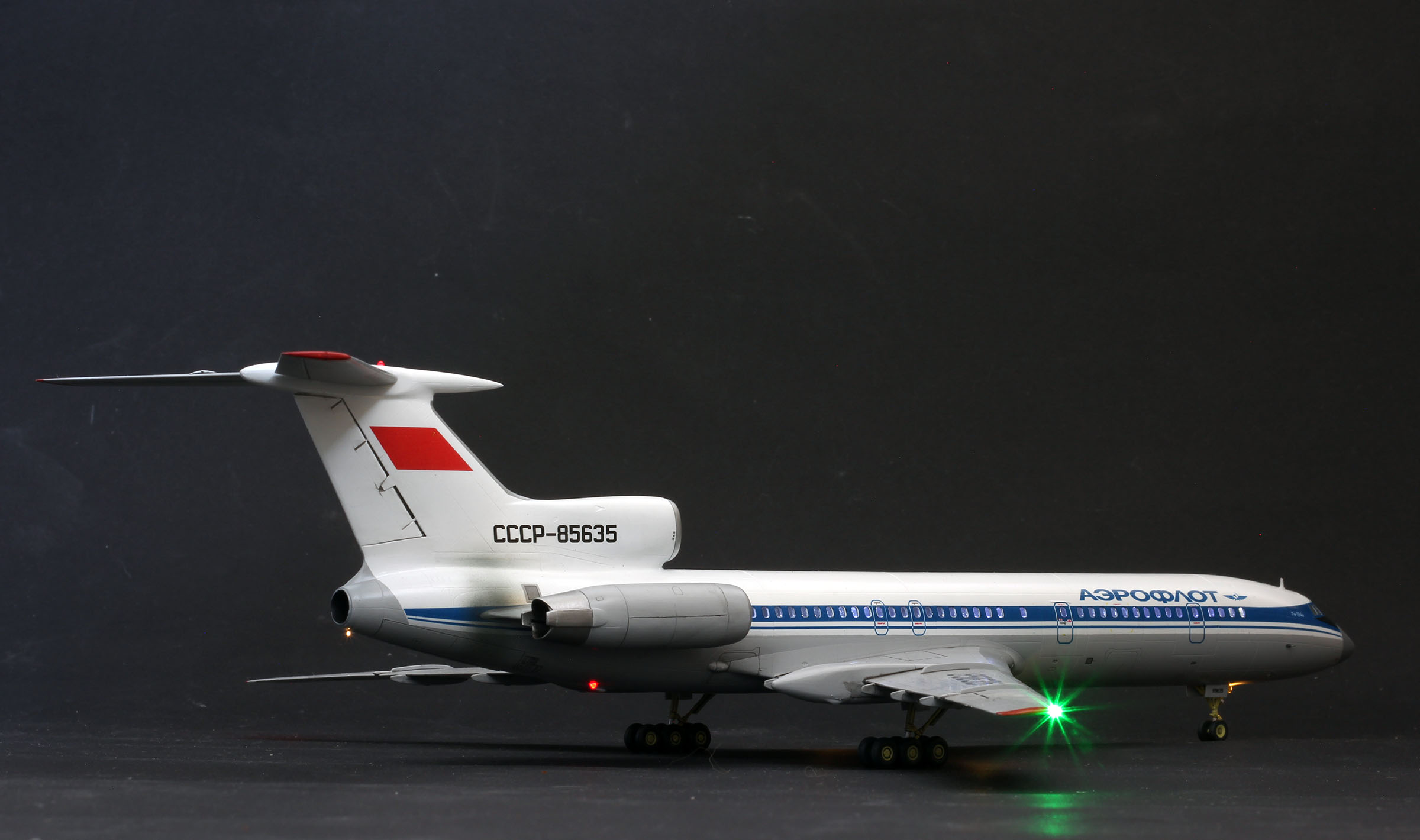 Это, пожалуй, самая аутентичная модель туполя в 144 масштабе, что я видел. За декаль отдельный респект — многие, не заморачиваясь, клеят изкоробочную, а она слишком светлая + слишком тонкий шрифт надписи «Аэрофлот». Такой косяк, кстати, на вообще всех декалях советских аэрофлотовских ливрей за исключением использованной вами.