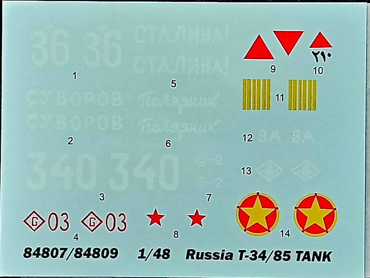 При более детальном рассмотрении видно, что всё же качество местами страдает. Но сама деталировка выше всяких похвал. Также радует, что имеется шаблон сборки «гусей» )). Башня состоит из двух деталей. Линия их склейки повторяет сварной шов на башне танка. Декаль неплохого качества без сдвигов и без ошибок. Предлагается на пять вариантов окраски. Помимо трёх советских, египетский и вьетнамский. Медная скрутка отлично сымитирует тросы на танке.