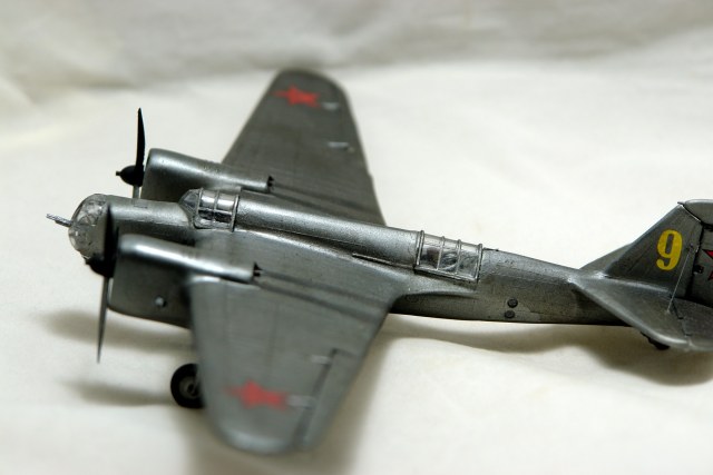 При чём тут в покраске ГанМетал? От него и получился эффект "лохматости" модели. Эта краска для для оружейных стволов и её после высыхания либо сухой кистью проходят, либо салфеточкой придают эффект поюзанного ствола. Что эта краска забыла на плоскостях самолёта?