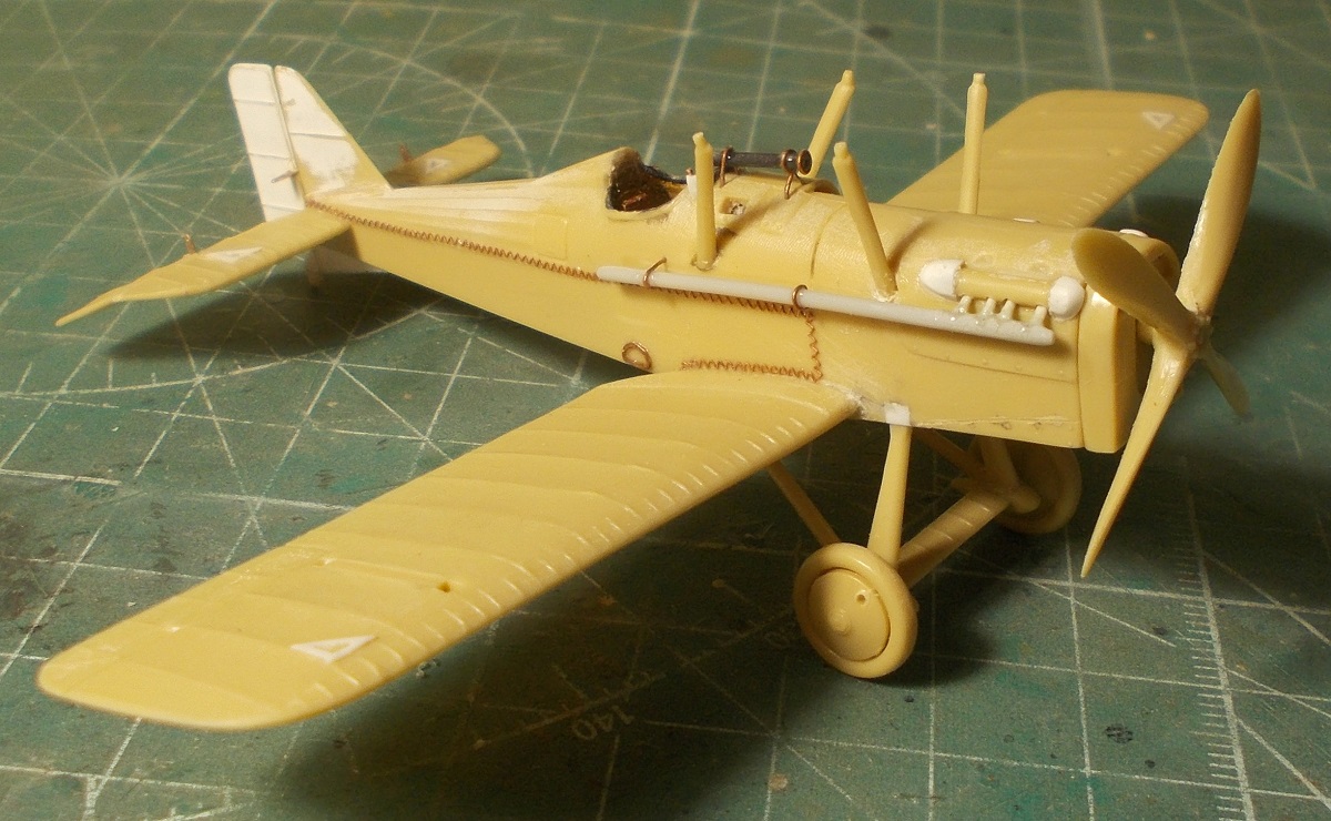 Виккерс и прицел на него- травление. Также из обрези травления выполнены рычаги рулей и элеронов.