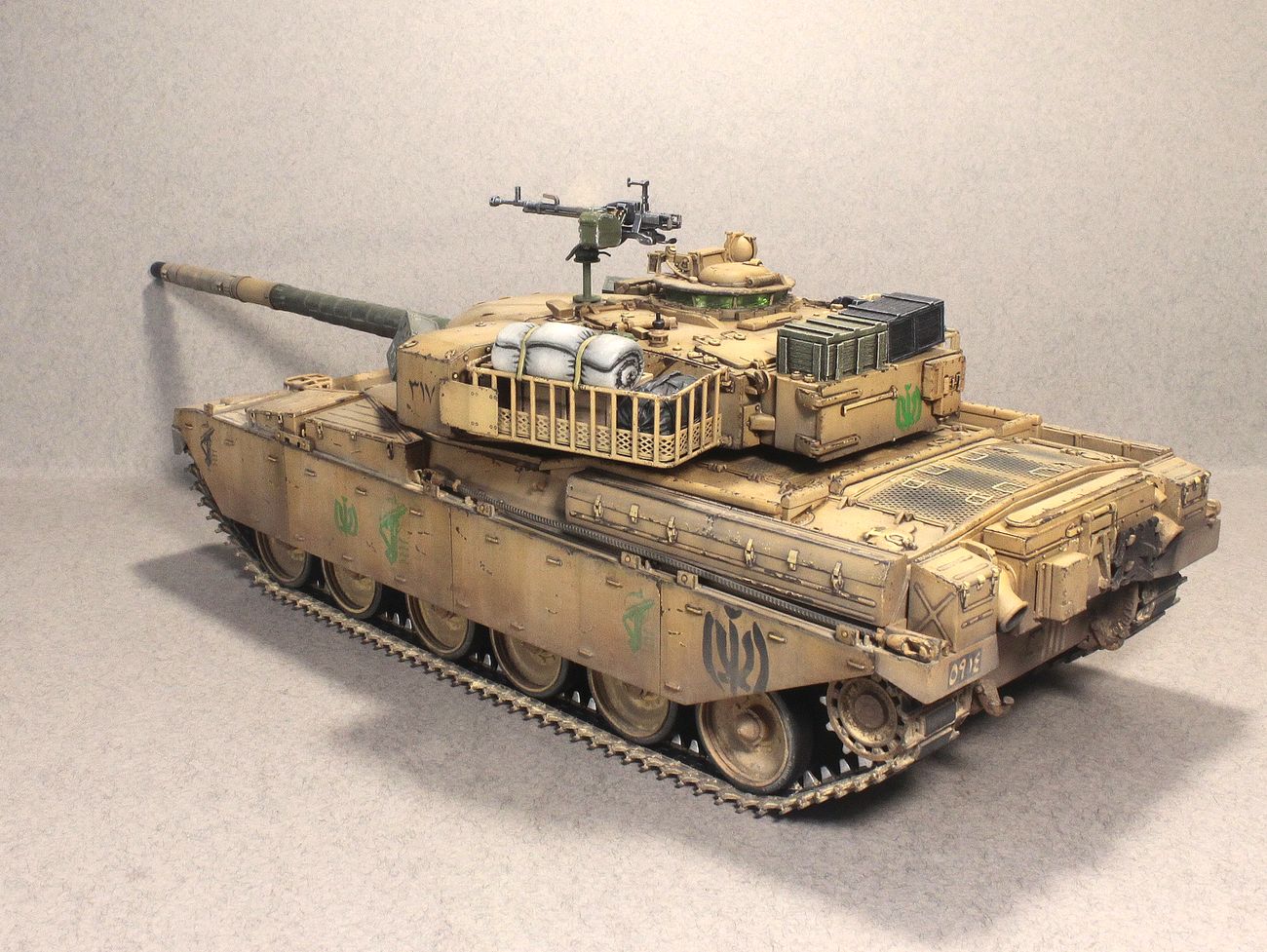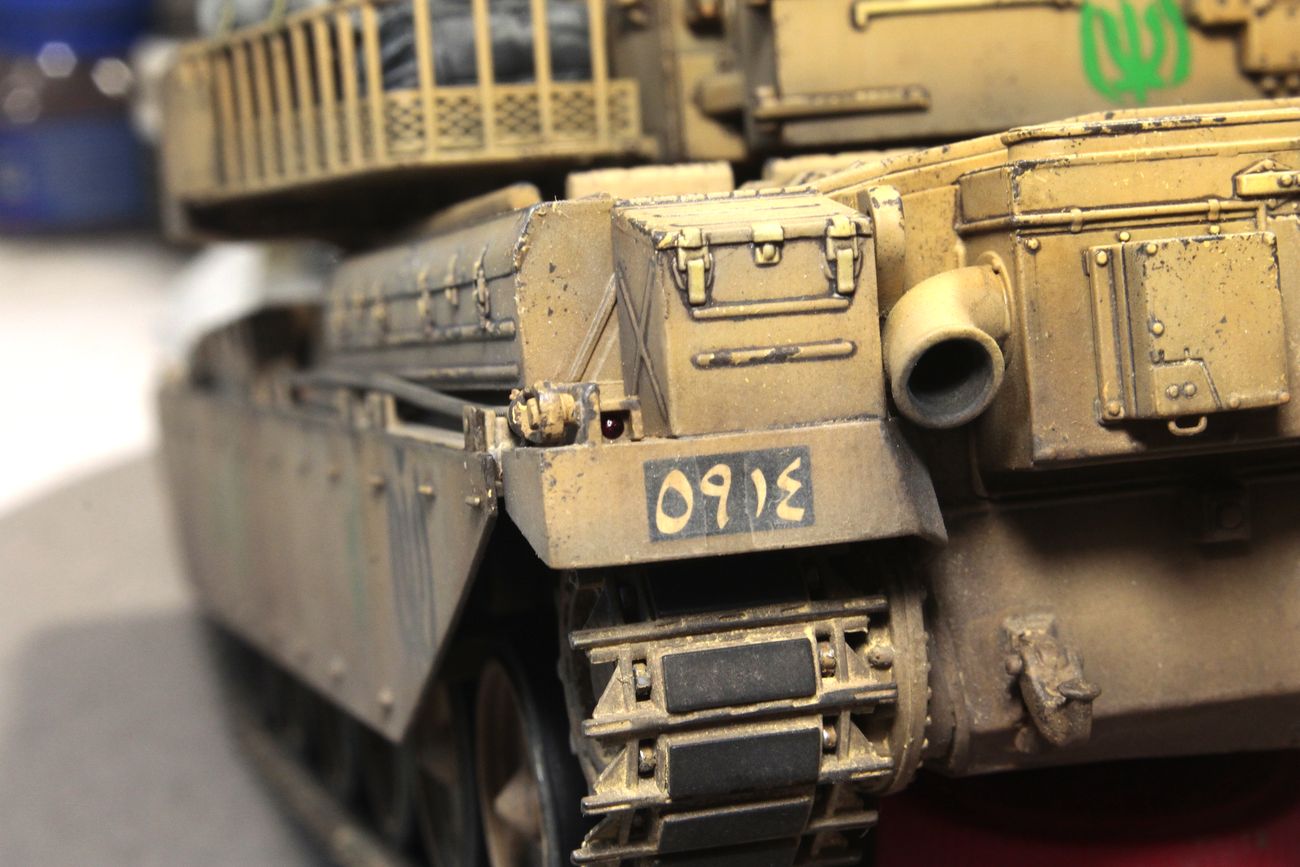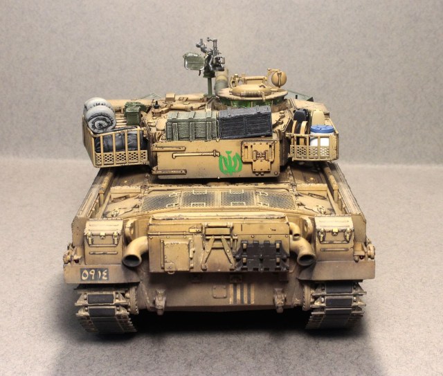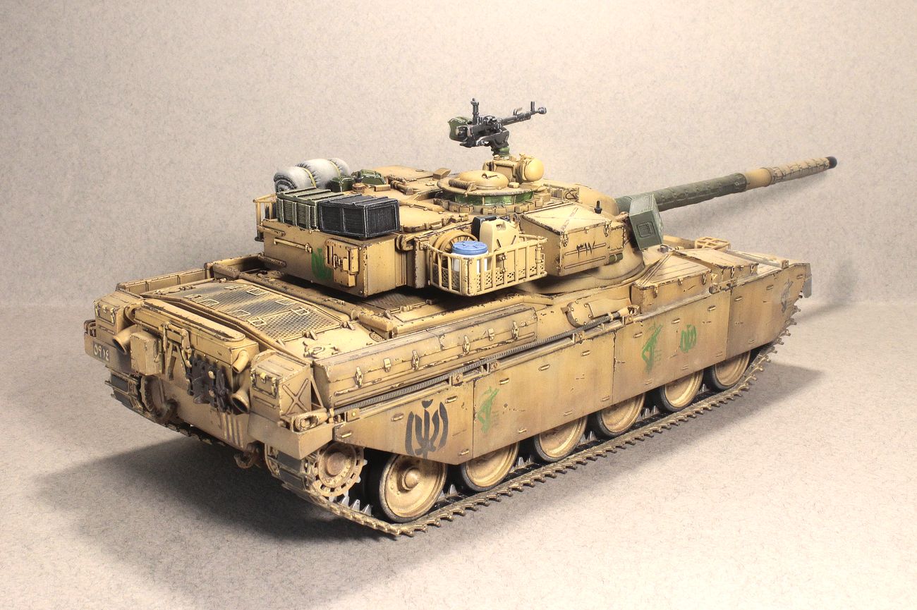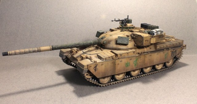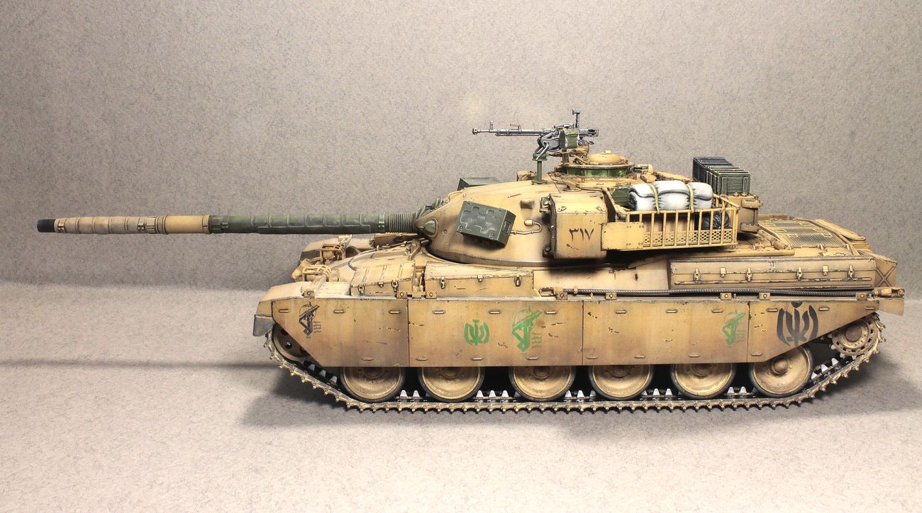 Сам «Чифтен» мне всегда нравился. Красивый он, «пропорционально сложенный», если можно так сказать про танк. Вместе с тем, выглядит он, как правило, как-то слишком чисто, слишком по-уставному. Поэтому я сделал его настолько «неуставным», насколько это возможно. Выбрал вариант танка на время и театр единственной войны, в которой он участвовал. Конкретного прототипа нет, модель представляет из себя собирательный образ иранского танка, захваченного иракцами и немного переделанного ими «под себя», с дальнейшей «передачей» законным владельцам.