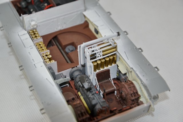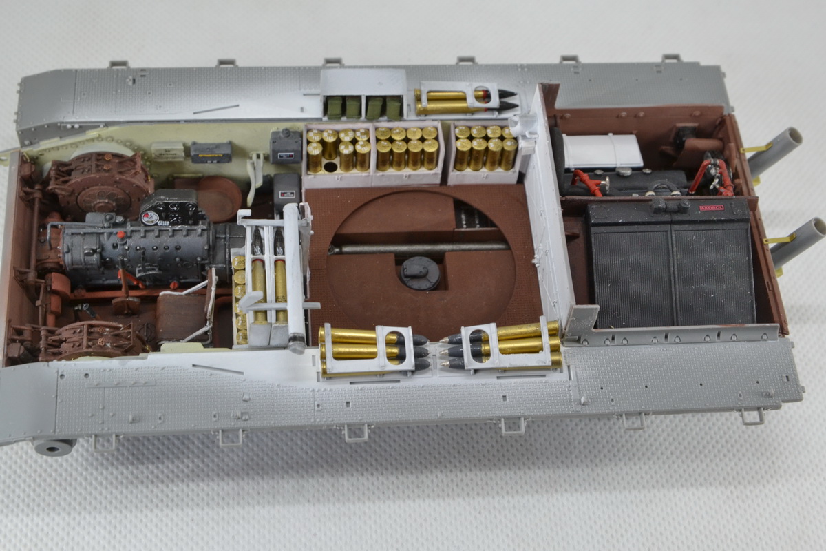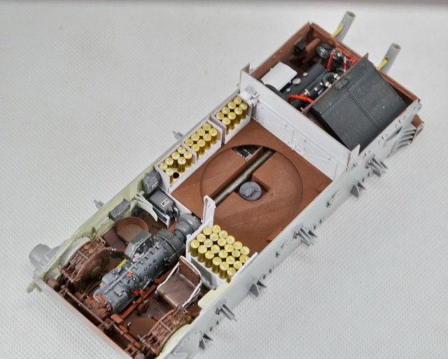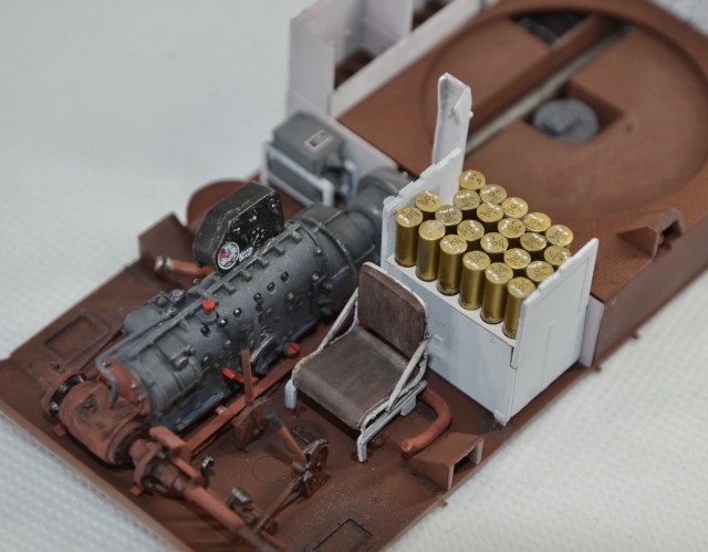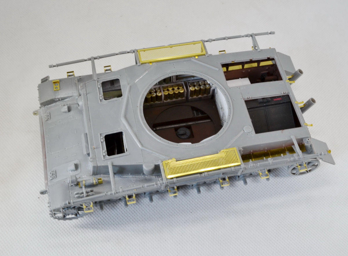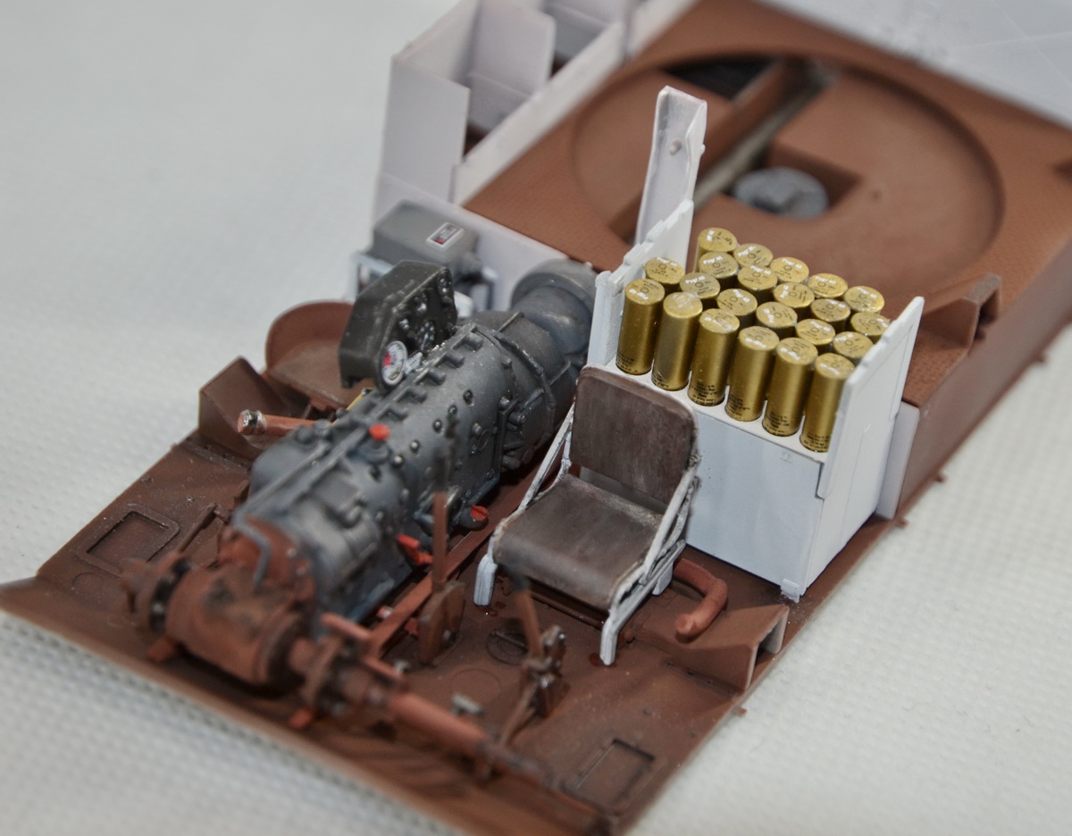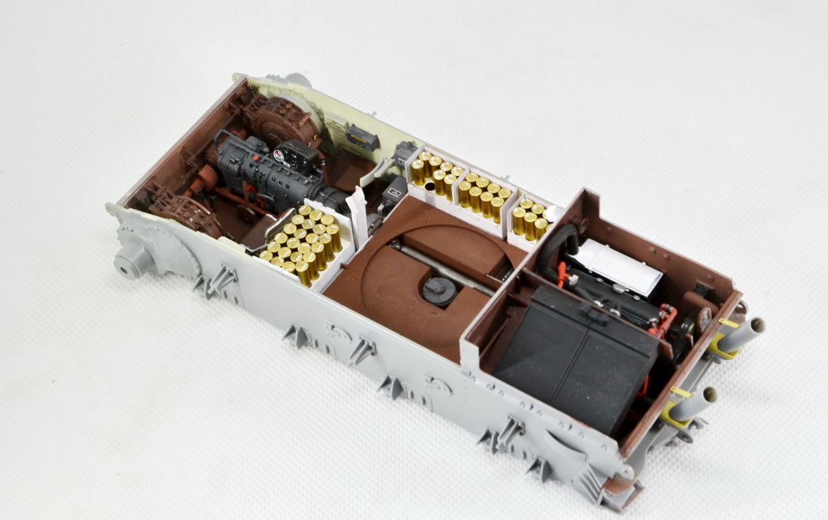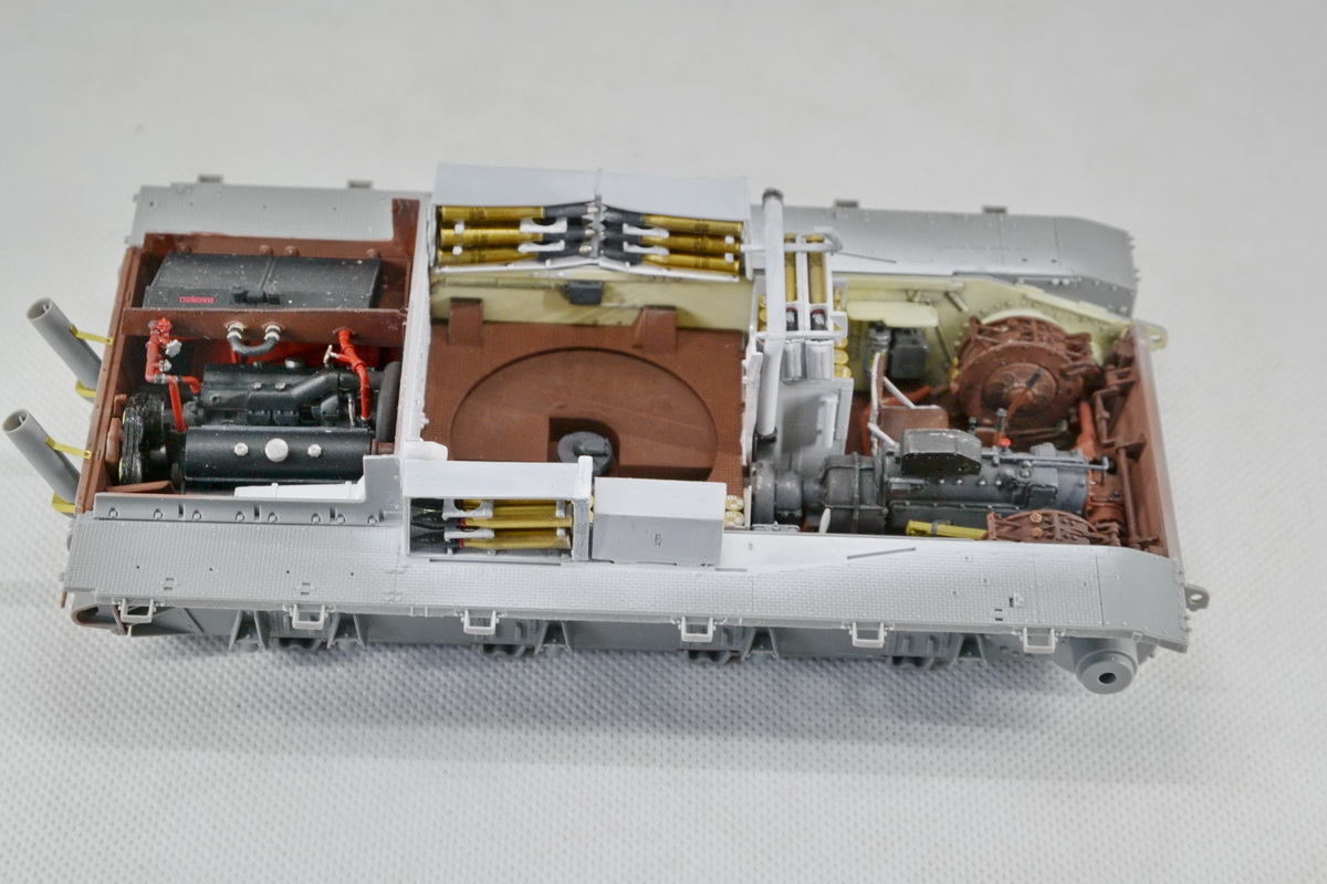 Из недостатка набора хочу отметить ,что траков производитель дал не то ,что без запаса,но и с нехваткой, видимо забыли о количестве доп. траков на броне. И, как уже писали другие моделисты, слишком много следов толкателей (на некоторых деталях внутреннего интерьера насчитал 12 ямок,шпаклевки море).