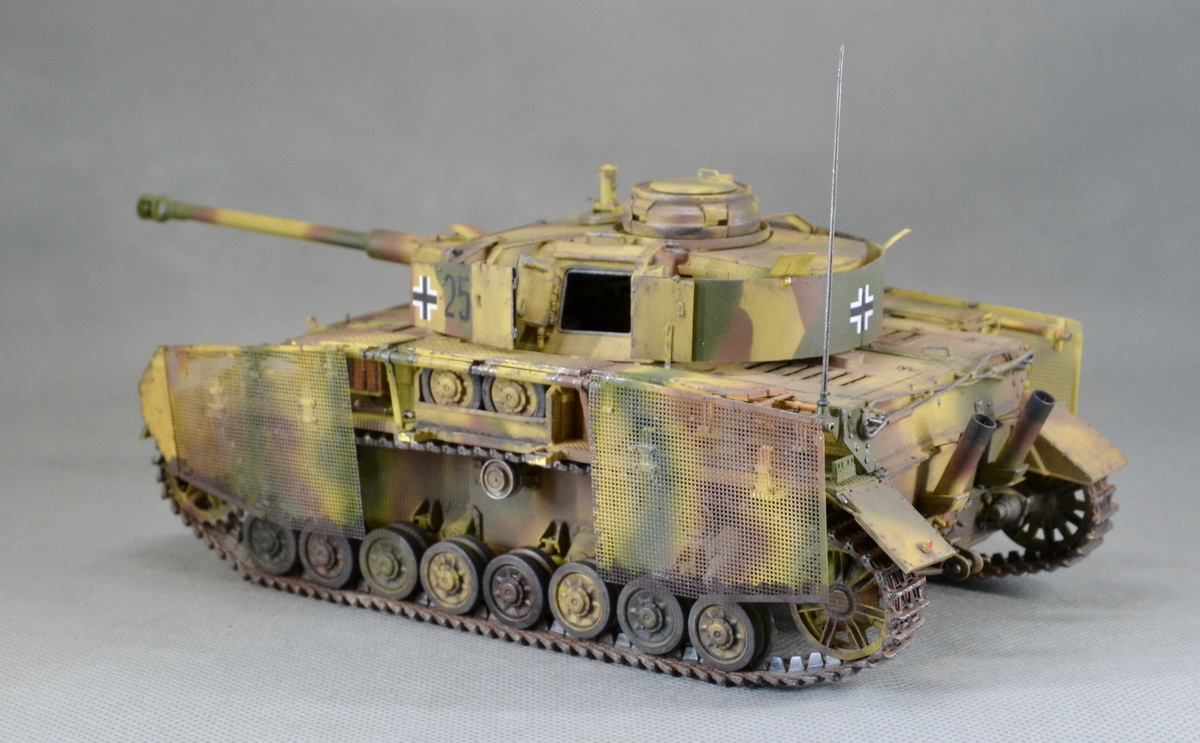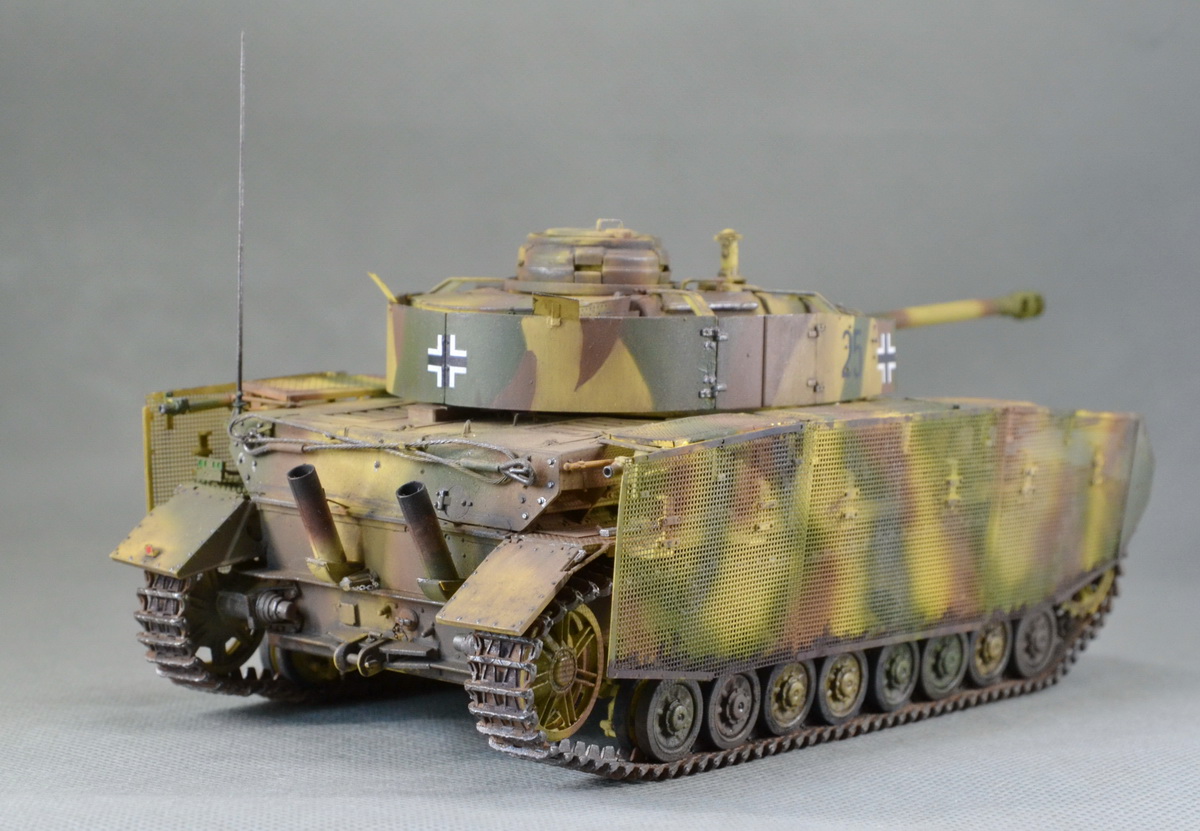 Вариант камо выбран #5 по инструкции, машина 11 танковой дивизии, Западный фронт, май 1945, на момент сдачи дивизии американцам. Умеренный везеринг и износ машины, с февраля 1945 ее просто не успело, как следует «приложить». Грязь и пыль характерна для индустриальной зоны Западной Германии в сухое время года.