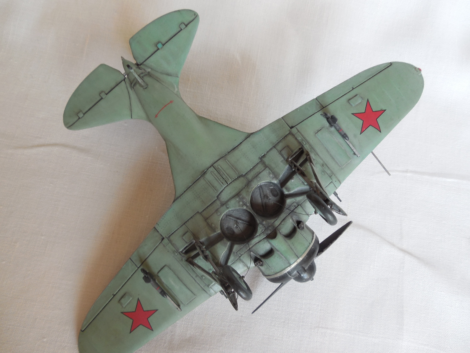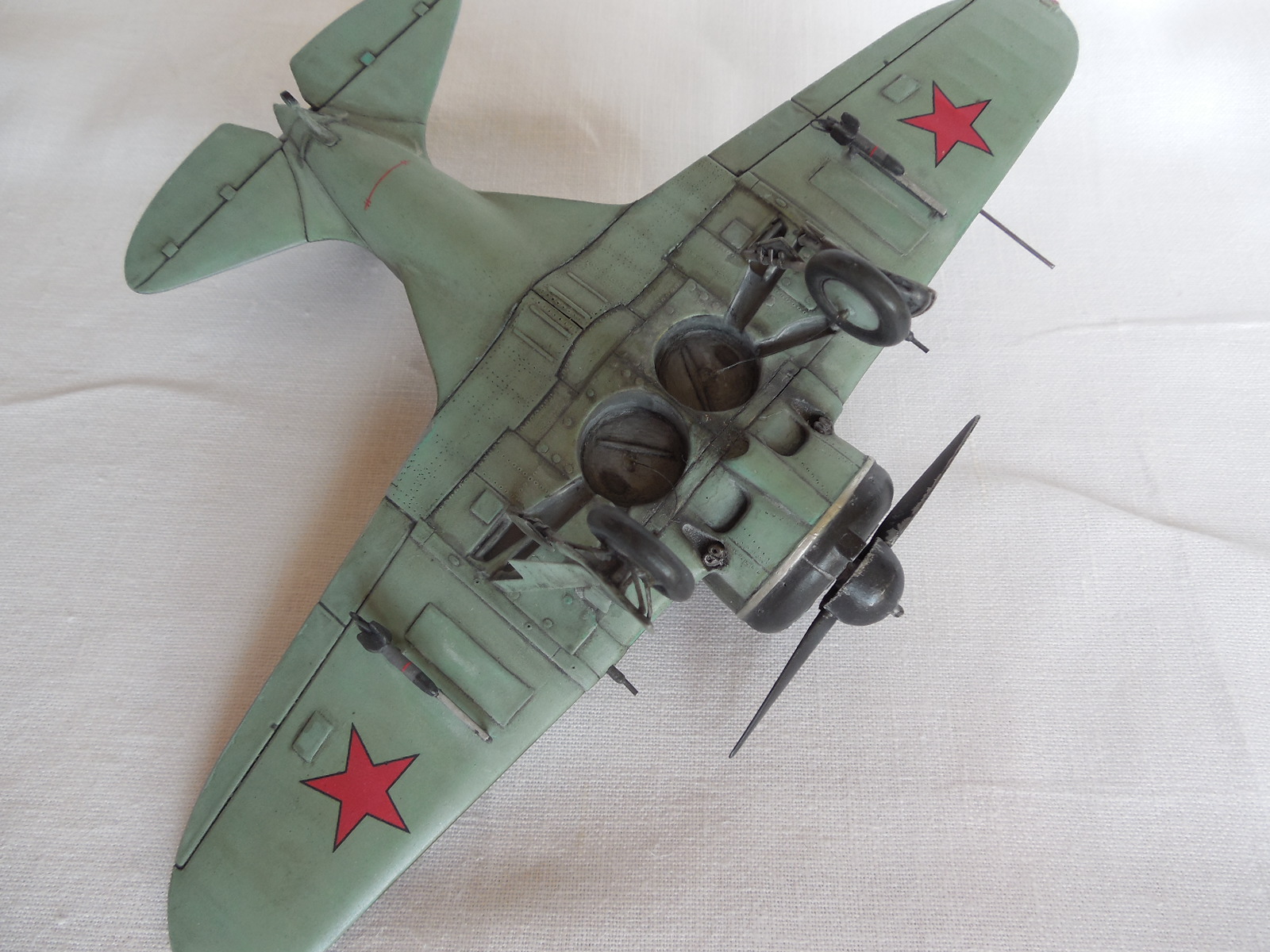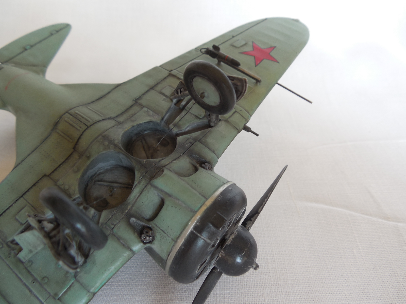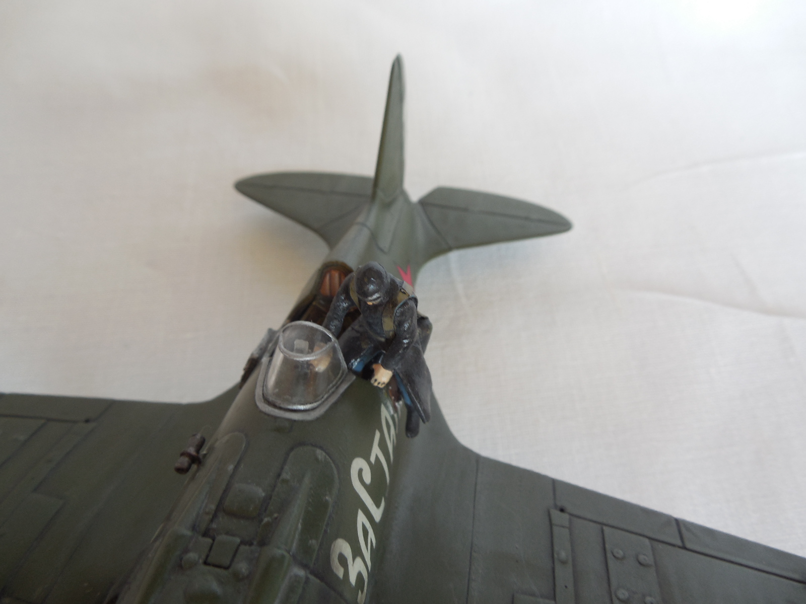 Если не особо всматриваться в модель - вроде все прилично. И даже интересно видеть пилота в кожаном пальто. Ну, а если вникать, уже многое сказали. От себя добавлю. Как то много элементов преувеличенных в размерах: накладки на крыльях, дверки в кабину, БАНО, трубка Вентури, ремни парашюта у пилота. Странная полоса впереди фонаря, на самолете нет такой. Часть створок отсутствует. И очень сильно замазан низ.