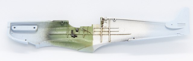 - на нижних плоскостях крыльев из кусочков литника изобразил каналы выхода воздуха для обогрева пулемётов, в связи с чем пришлось накрашивать ОЗ, так как декали невозможно было наклеить,