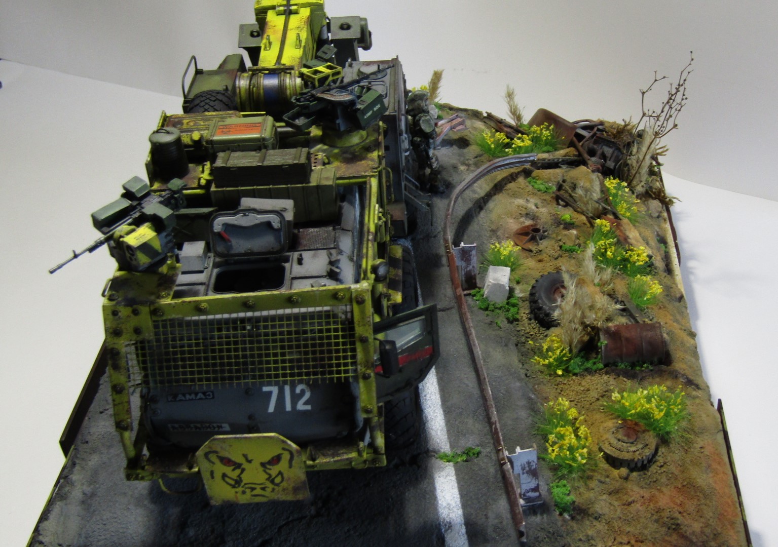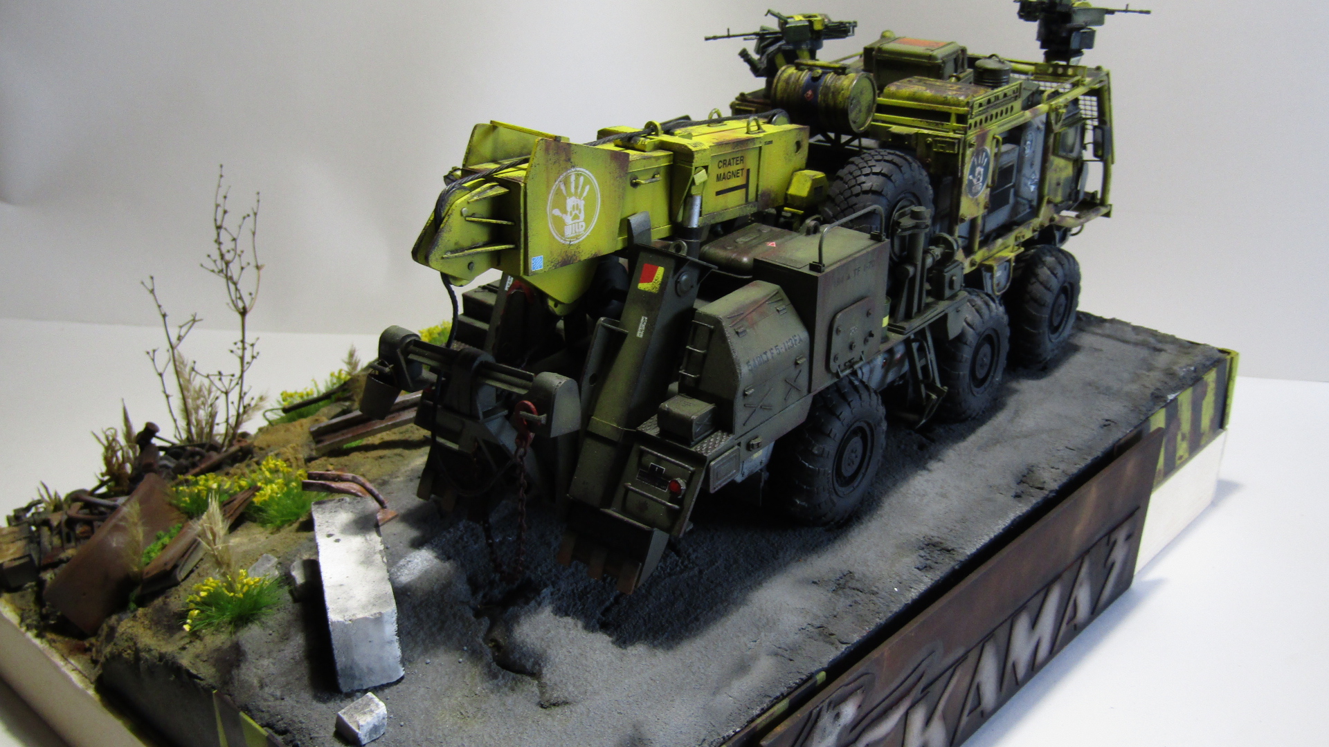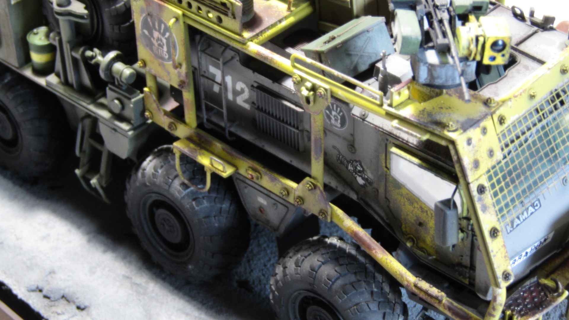 Машинка по мотивам одной старой и забытой российской игры, в которую было убито с удовольствием немало времени. Тайфун К от Звезды в 35 м масштабе. Отличный пластик, есть к чему приложить руки и можно было бы на выходе получить приличную модель, но... Это же скушно, подумал я и вот оно вот. Эдакий тягач эвакуатор для спасения неспасаемого и эвакуации в никуда. Много разных красок от тамии, масляных фильтров и миговских пигментов. Линейки и сода на пва, немного листового пластика и мата и вуаля. Приятного просмотра.