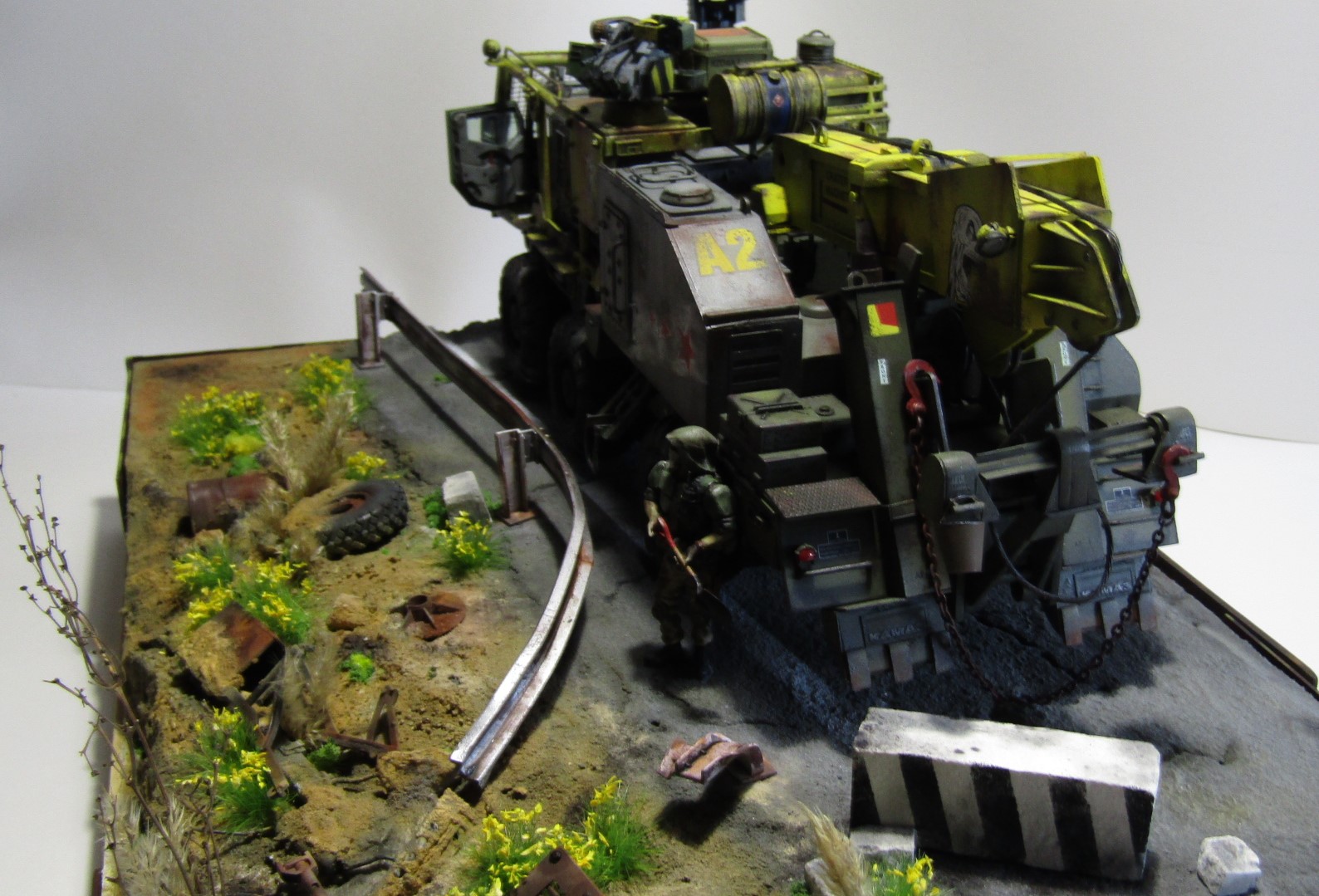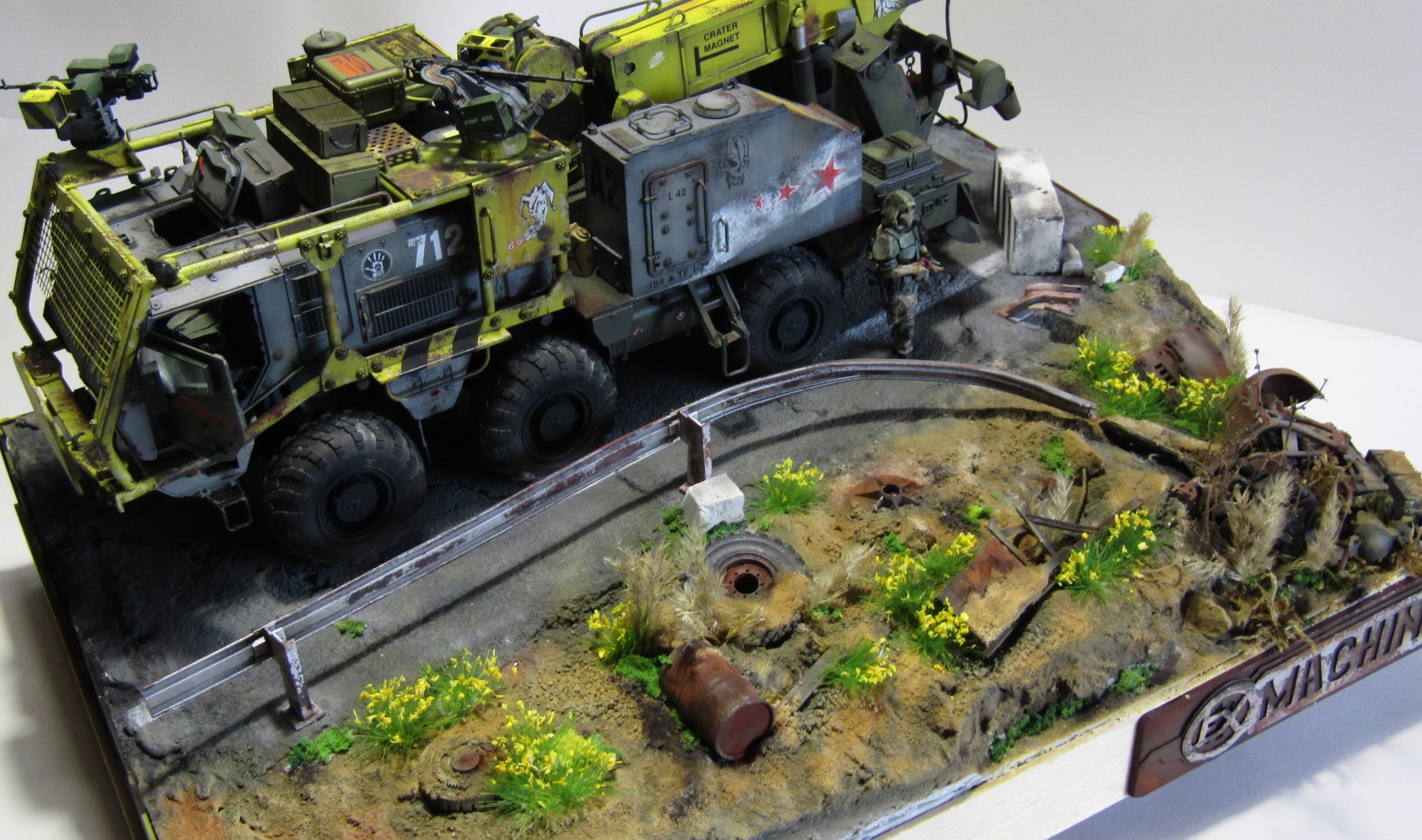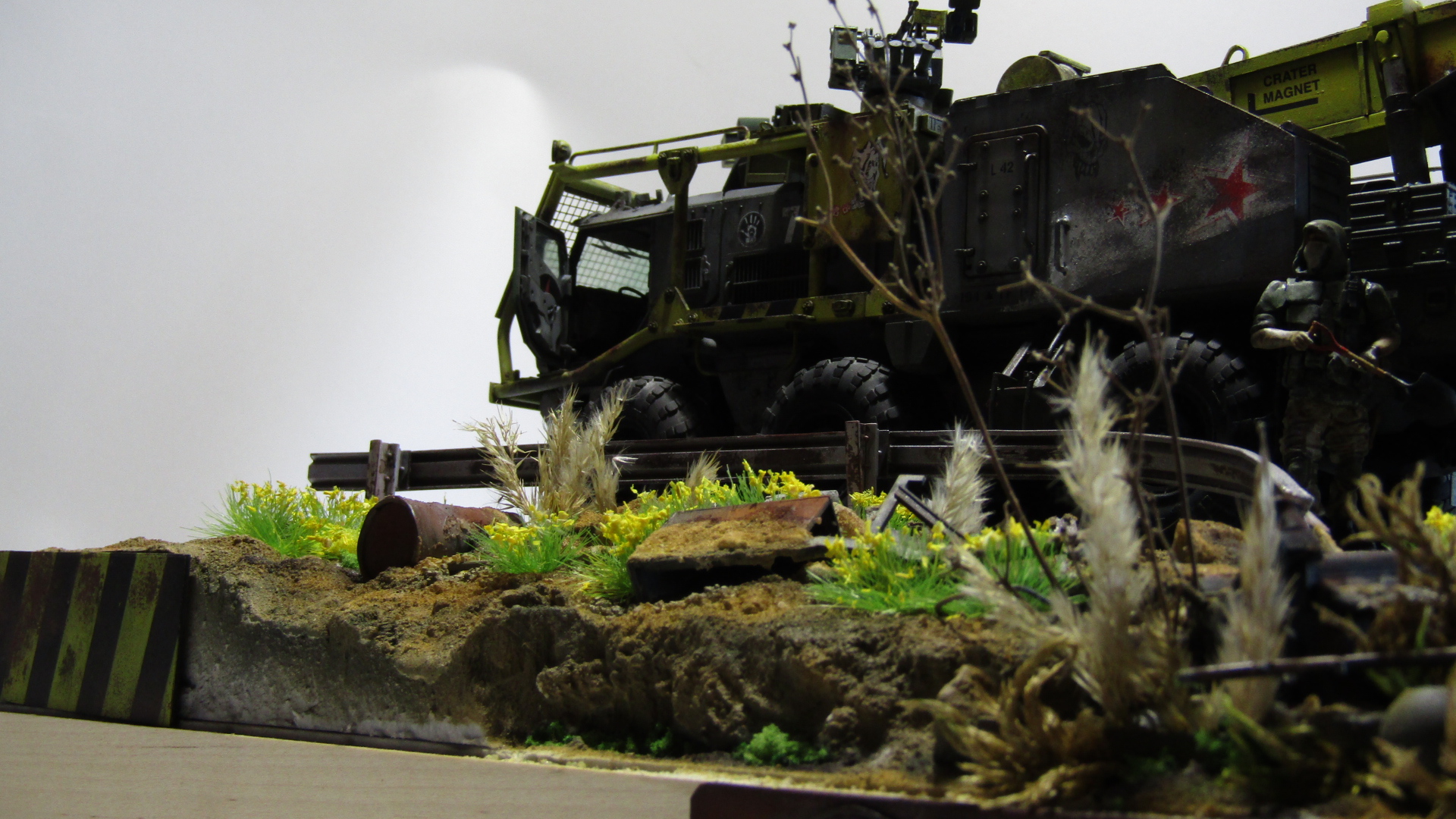 Машинка по мотивам одной старой и забытой российской игры, в которую было убито с удовольствием немало времени. Тайфун К от Звезды в 35 м масштабе. Отличный пластик, есть к чему приложить руки и можно было бы на выходе получить приличную модель, но... Это же скушно, подумал я и вот оно вот. Эдакий тягач эвакуатор для спасения неспасаемого и эвакуации в никуда. Много разных красок от тамии, масляных фильтров и миговских пигментов. Линейки и сода на пва, немного листового пластика и мата и вуаля. Приятного просмотра.