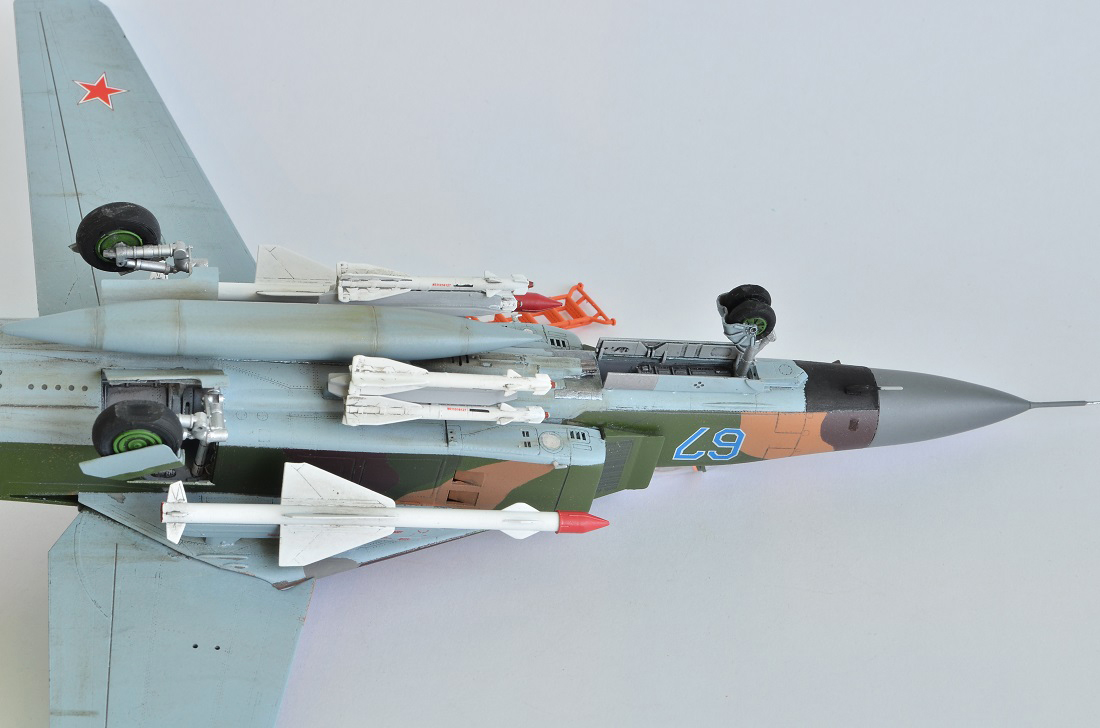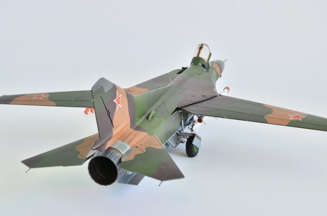 Окрашена модель нитро-краской тон мешал сам на глаз,ссылаясь на фото из интернета, колеса шасси и радиопрозрачные поверхности антенн краски АКАН . Сопло двигателя тонировочные пигменты АКАН.