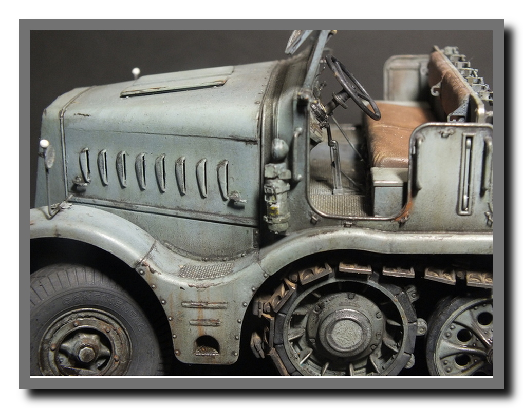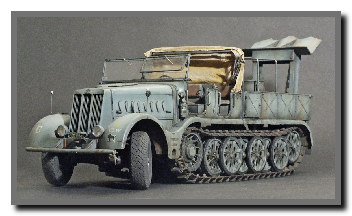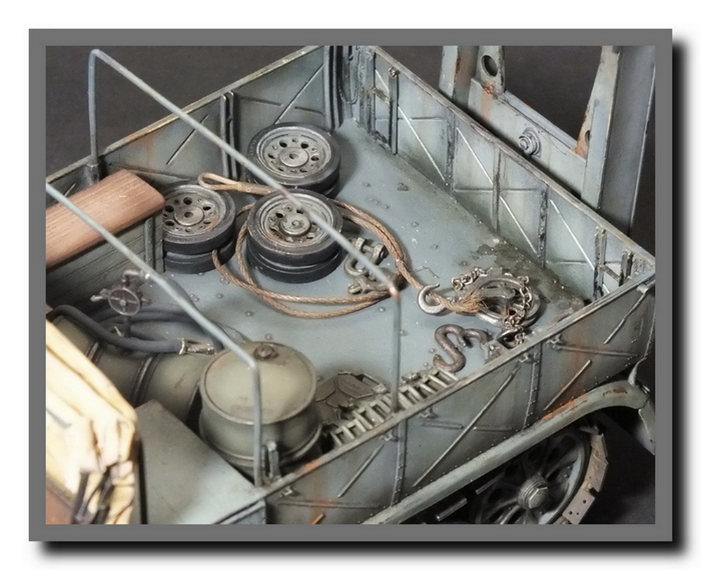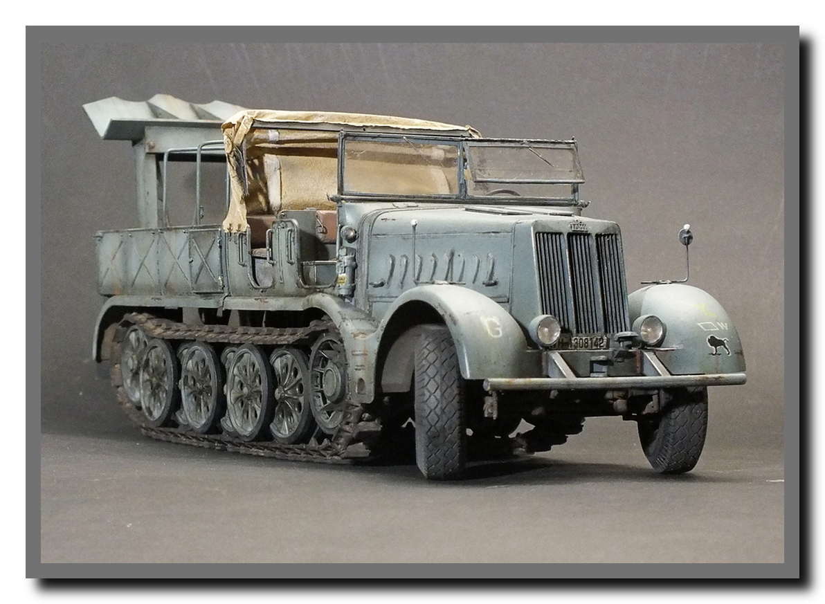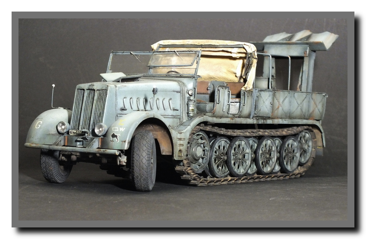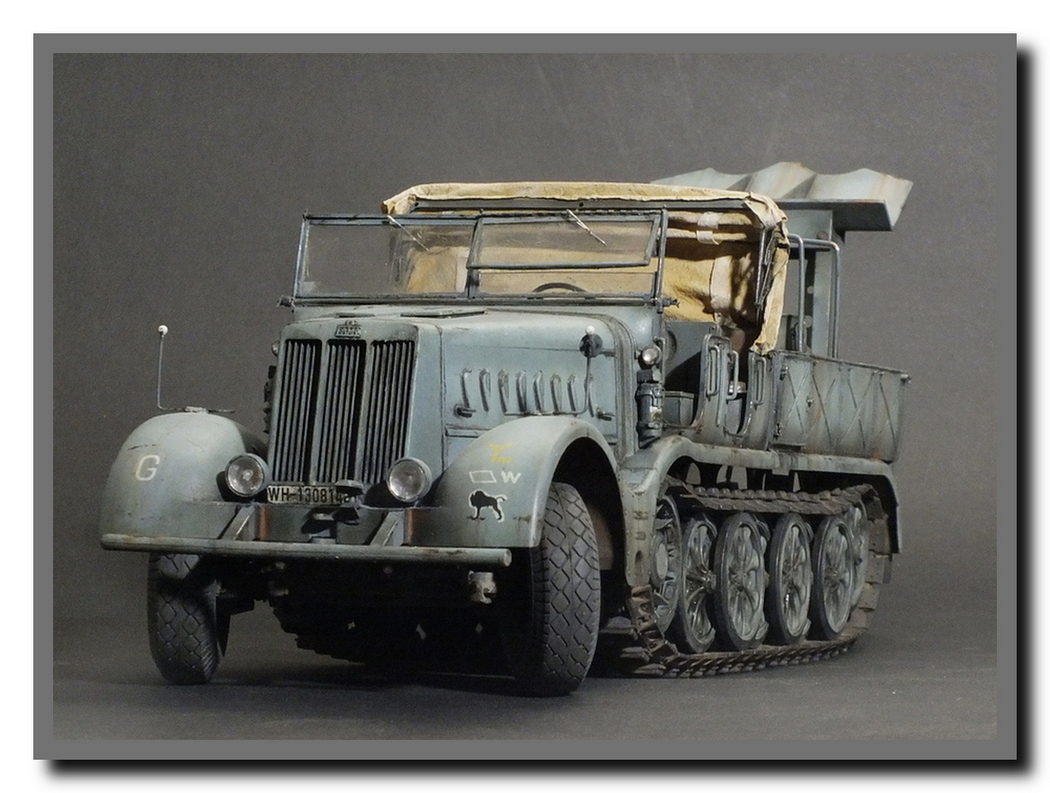 Приветствую уважаемое сообщество.Предлагаю к обсуждению одну из недавно законченных работ-модель немецкого 18-ти тонного полугусеничного тягача ФАМО.Работа была закончена еще полгода назад,но никак не мог нормально отфотографировать.Наконец-то дошли руки и теперь ее можно будет посмотреть и на Каропке.Сам набор достаточно простенький и его вполне можно назвать моделью выходного дня,но я решил усложнить себе жизнь на какое-то время)) и по сходной цене приобрел четыре набора фототравления от АBER.Один можно было и не брать,он для артиллерийского тягача.Но и он пригодился т.к несколько деталей успешно запорол и они также присутствовали в "ненужном" наборе.Также использовал фары от Elf и усы габаритов от Voyager model.Были у меня и траки Фриуловские,но посмотрев на родные понял,что пластиковые ни чем не хуже и остановился на них.Сам кит в работе приятный по стыковке,только как и большинство Тамиевских наборов грешит следами от толкателей во всех видимых и не видимых местах.Так,что шпатли нужно не мало.Дополнительно собрал и поставил трал также от Тамии.В кузов накидал бочек и канистр от нее же.Из доработок только тент, шланг от бочки,ну и сидушка в кузов.Декали использовал не из набора,с привязкой к конкретной машине.