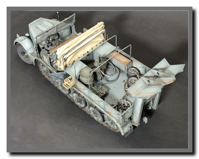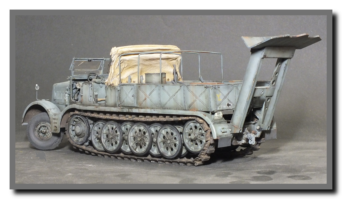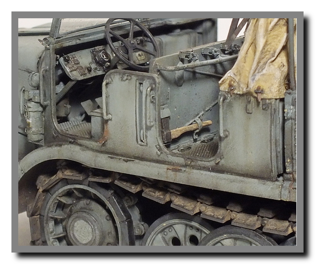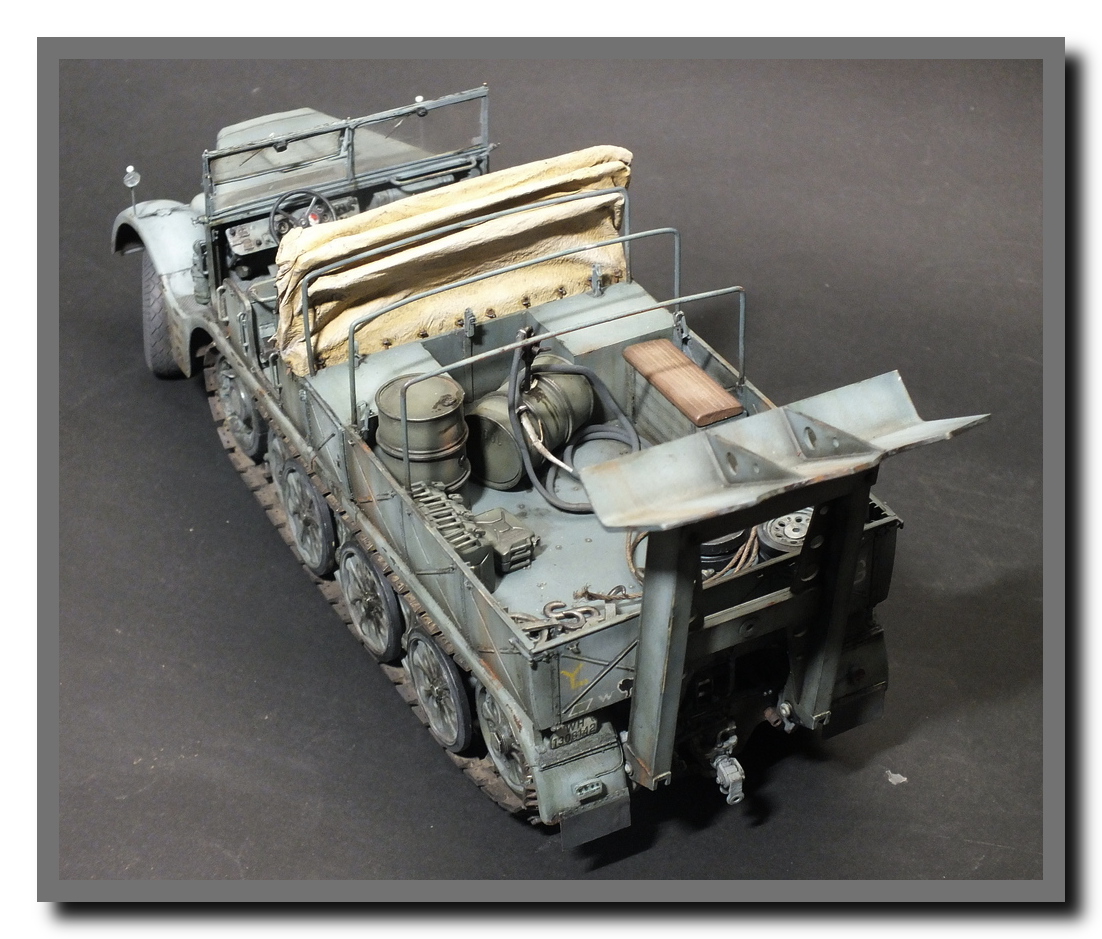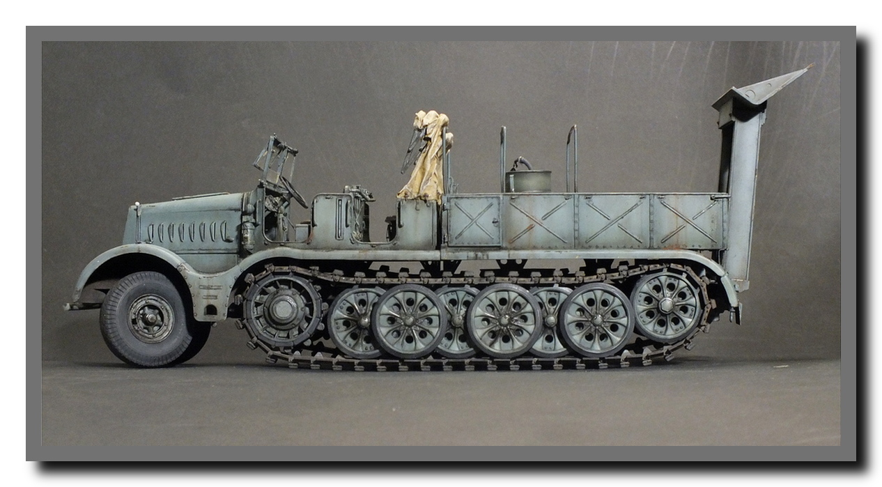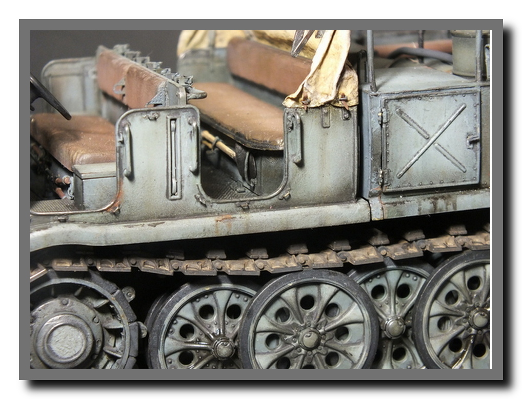 Приветствую уважаемое сообщество.Предлагаю к обсуждению одну из недавно законченных работ-модель немецкого 18-ти тонного полугусеничного тягача ФАМО.Работа была закончена еще полгода назад,но никак не мог нормально отфотографировать.Наконец-то дошли руки и теперь ее можно будет посмотреть и на Каропке.Сам набор достаточно простенький и его вполне можно назвать моделью выходного дня,но я решил усложнить себе жизнь на какое-то время)) и по сходной цене приобрел четыре набора фототравления от АBER.Один можно было и не брать,он для артиллерийского тягача.Но и он пригодился т.к несколько деталей успешно запорол и они также присутствовали в "ненужном" наборе.Также использовал фары от Elf и усы габаритов от Voyager model.Были у меня и траки Фриуловские,но посмотрев на родные понял,что пластиковые ни чем не хуже и остановился на них.Сам кит в работе приятный по стыковке,только как и большинство Тамиевских наборов грешит следами от толкателей во всех видимых и не видимых местах.Так,что шпатли нужно не мало.Дополнительно собрал и поставил трал также от Тамии.В кузов накидал бочек и канистр от нее же.Из доработок только тент, шланг от бочки,ну и сидушка в кузов.Декали использовал не из набора,с привязкой к конкретной машине.