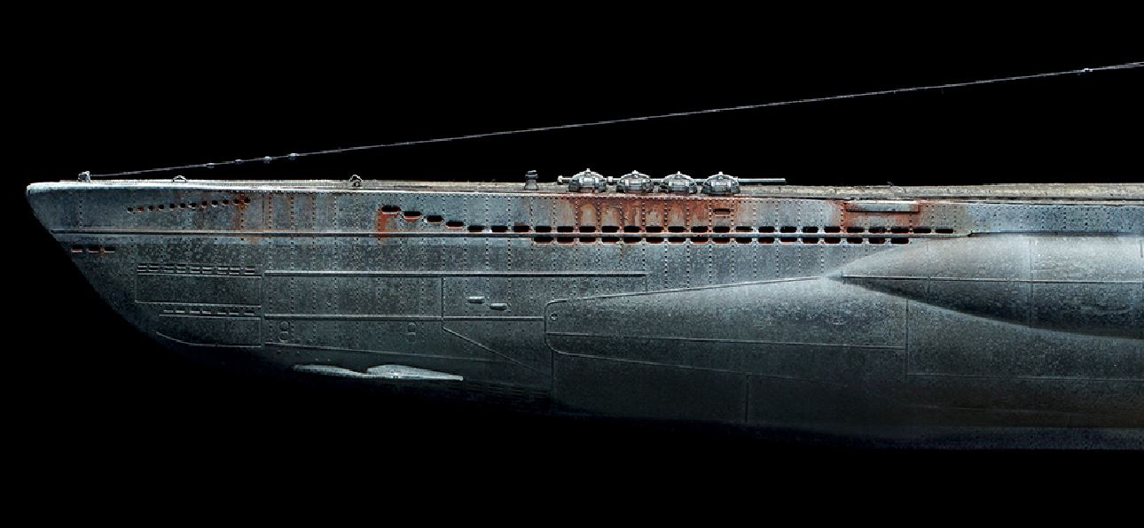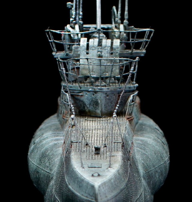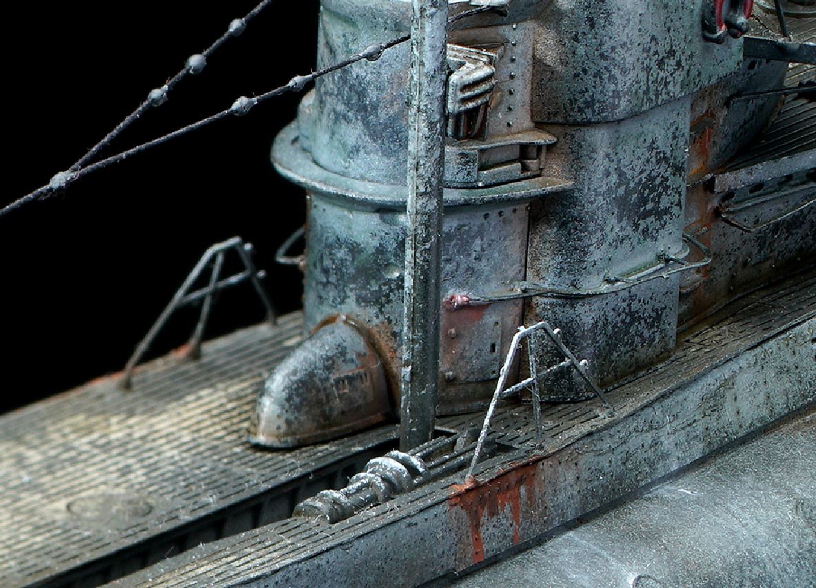 Кольцевая и решётчая антенны, как и перископ убирались в ниши, антенны должны быть чистыми и черного цвета, мачта перископа - чистый металл ниже верхушки.