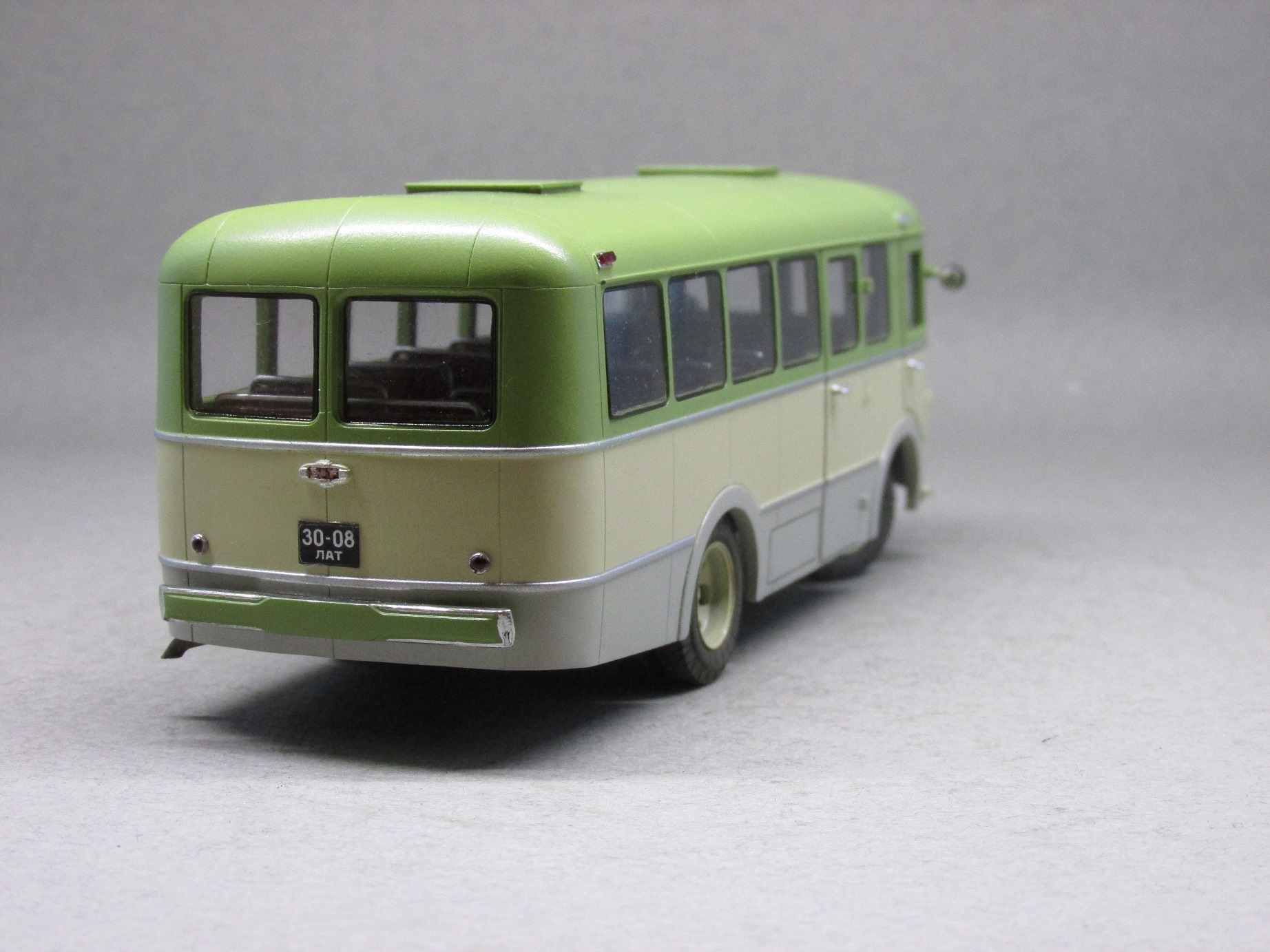 Автобус разработан в середине 50-х годов и выпускался серийно на Рижской автобусной фабрике (г. Рига, Латвийская ССР) с 1955 по 1959 год. После чего автобус передали для производства на Авторемонтный завод № 1 там же в Риге, он получил небольшие изменения в дизайне и новый индекс — 976 и выпускался еще полтора года. Всего на обоих предприятиях было изготовлено чуть больше 2 тысяч экземпляров в различных, в том числе и специальных комплектациях. В основе конструкции шасси, узлы и агрегаты грузовика ГАЗ-51.Вместимость автобуса 29 человек, сидячих мест — 22.