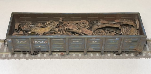В 12-1592 загрузил металлолом - остатки от китов ТЭП60 и ТЭП70, а так же обрезки фототравления, куски проволоки, сетки и т.д.
