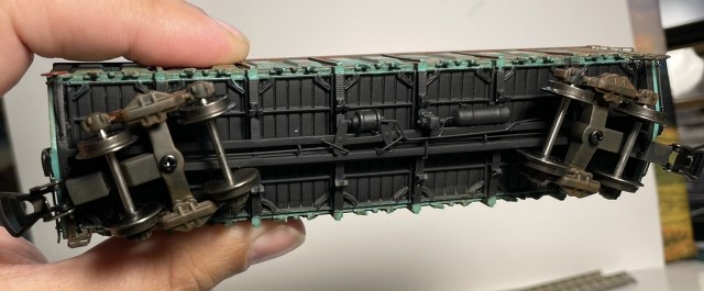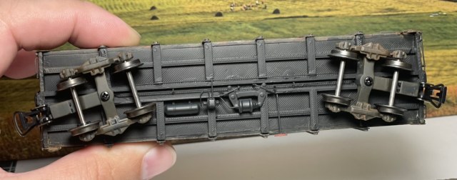 Поручни, лесенки, расцепители и подвагонка сделаны из проволоки. Крепления расцепителей и штурвалы ручного тормоза от ArtModel.