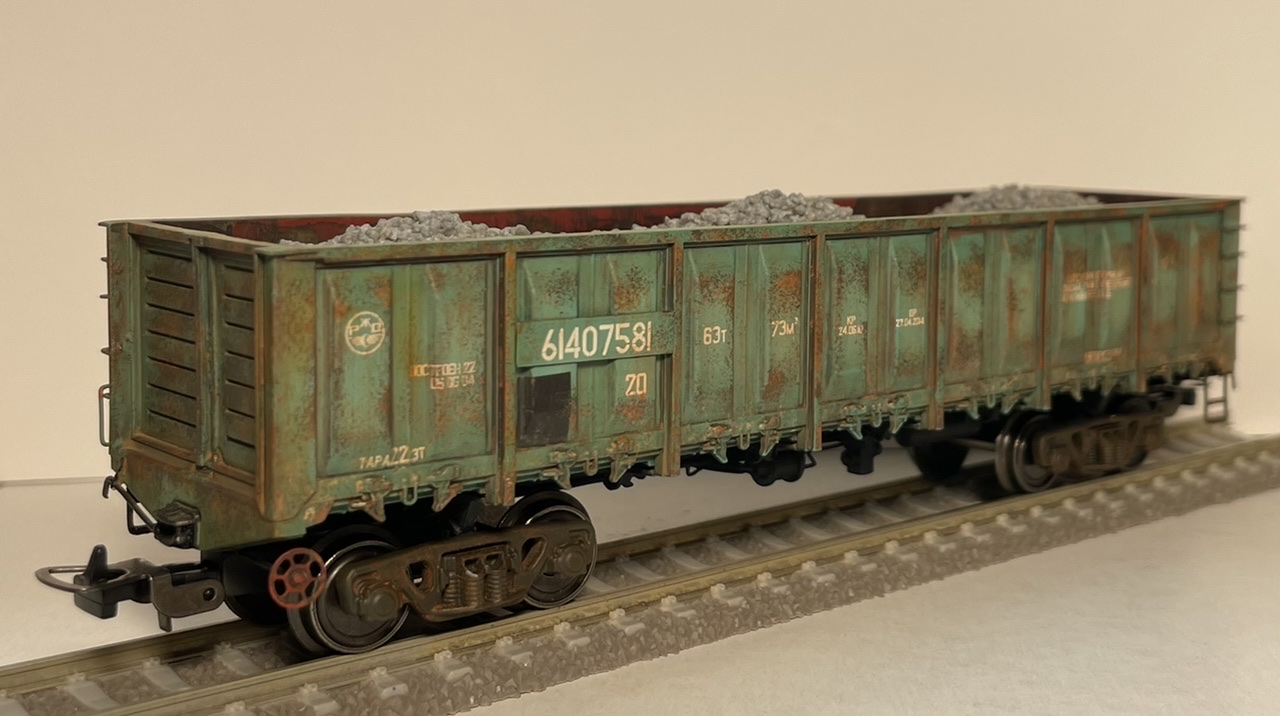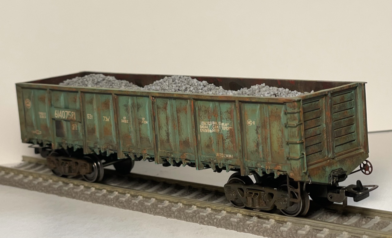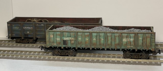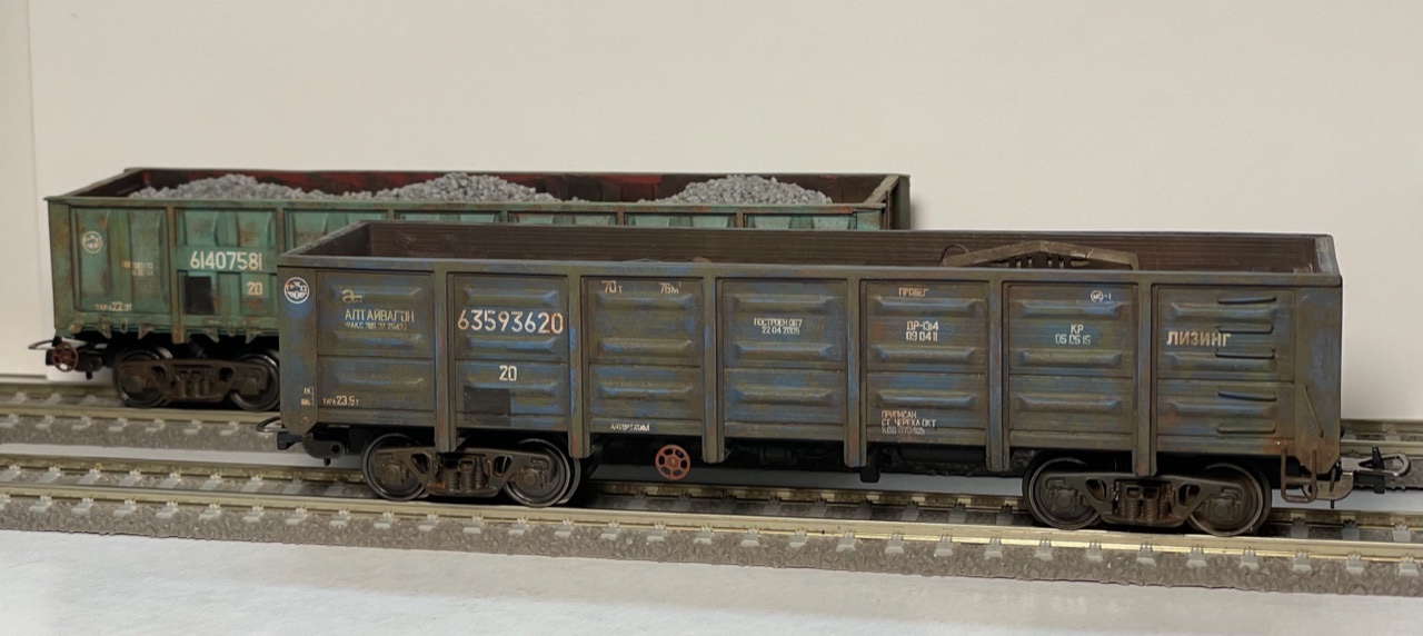 Покрасил парочку полувагонов. Кит полувагона 12-532 выполнен из смолы, а 12-1592 напечатан на 3d принтере. Оба кита Ивана Семенова (https://vk.com/3dmakerekb).