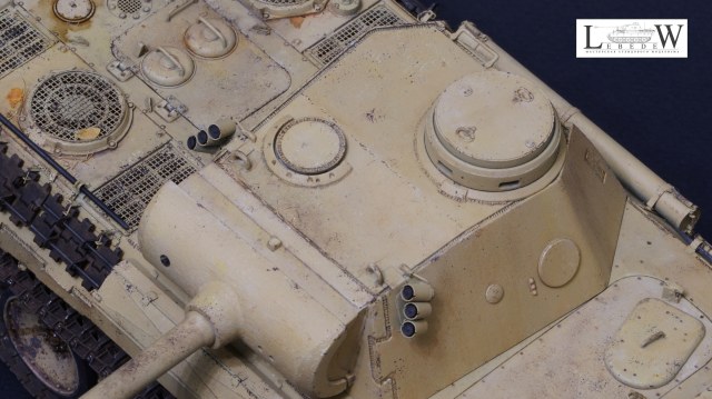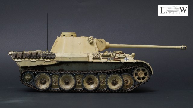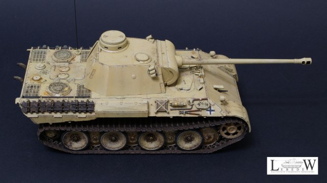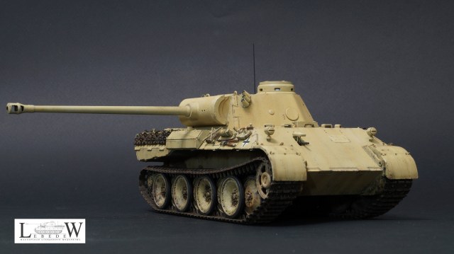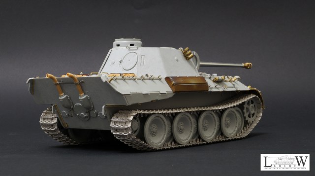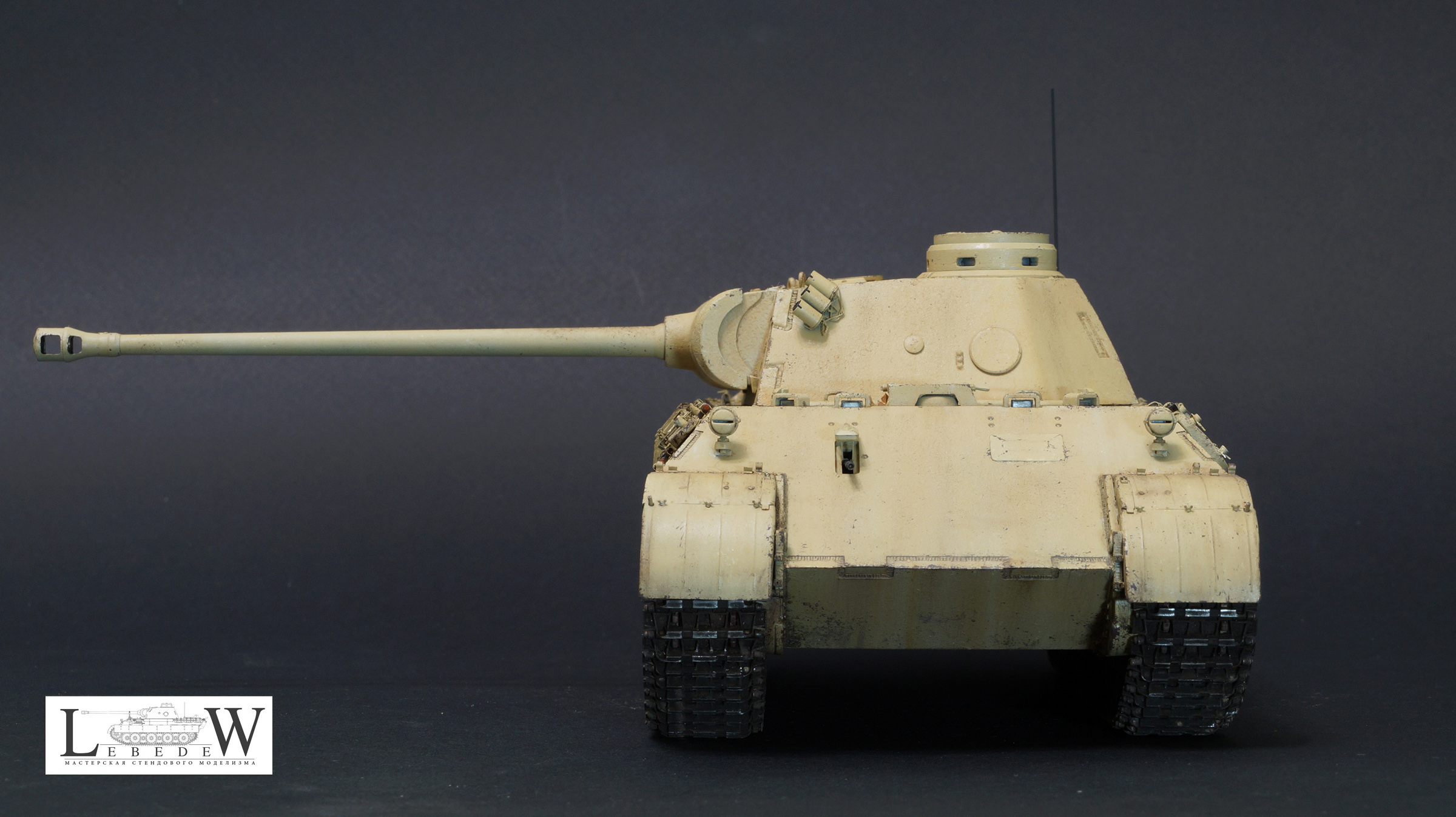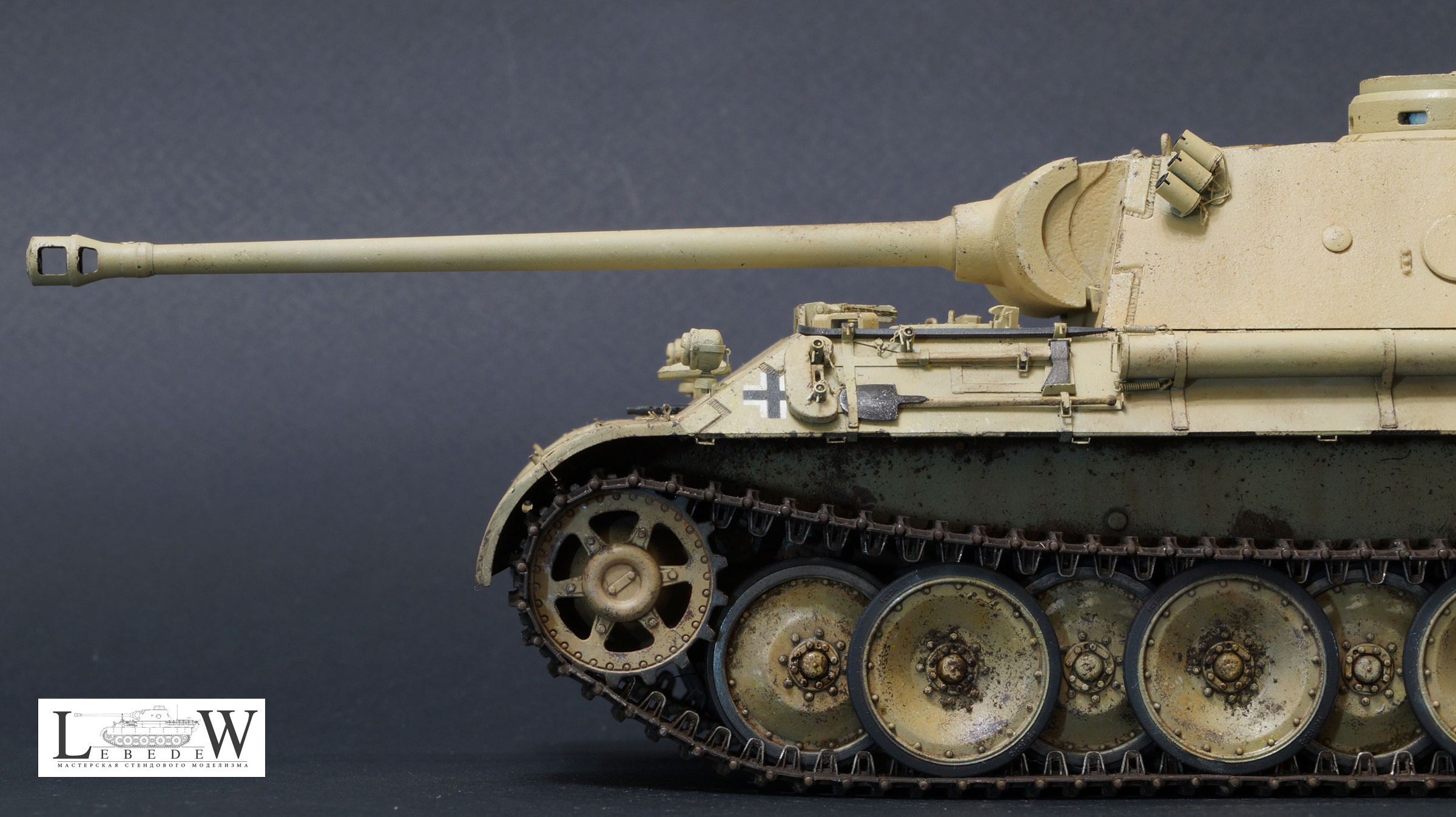 Олег, всегда с интересом жду твои модели "Пантеры", и эта - само собой не исключение. Традиционно отлично исполнено, очень натурально смотрятся все детали, приятно выделены цветом и фактурой разные элементы: голый металл, окрашенный, резина, дерево - всё очень реалистично. Высший пилотаж с выхлопными трубами. Приятные детали вроде противогазных бачков, пальцы траков, мелкие детали вроде резиновых крышечек мортирок - цепляют взгляд. Я также отметил, что на маске видимо имитировался след от стачивания приливов. Ну, или мне показалось. В крайнем случае - мне понравилось! Базовый цвет я бы наверное несколько усложнил фильтром, но это дело вкуса. Везеринг приятный и аккуратный.
