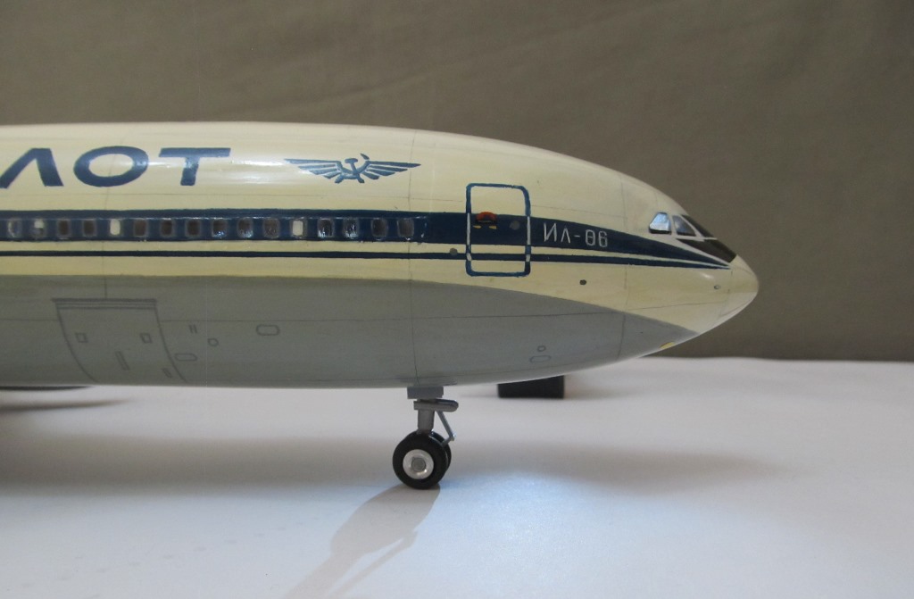 На двух последних моделях Ил-86 остекление было уже сквозным , типа как это сделано на моем Ил-62. На некоторых 86-х передняя стойка шасси выполнялась с амортизацией . Но потом решили что это излишне - и на моем , последнем в серии ( насколько я знаю ) от этого излишества уже отказались.